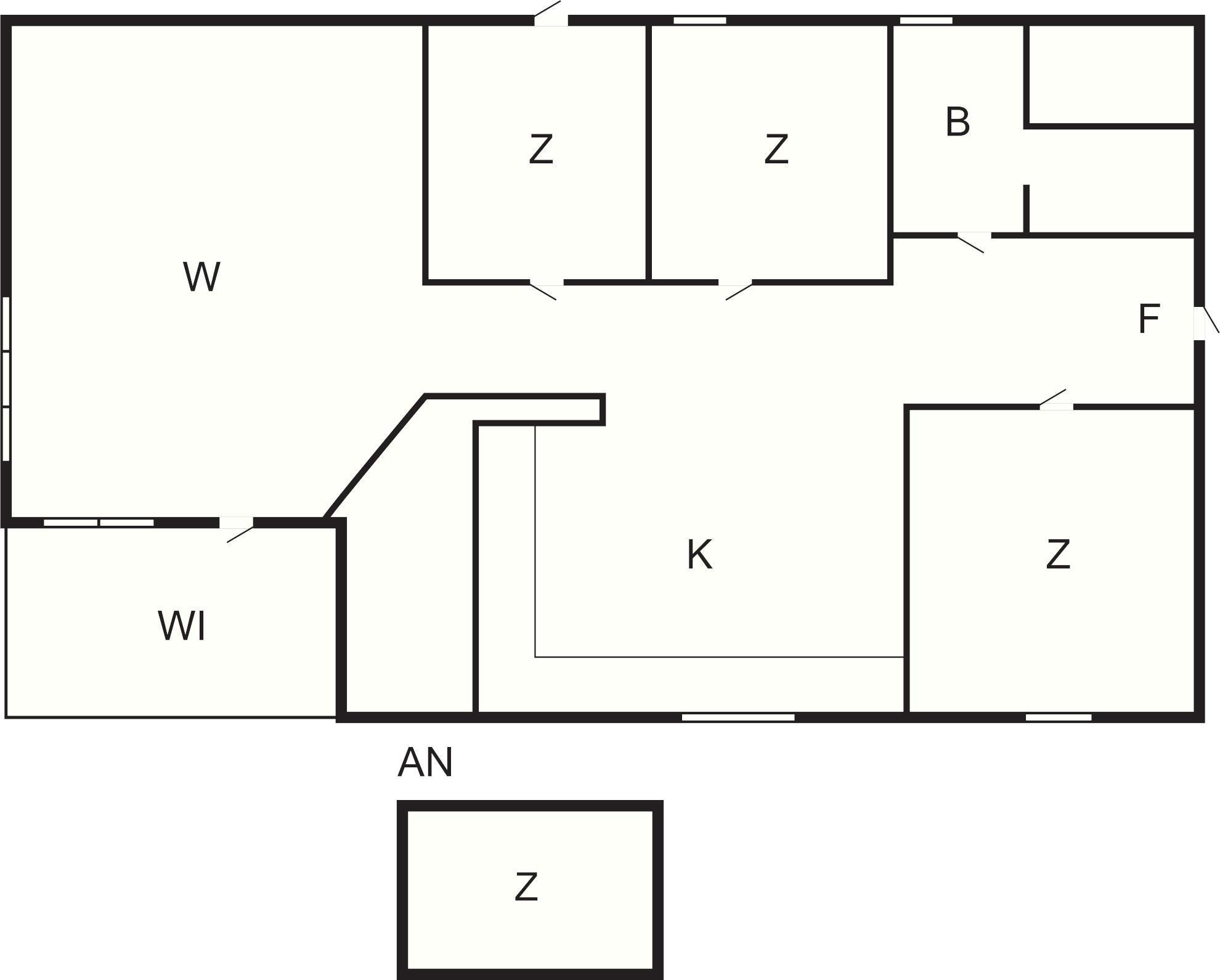 Das wohnlich eingerichtete Ferienhaus hat einen separaten Annex mit zwei Schlafplätzen, ideal falls man etwas Abgeschiedenheit von den anderen in der Gruppe wünscht. Am Ferienhaus schöne Gemeinschaftsbereiche auf der großen Terrasse und dem umzäunten Innenhof, ideal für kühlere Abende. Das Haupthaus verfügt über eine großzügige Küche mit Essbereich. Im Wohnzimmer gibt es ein bequemes Sofa, einen Fernseher, einen Kamin und Zugang zur geschlossenen Terrasse mit Schiebetüren. Zwei Schlafzimmer im Haus; eines mit Etagenbett (je 80 cm breite Kojen), das andere mit zwei Einzelbetten. Das Badezimmer verfügt über eine Dusche und eine Toplader-Waschmaschine. Der Warmwasserspeicher fasst 60 Liter.