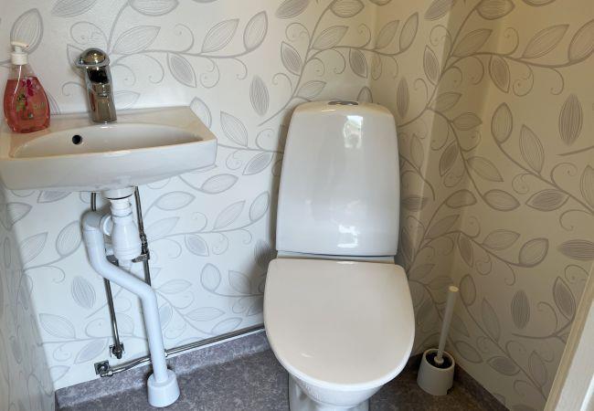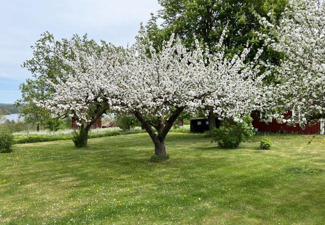 Auf der Eingangsebene finden Sie einen geräumigen Flur und ein frisches Badezimmer. Große und geräumige Küche mit Platz für die ganze Familie, Wohnzimmer und ein Schlafzimmer. Auf der oberen Ebene finden Sie einen Flur mit Toilette, ein Schlafzimmer mit Doppelbett und Zugang zu einem Balkon, wo Sie sitzen und den Blick auf den See genießen können. Sowie ein Schlafzimmer mit drei Einzelbetten und einem Nebenraum. Auf dem großen Gelände können Sie Fußball und andere Ballaktivitäten spielen oder in der Saison Kirschen von den Bäumen essen. Wenn Sie angeln möchten, gehen Sie zum See Ören, der etwa 4 km von dem Haus entfernt liegt, in dem sich das Boot befindet.