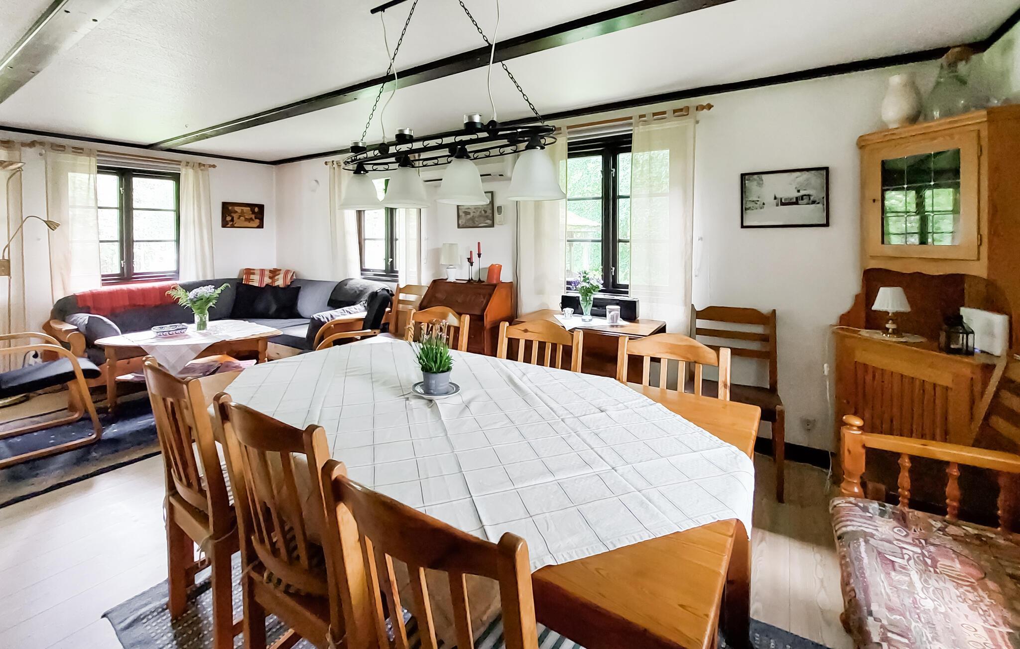 Ihr gemütliches Ferienhaus, idyllisch inmitten der unberührten Natur gelegen, verspricht pure Erholung und ist der ideale Rückzugsort für alle, die dem Alltagsstress entfliehen möchten. Ausgestattet mit einem gemütlichen Kamin und einer einladenden Terrasse samt Grill, bietet das Haus alles, was man für entspannte Abende nach einem aktiven Tag in der Natur benötigt. Darüber hinaus steht Ihnen auch ein eigenes Ruderboot im nahe gelegenen See zur Verfügung.