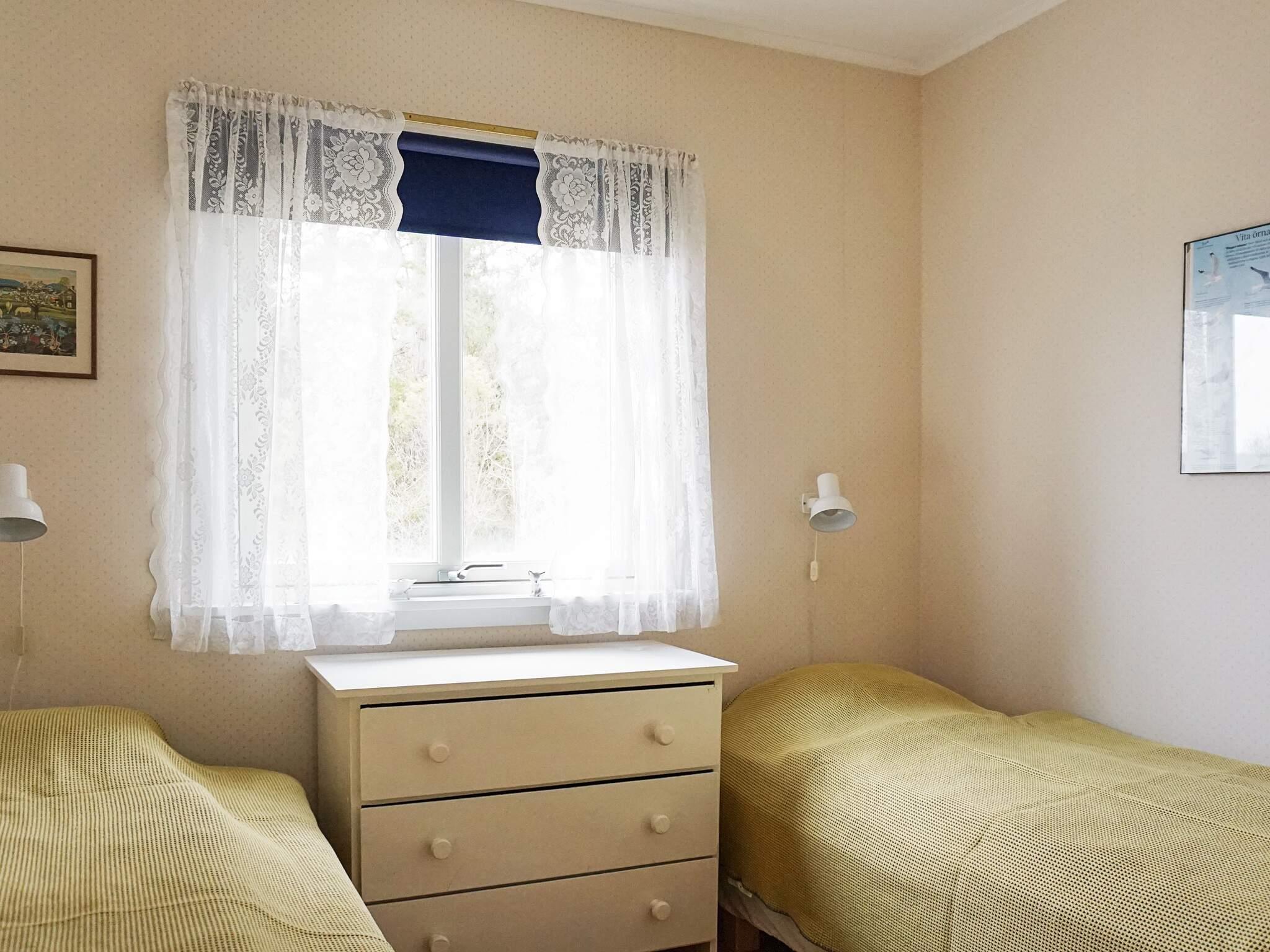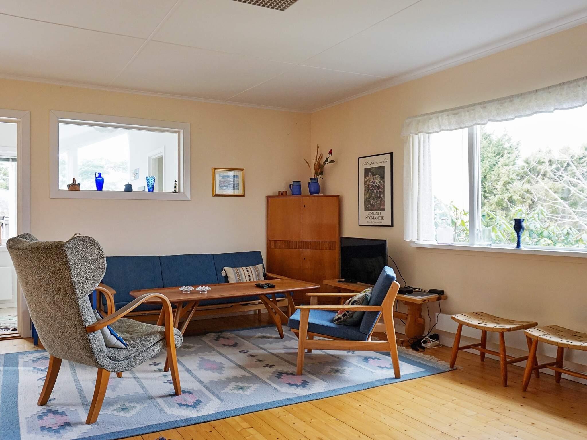 In dem neueren Anbau des Hauses, der dem Meer zugewandt ist, gibt es ein weiteres Schlafzimmer mit zwei Einzelbetten sowie das Highlight des Hauses: das große, attraktive Wohnzimmer mit großen Fenstern mit Ausblic nach Nordwesten zu Meer und Sonnenuntergang. Von diesem Raum aus gelangen Sie über eine Schiebetür hinaus auf die Terrassenfläche, ebenfalls mit Meerblick. Hier können Sie Platz nehmen, um wundervolle Momente mit der Familie am Grill zu genießen, während die Sonne langsam über Kosteröarna untergeht!