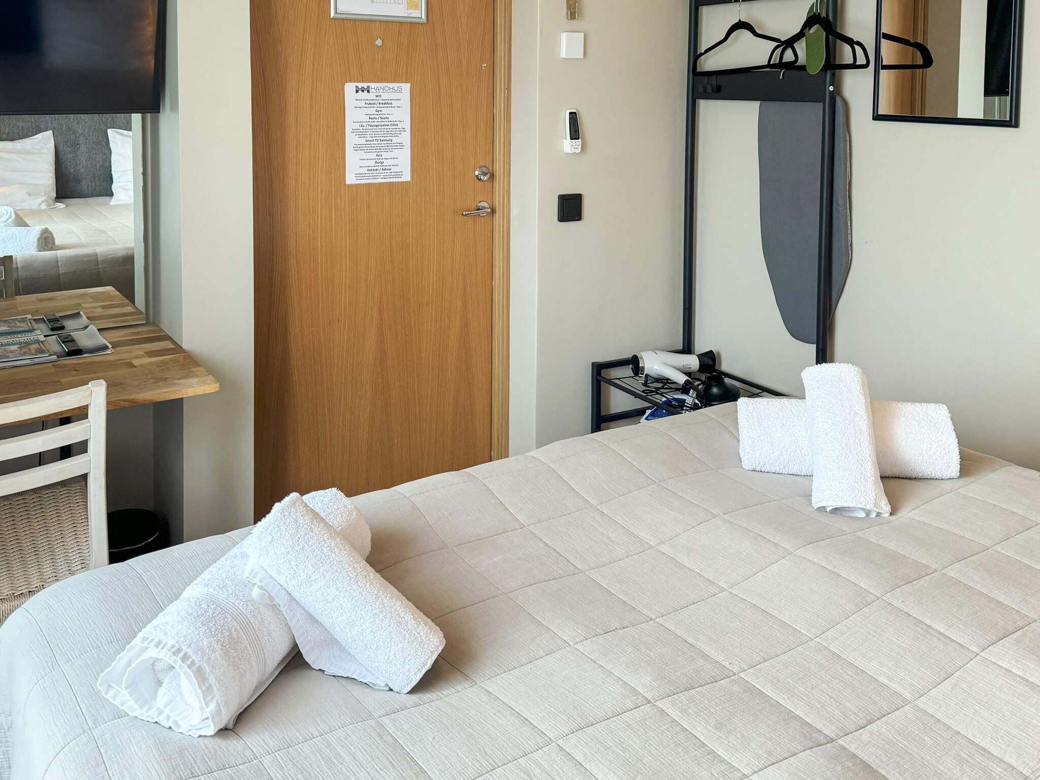 Perfekte Unterkunft für ein Paar oder 2 Freunde. Das Zimmer mit Doppelbett ist in hellem, typisch skandinavischem Stil eingerichtet. Vom Zimmerfenster aus hat man Blick auf die Grünfläche des Gartens und einen Teil des Strandes. Im Zimmer gibt es einen Wasserkocher, einen Kühlschrank mit Gefrierfach, WLAN und einen Fernseher (Streaming mit kostenlosen Kanälen oder wenn Sie ein eigenes Abonnement verwenden). Privates Badezimmer mit Dusche und Toilette im Flur außerhalb des Zimmers. Kann auch als zusätzliches Zimmer mit 2 Betten für größere Gruppen empfohlen werden.