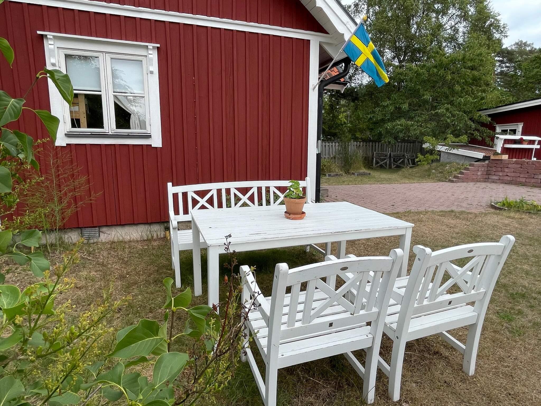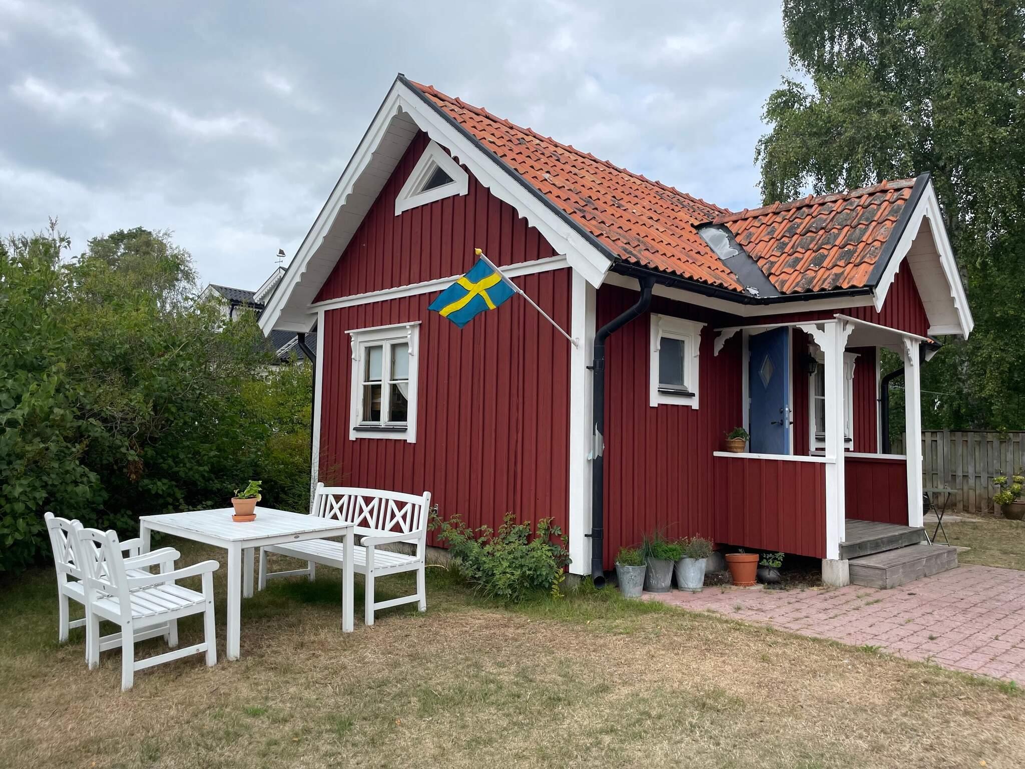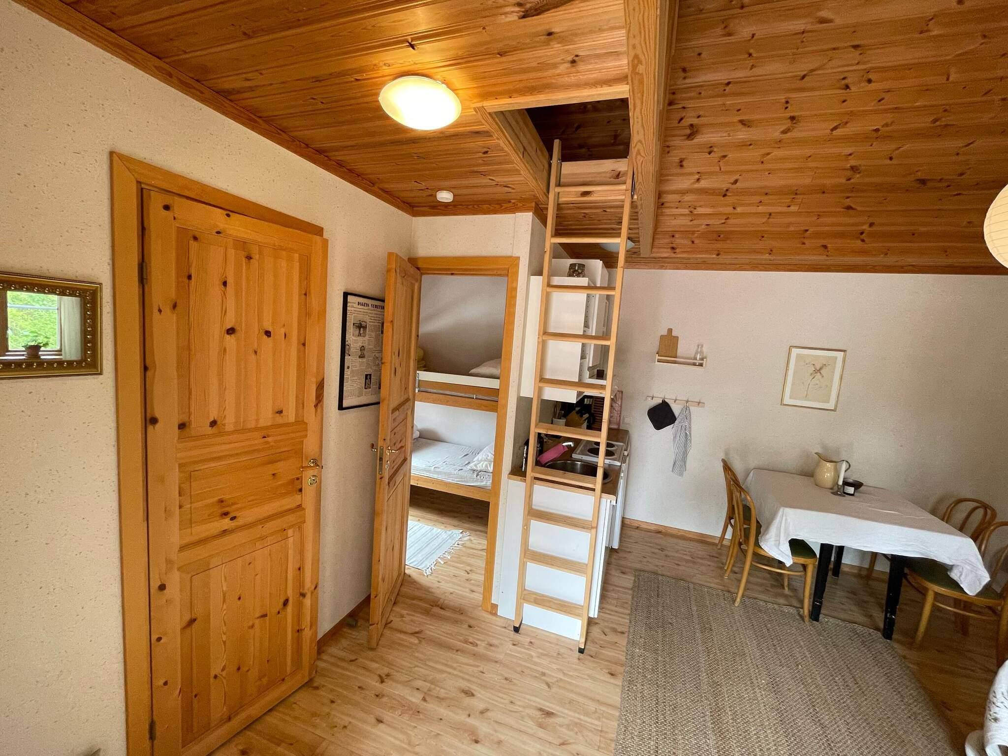 Das Häuschen bietet ein Wohnzimmer mit einer voll ausgestatteten Küchenzeile zur Selbstverpflegung und einem Essbereich. Im Wohnzimmer befindet sich außerdem ein Ausziehsofa, das auch als Sofa vor dem Fernseher mit schwedischen Sendern dient. Im Schlafzimmer mit zwei Kojen im Etagenbett gibt es ausreichend Stauraum für Kleidung. Das Badezimmer ist mit Dusche, Waschbecken und WC ausgestattet. Über eine ausziehbare Leiter gelangt man hinauf zum Schlafboden, der mit zwei Einzelbetten gemütlich eingerichtet ist, die sich leicht zu einem Doppelbett zusammenstellen lassen. Draußen gibt es verschiedene Sitzgelegenheiten zum Entspannen sowie Gartenmöbel zum Essen. Ein Holzkohlegrill steht den Gästen ebenfalls zur Verfügung.
