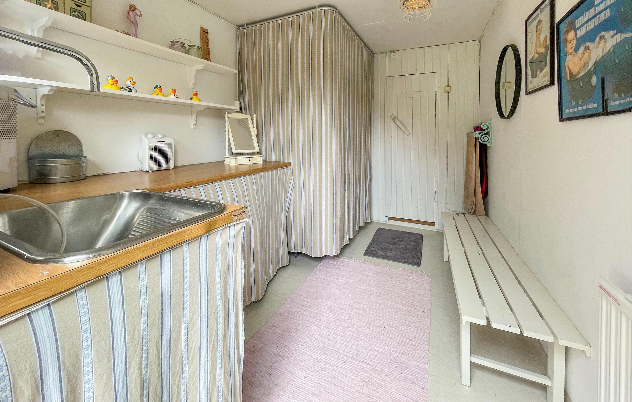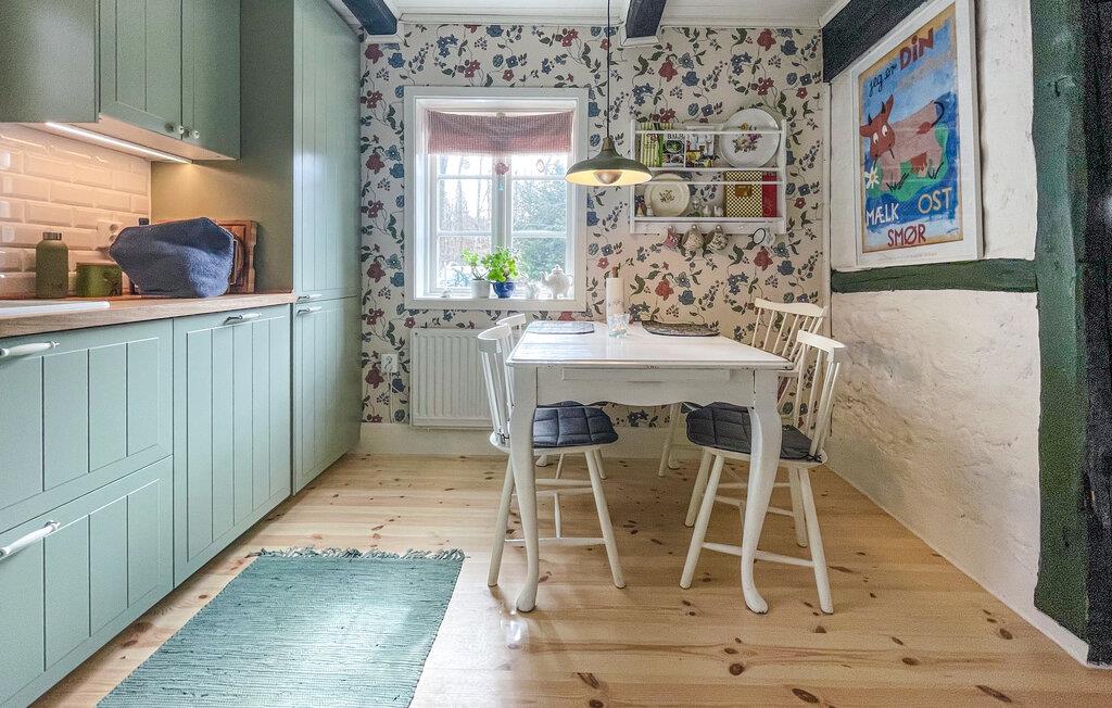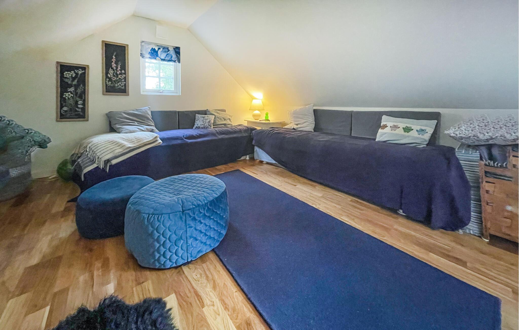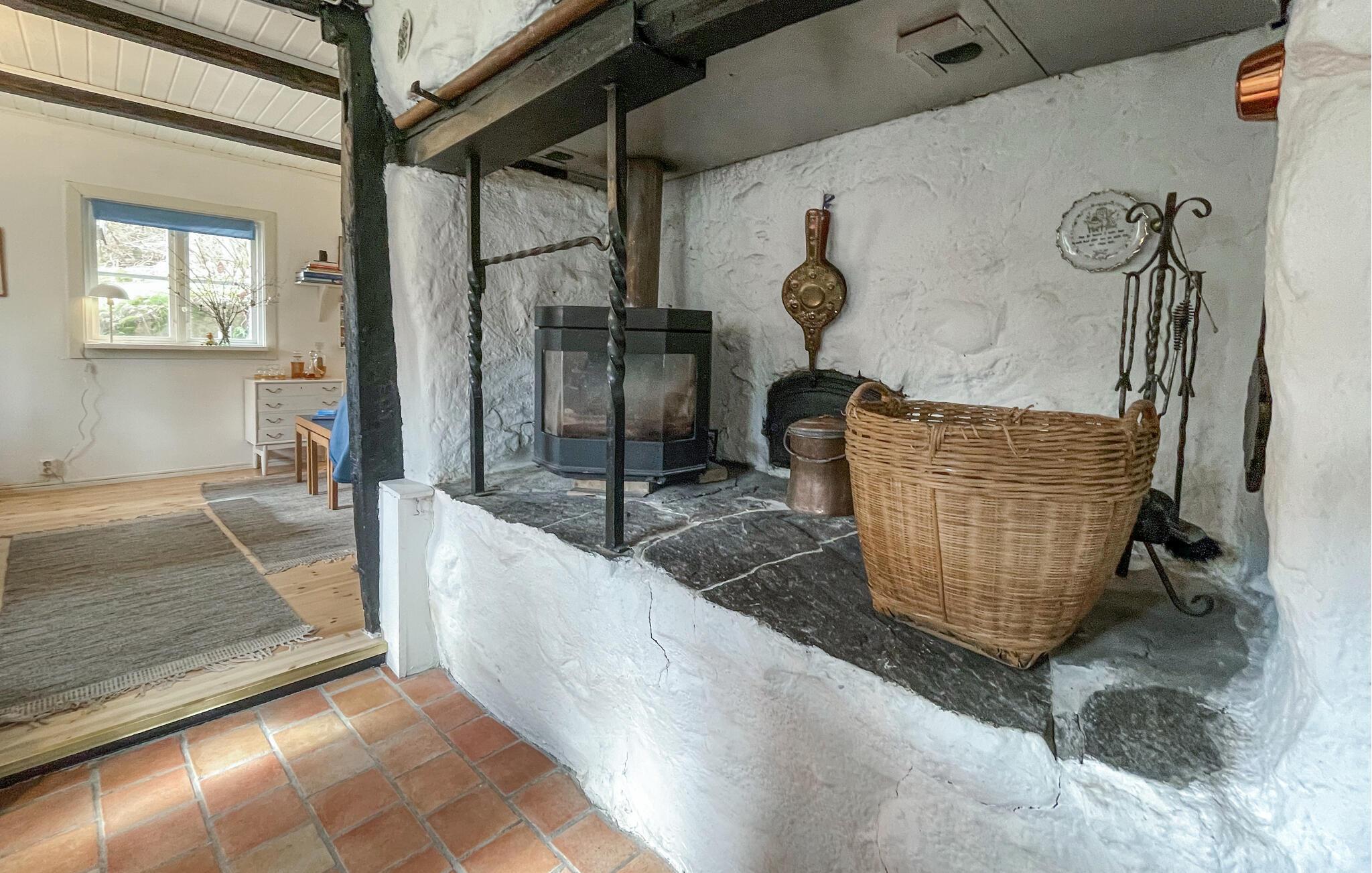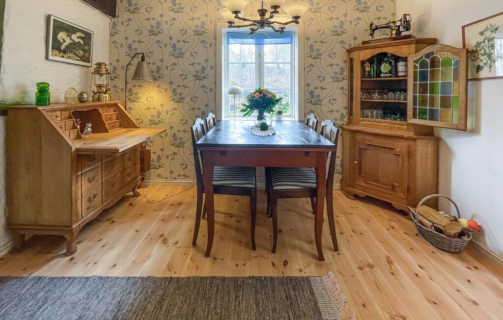Willkommen in diesem charmanten schwedischen Ferienhaus. In der Nähe eines Waldes und Feldern gelegen, bietet es Ihnen einen Urlaub voller Erholung, frischer Luft und unvergesslicher Erlebnisse. Das historische Ambiente und die liebevolle Einrichtung sorgen dafür, dass Sie sich sofort wie zu Hause fühlen. Starten Sie Ihre Urlaubstage entspannt und bereiten Sie in der urigen Küche ein leckeres Frühstück zu. Der Küchentisch und der Esstisch im Wohnzimmer sind ideal für ausgiebige Familienmahlzeiten und gesellige Spieleabende geeignet. Machen Sie es sich auf einem der zahlreichen bequemen Sofas gemütlich und lesen Sie Ihren Kindern ein schönes Buch vor.