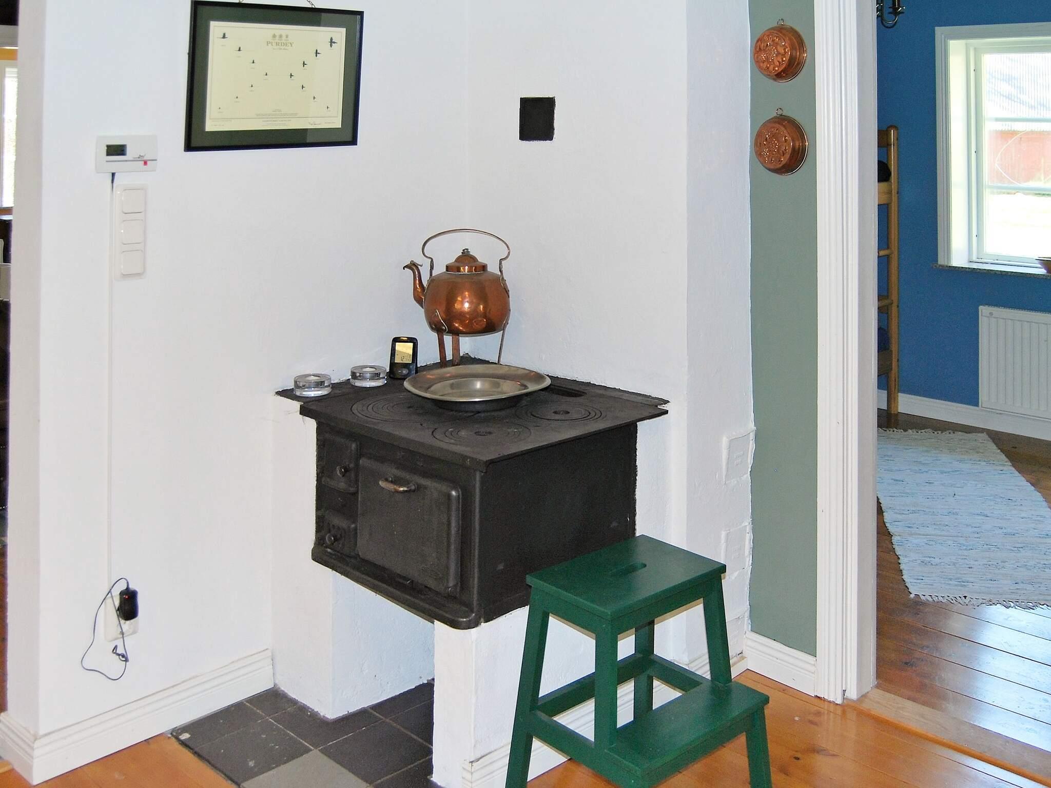 Das Haus verfügt über eine moderne, gut ausgestattete Küche sowie ein modernes Badezimmer mit rustikalem Holzboden. Der offene Grundriss schafft einen angenehmen Überblick von der Küche sowohl über den Essbereich als auch zum kleineren Wohnzimmer mit Sofa und Holzofen. Die vielen Jagdtrophäen an der Wand, der alte Holzofen und die rustikale Einrichtung verleihen dem Häuschen Charakter und schaffen eine besondere Atmosphäre.