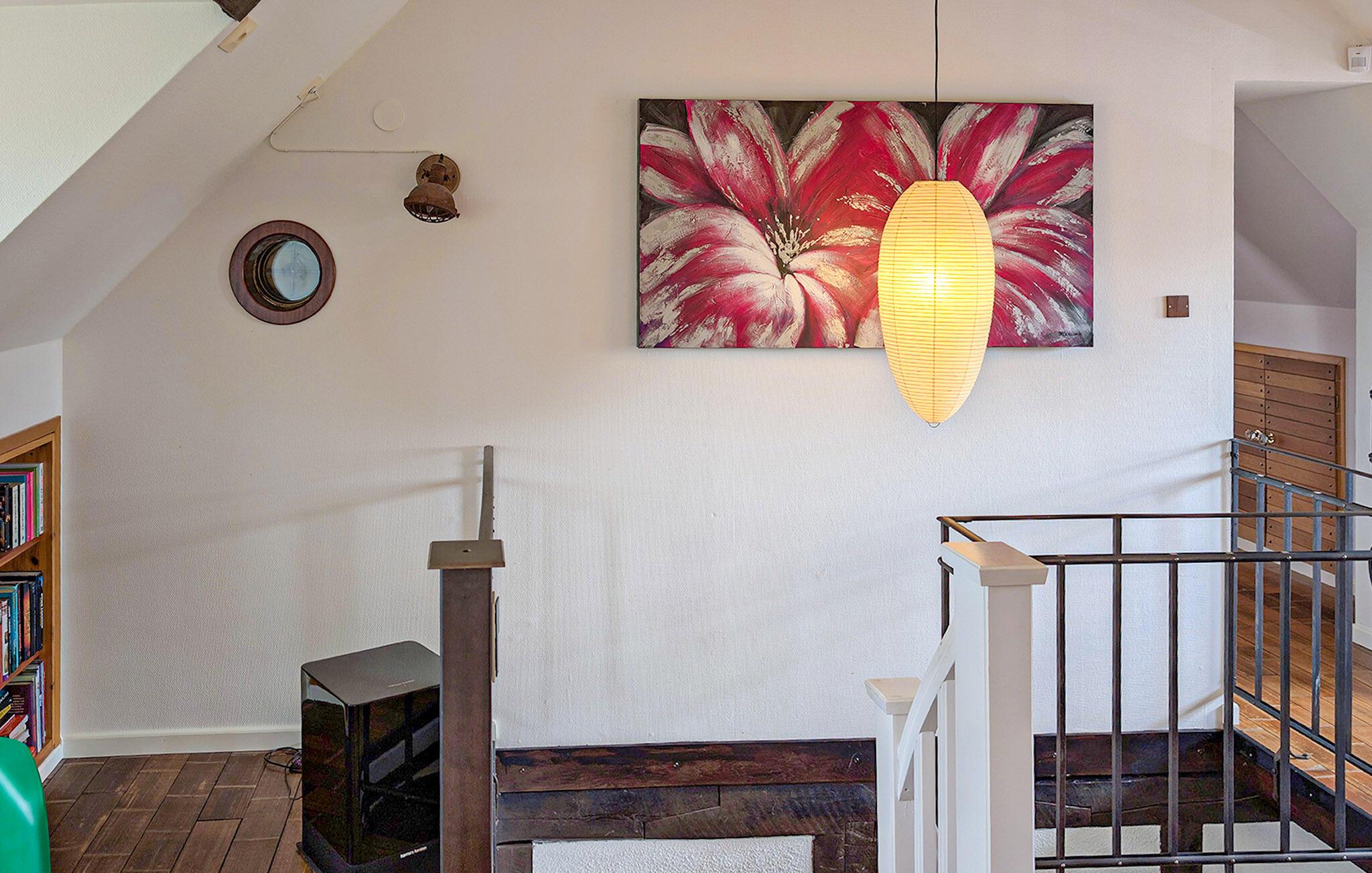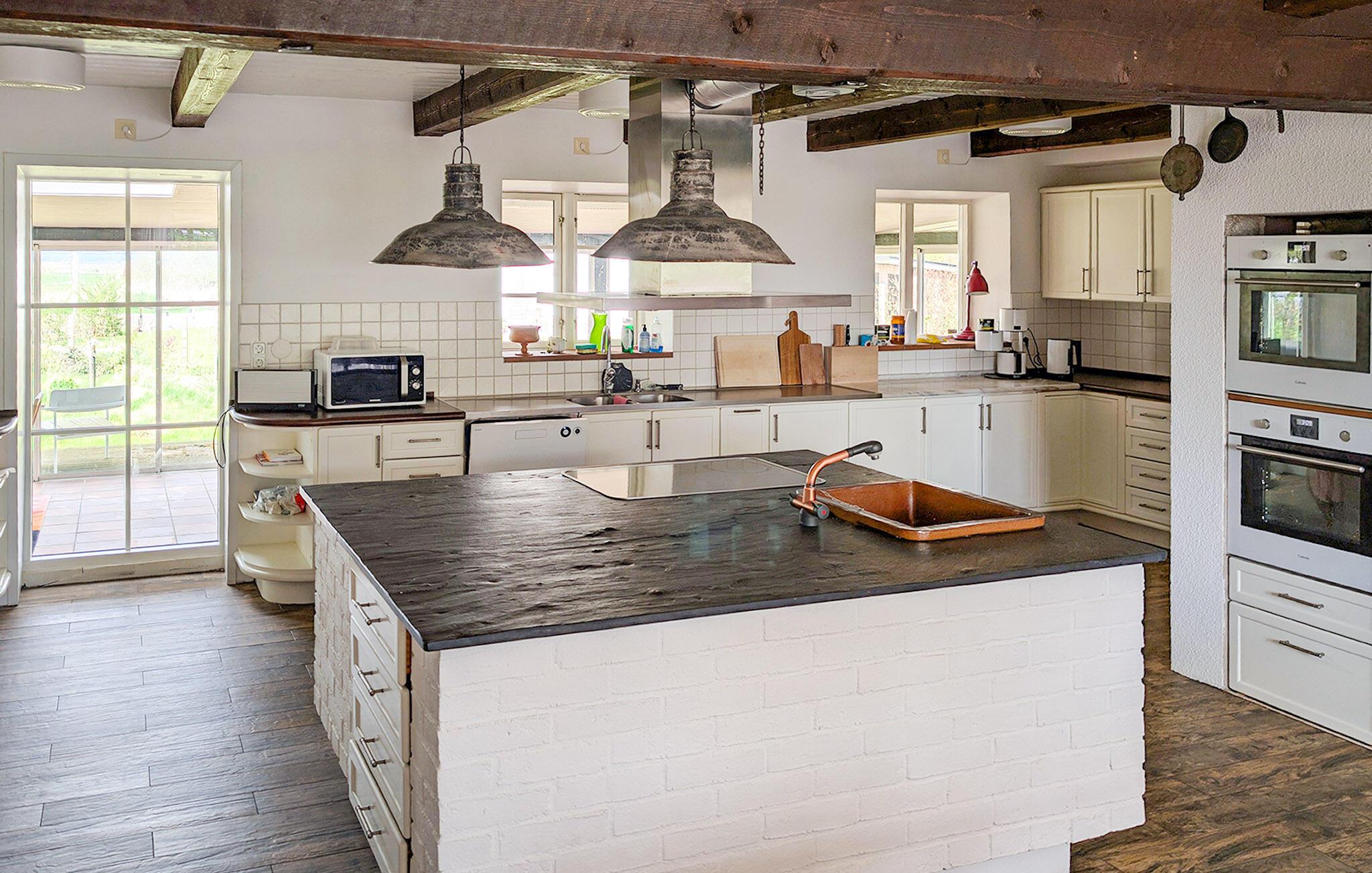 Dieses Haus begrüßt Sie mit einer angenehmen Verbindung aus rustikalem Charme und modernem Komfort. Imposante Holzbalken, farbenfrohe Textilien und eine schöne Küche schaffen eine Atmosphäre, in der Sie sofort abschalten können. Entspannen Sie sich im Wintergarten bei einer Tasse Tee und mit Blick ins Grüne oder verbringen Sie einen vergnügten Nachmittag beim Kartenspiel mit den Kindern.