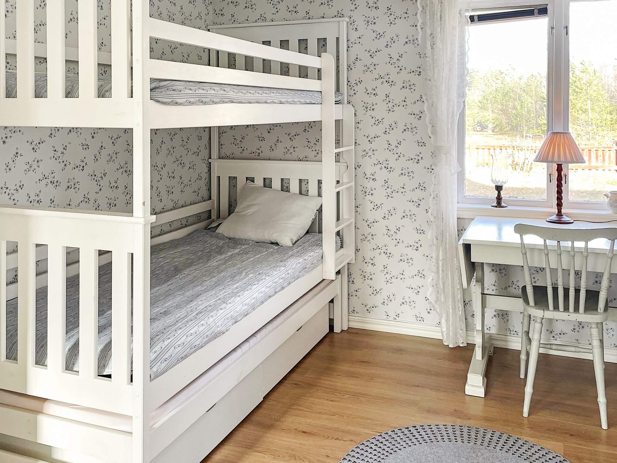 Am Haus steht eine große Holzterrasse mit Gartenmöbeln und einem Grill bereit. Das Haus hat eine schöne, neu renovierte Küche mit Geschirrspüler. Im Wohnzimmer gibt es einen Essbereich und eine Sitzecke. Im Erdgeschoss zudem ein offenes Schlafzimmer ohne Zimmertür, mit einem Etagenbett für max. drei Personen mit zwei Kojen und einer ausziehbaren Liegefläche unten. Oben im Dachgeschoss befinden sich zwei weitere Schlafzimmer mit je zwei Einzelbetten (niedrigere Deckenhöhe). Das neu renovierte Badezimmer mit WC, Waschbecken, Dusche und Waschmaschine liegt unten.