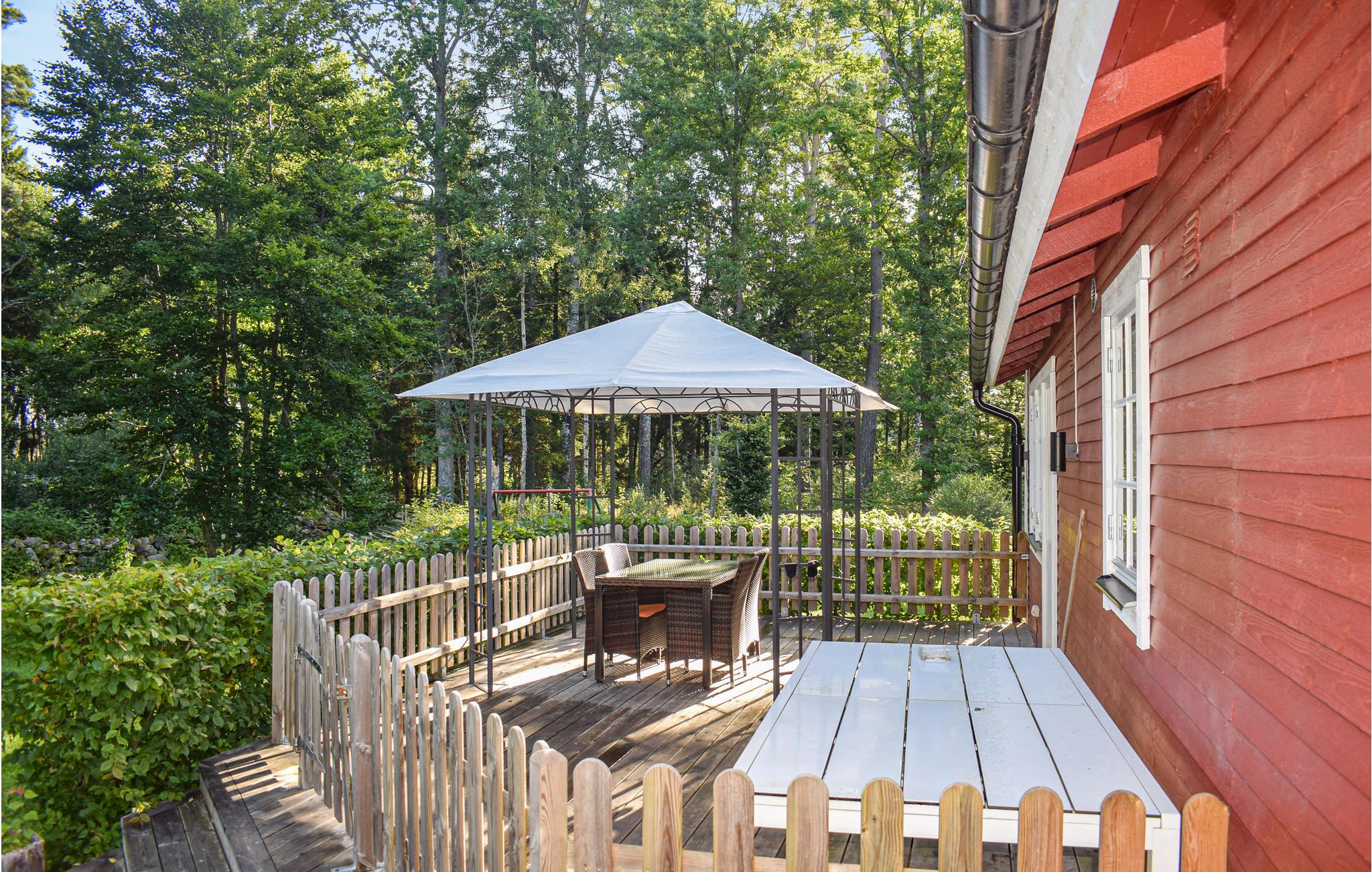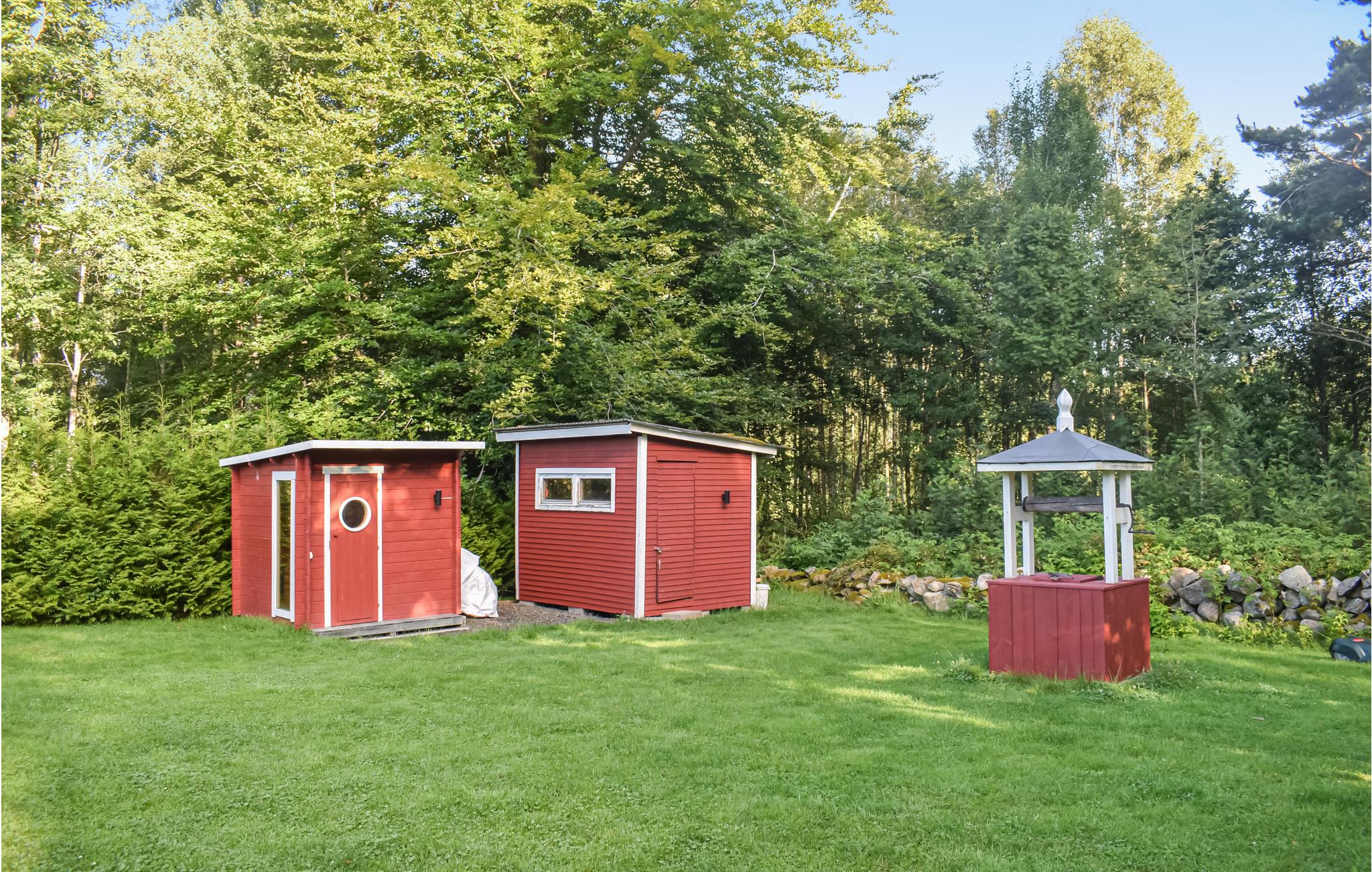 Schönes Ferienhaus mit verglaster Terrasse auf der Vorderseite des Hauses und einer wundervollen Terrasse auch auf der Rückseite der Unterkunft. Hier erleben Sie im Urlaub die Natur als Ihren nächsten Nachbarn. Das Holzdeck auf der Rückseite ist eingezäunt und daher ein guter Aufenthaltsort auch für kleine Kinder. Sauna in separatem Gebäude auf dem Grundstück. Das Haus liegt in Hölminge bei Ljungby in Småland. Zwei Schlafzimmer, eine gepflegte Küche und ein Wohnzimmer mit Kaminofen finden Sie im Inneren. Im Gehabstand vom Ferienhaus liegt der kinderfreundliche Sandstrand am Bolmen (300 m). Das Boot, das zwischen Mai und Oktober zu mieten ist, liegt für Sie am Platz und im See können Sie auf Hecht, Zander und Barsch angeln. Direkt beim Hauseigentümer können Sie einen Motor und Fahrräder mieten. Wenn Sie etwas entdecken wollen, dann fangen Sie vielleicht mit den 365 Inseln des Sees Bolmen an. Auch ein Ausflug in die Welt von Astrid Lindgren ist empfehlenswert, Sie treffen Pippi Langstrumpf. Den König des schwedischen Waldes, der Elch, treffen Sie in den Elchparks Laganland und Småland. High Chaparral bietet Ihnen Wildwest-Shows. Es gibt mehrere Naturreservate in der Umgebung, auch ist der Nationalpark Store Mosse unbedingt einen Besuch wert. Gut einkaufen können Sie in Ljungby und Värnamo.