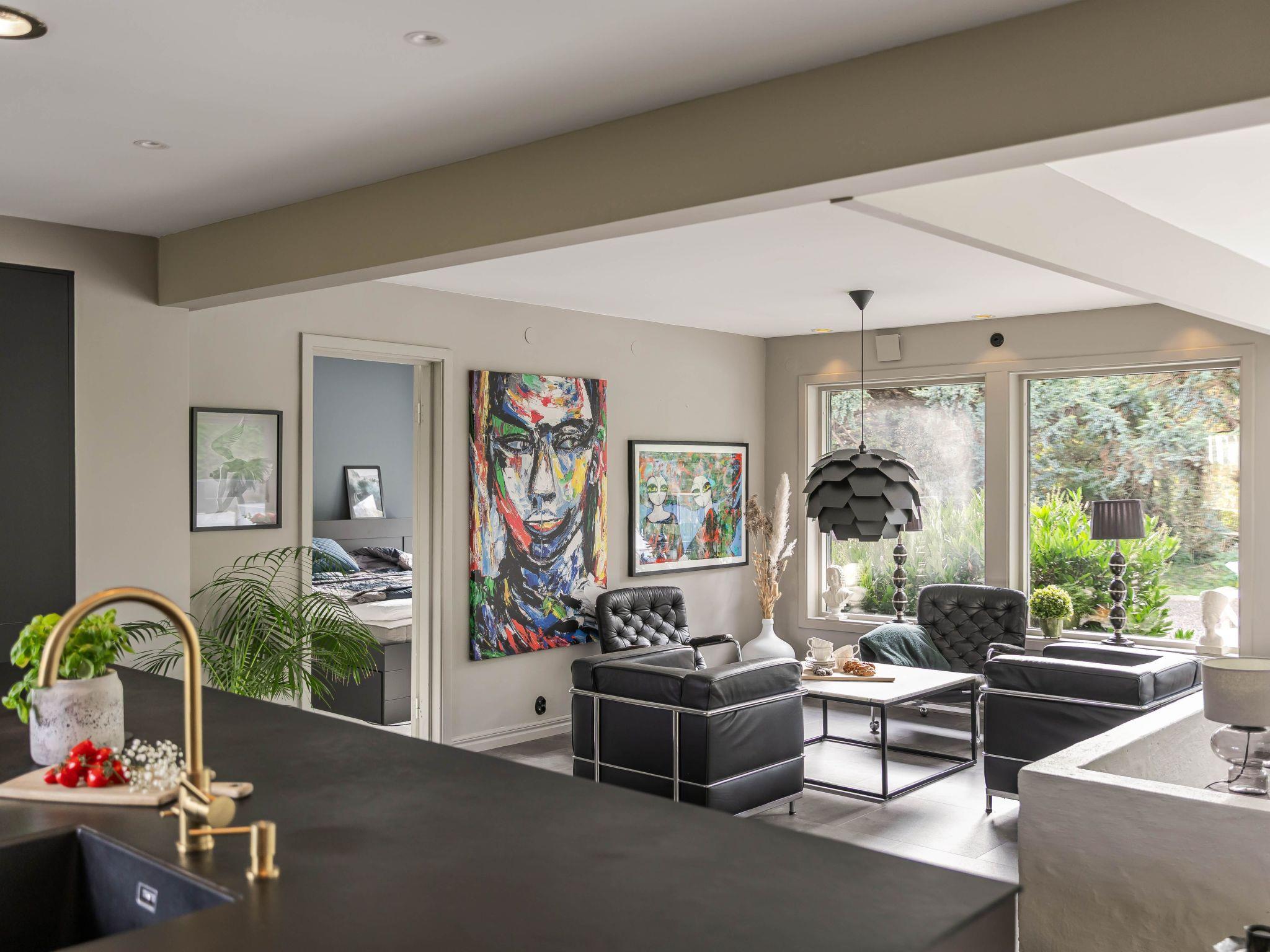 "Frösakull Paradiset", 5-Zimmer-Villa 200 m2. Offenes grosses Wohn-/Esszimmer. 1 Zimmer mit 1 Doppelbett (180 cm). 1 Zimmer mit 1 Doppelbett (180 cm). 1 Zimmer mit 1 Bett (140 cm), 1 Doppelbett (180 cm). Wohn-/Schlafzimmer mit 1 Diwanbett (160 cm) mit 2 Betten (90 cm). Grosse Küche (Backofen, Geschirrspüler, 4 Induktionskochplatten, Toaster, Wasserkocher, Tiefkühler, elektrische Kaffeemaschine) mit Bar, Esstisch. Bad, Bad/WC, 2 Duschen, sep. WC. Terrassenmöbel, Gartengrill (mobil), Sitzplatz. Zur Verfügung: Waschmaschine, Wäschetrockner.