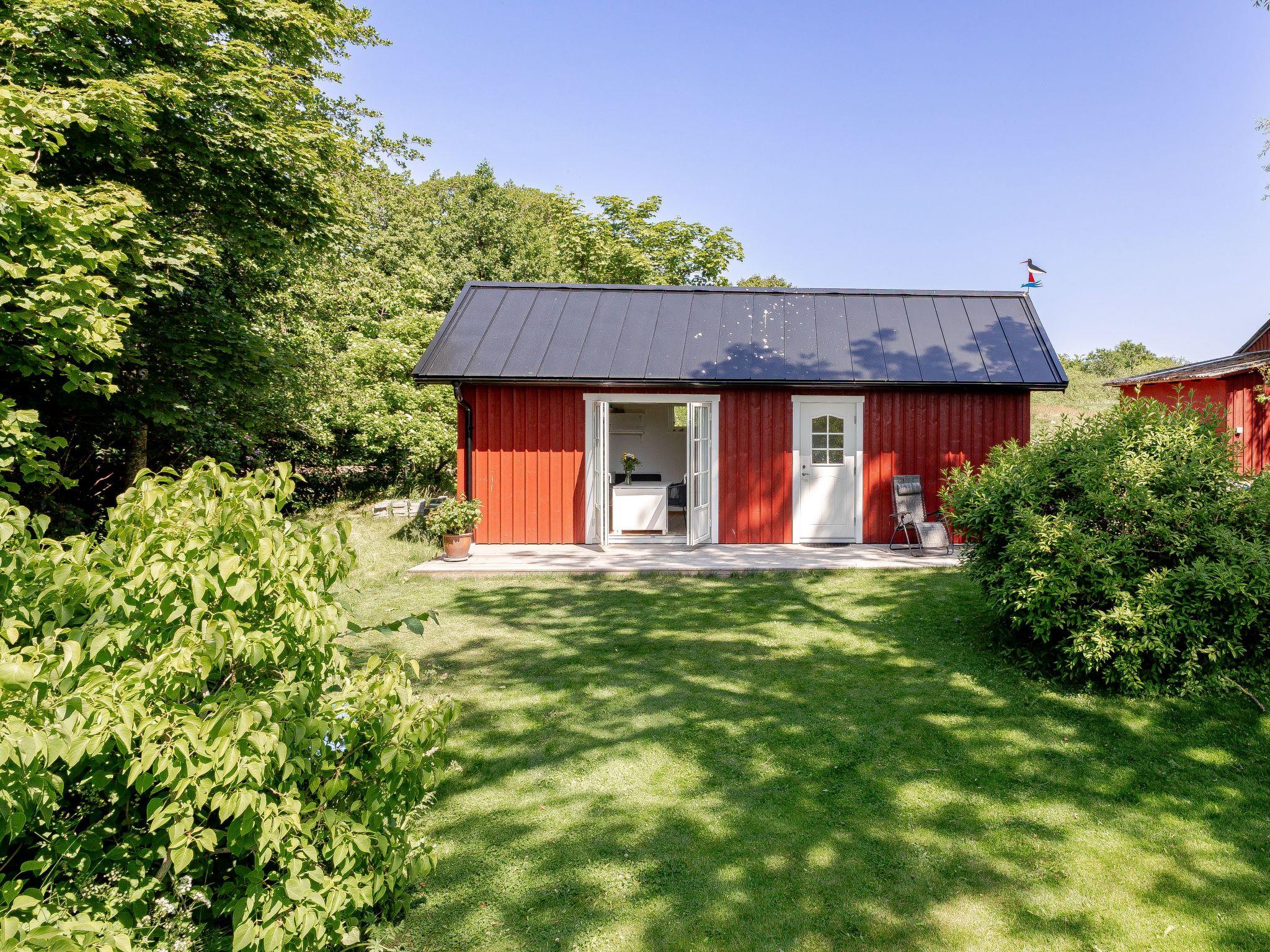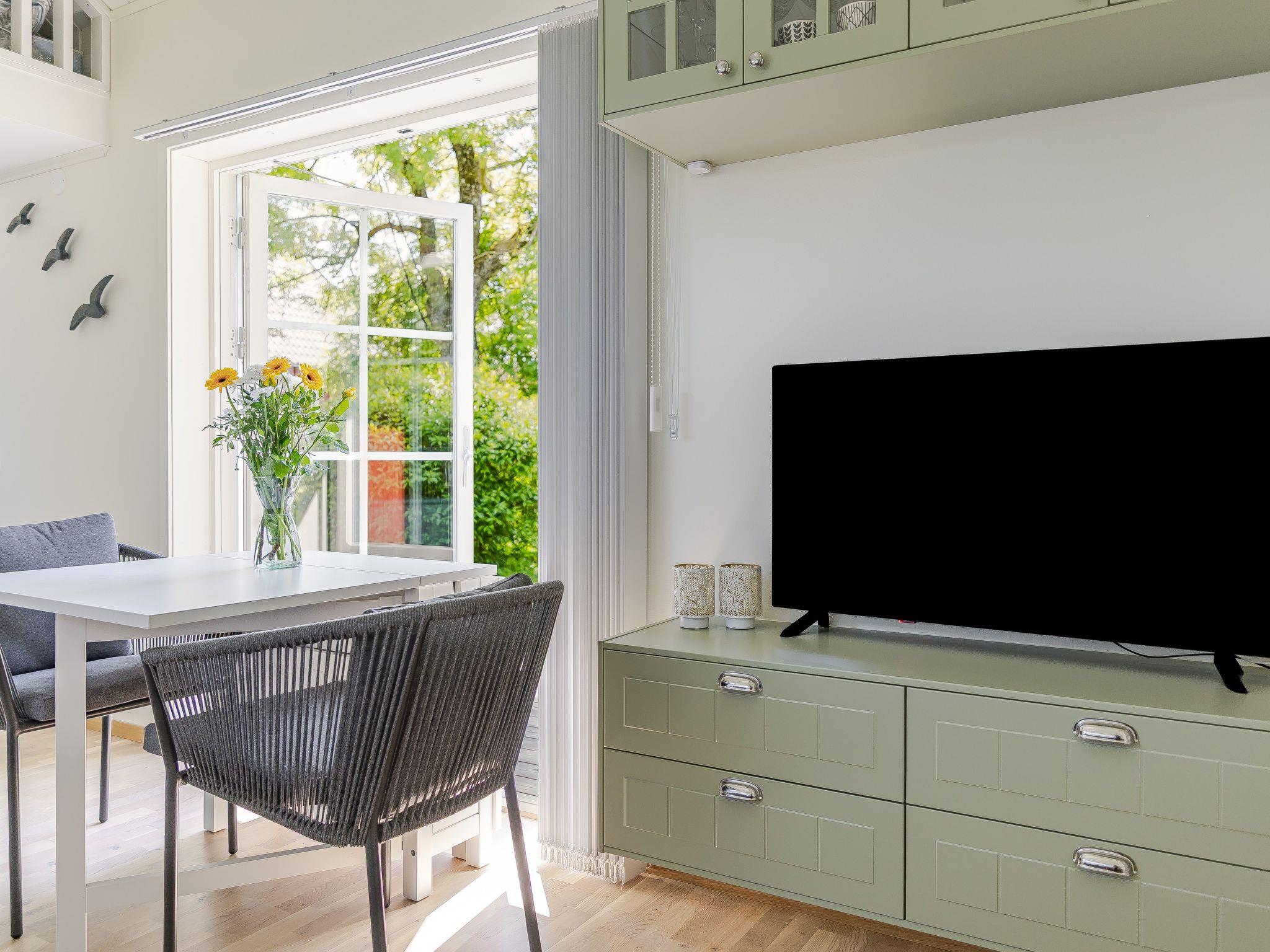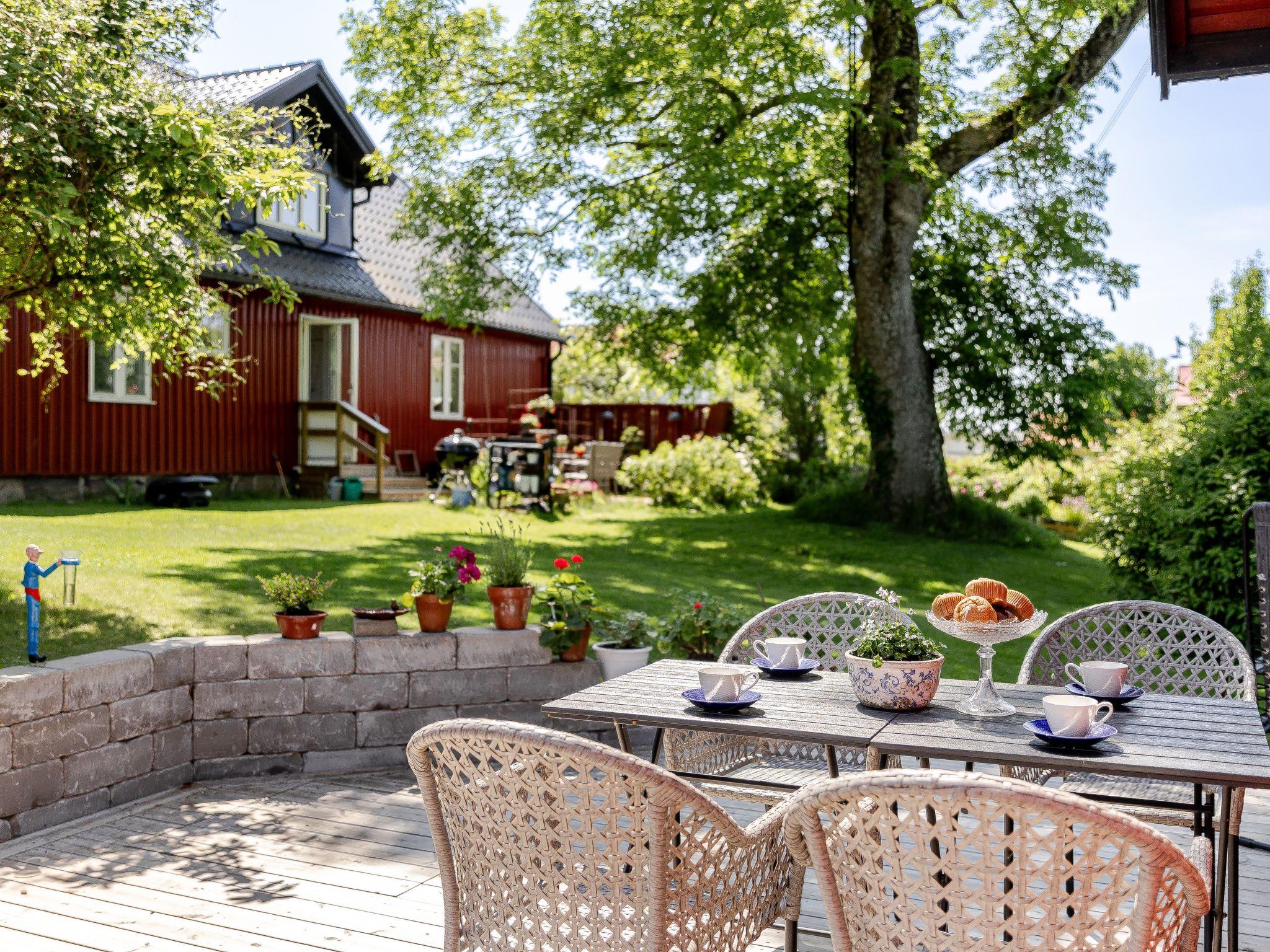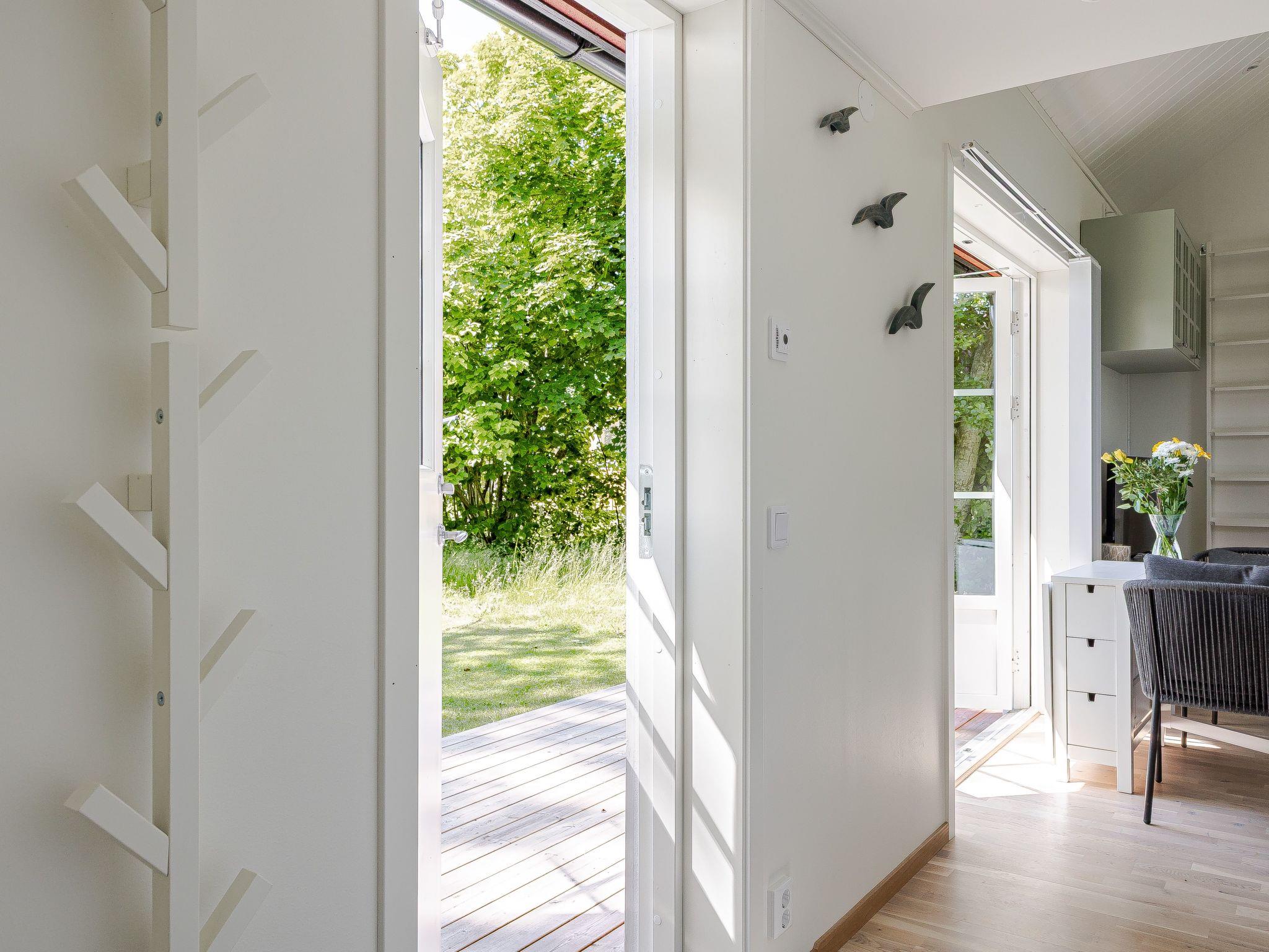 "Särdals Lycke", 2-Zimmer-Haus 30 m2. Schön eingerichtet: Wohn-/Schlafzimmer mit 1 Diwanbett und TV. Ausgang zum Garten, zur Terrasse. 1 Zimmer mit 1 Bett. Wohnküche (Backofen, 2 Induktionskochplatten, Toaster, Wasserkocher, Mikrowelle) mit Esstisch. Dusche/WC. Heizung. Obergeschoss: (steile Treppe) abgeschrägte, offene Galerie mit 2 Betten. Holzdielenboden. Zur Verfügung: Internet (WLAN). Bitte beachten: Nichtraucher-Haus.