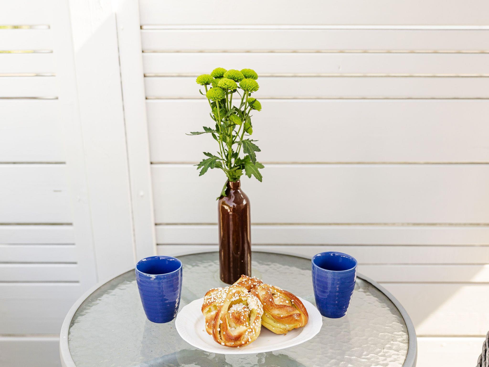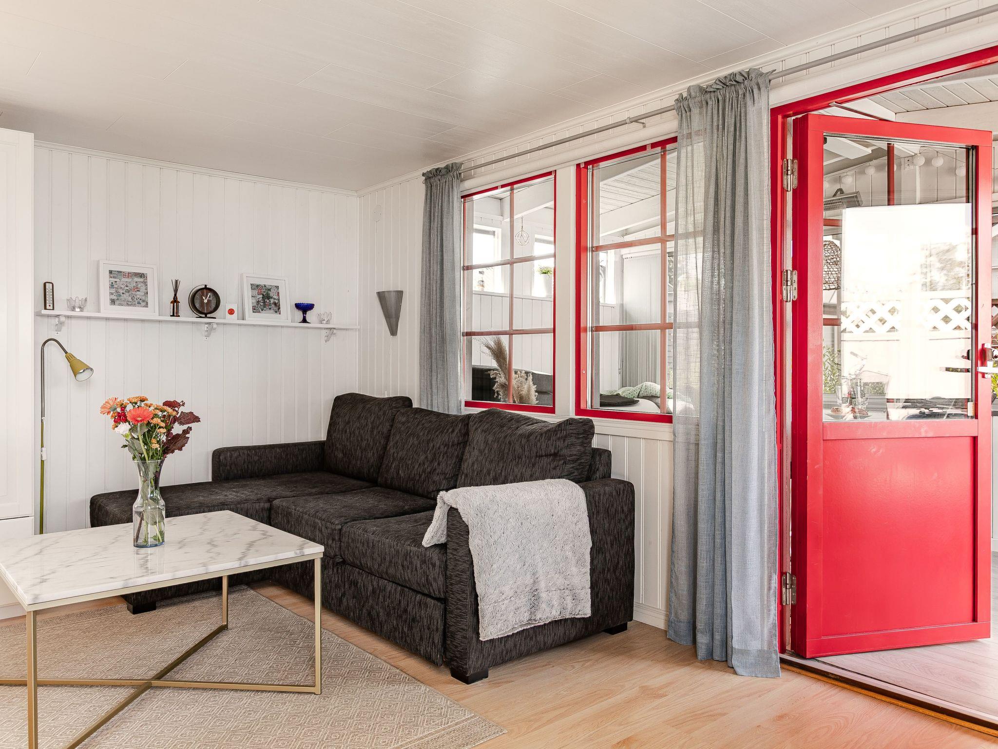 "Johannistorp", 2-Zimmer-Haus 30 m2. Wohn-/Schlafzimmer mit 1 Doppeldiwanbett, Esstisch und TV. Ausgang zum Garten, zur Terrasse. Küche (Geschirrspüler, 4 Induktionskochplatten, Toaster, Wasserkocher, Mikrowelle, elektrische Kaffeemaschine) mit Esstisch. Ausgang zum Garten, zur Terrasse. Dusche/WC. Heizung, E-Heizung, Klimaanlage. Obergeschoss: (steile Treppe) 1 abgeschrägtes Zimmer mit 4 Betten (90 cm, Länge 200 cm).