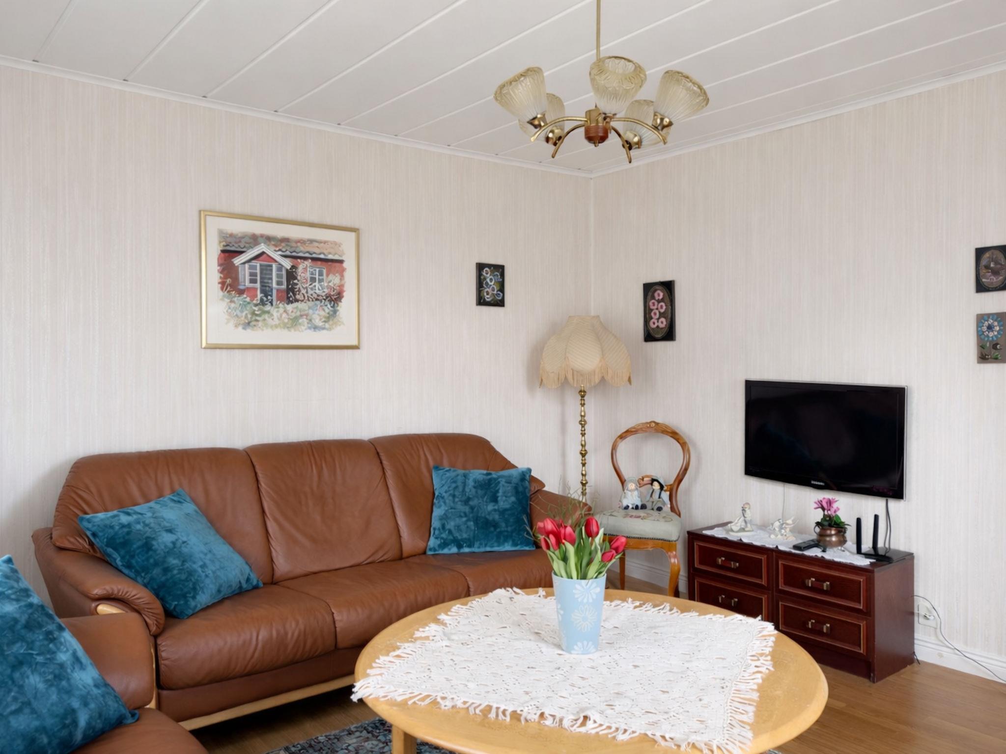 "Heagård", 4-Zimmer-Haus 110 m2. Gemütlich eingerichtet: Wohnzimmer mit TV. 1 Zimmer mit 1 Doppelbett (180 cm, Länge 200 cm). Küche (Backofen, Geschirrspüler, 4 Glaskeramikplatten, Toaster, Wasserkocher, Mikrowelle, Tiefkühler, elektrische Kaffeemaschine). Dusche/WC. Heizung. Obergeschoss: 1 Zimmer mit 1 Bett. 1 Zimmer mit 1 Doppelbett (180 cm, Länge 200 cm). Ausgang zum Balkon. Holzdielenboden. Terrassenmöbel, Gartengrill (mobil). Bitte beachten: Nichtraucher-Haus. Rauchmelder, Feuerlöscher.