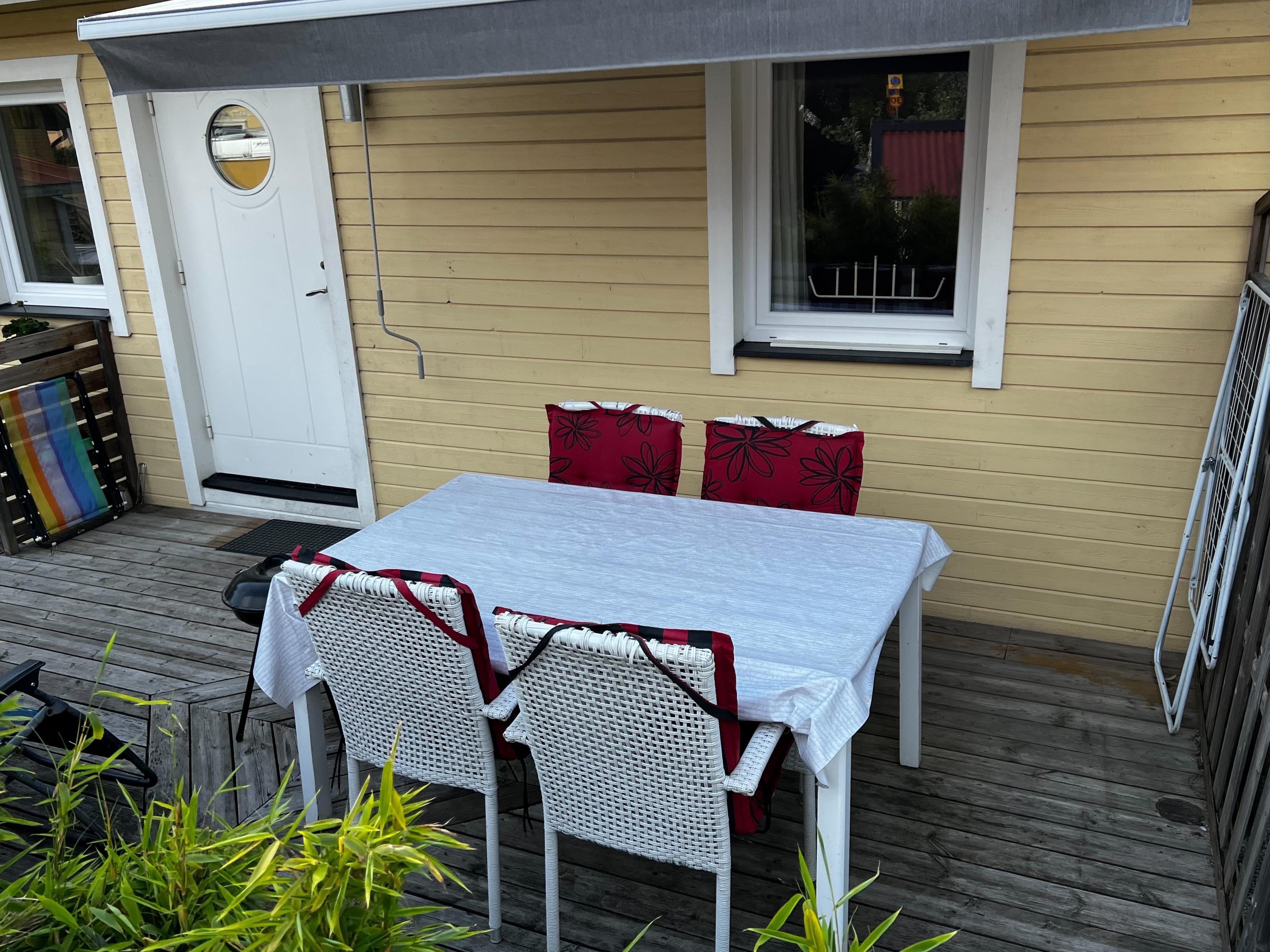 Terrasse mit Gartenmöbeln und Grill, Breitband und WLAN.
