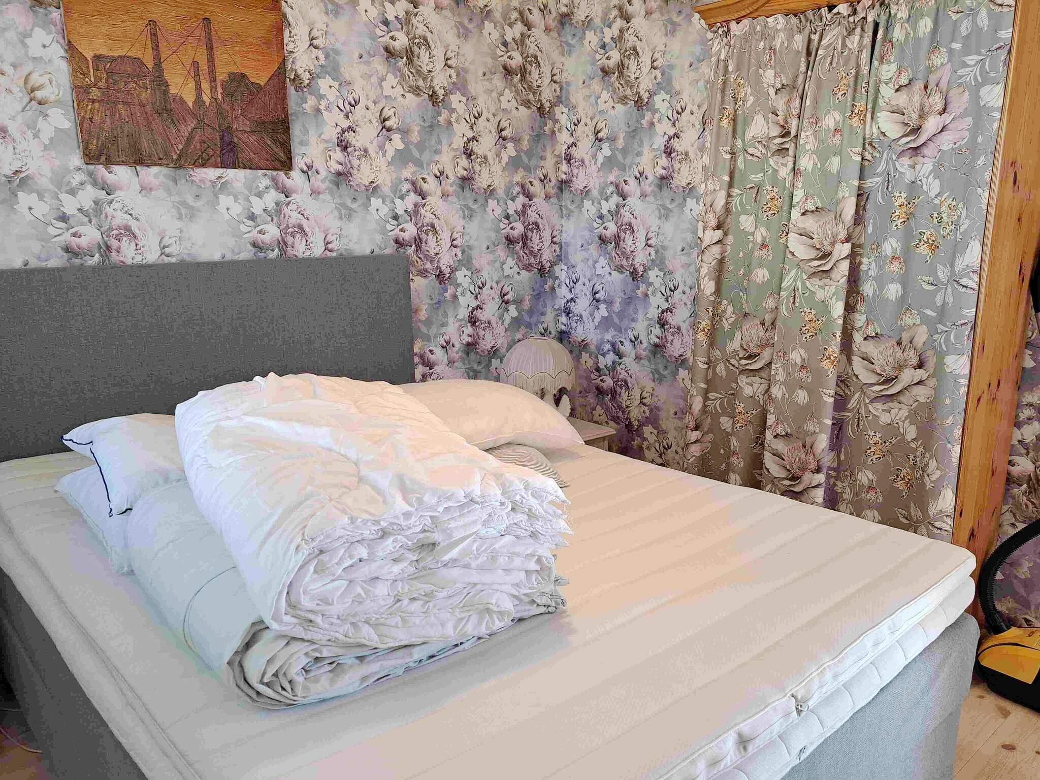 Here you live in a very pleasant cottage with scenic surroundings. Newly built cottage from 2024 with social open spaces between kitchen and living room with comfortable sofa bed for two. Comfortable bedroom with double bed (140 cm), bathroom with shower cabin, toilet and washing machine. Patio (wooden deck under construction) that invites you to nice dinners and relaxing moments to the birds singing. Located on a large plot with beautiful views, the nice owner lives in his house on the same plot.