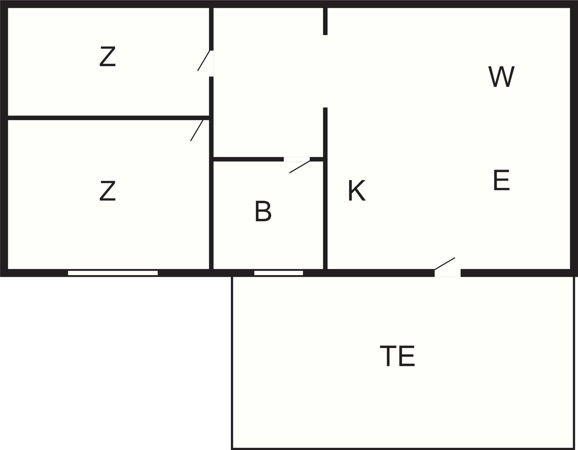 Das Haus hat einen offenen Grundriss zwischen Küche, Essbereich und Wohnzimmer. Es gibt vier Schlafplätze im Haus, verteilt auf zwei Schlafzimmern mit zwei Einzelbetten, auch als Doppelbett nutzbar, bzw. einem Etagenbett mit zwei Kojen. Das Badezimmer verfügt über Dusche und WC sowie eine Waschmaschine.