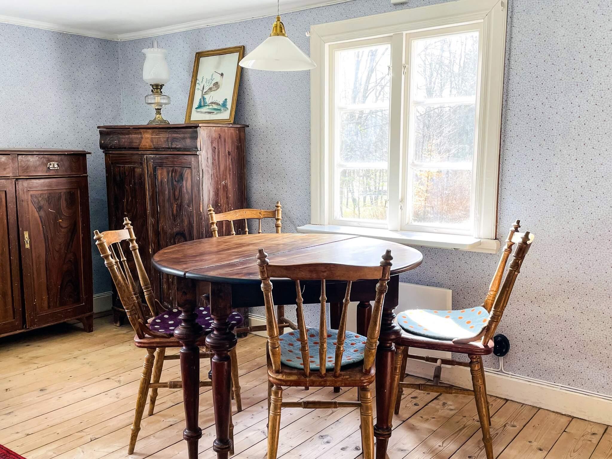 The entrance to the cottage is at the back. Here you step into a well-planned ground floor with a fully equipped kitchen - complete with coffee maker, microwave, stove, airfryer and dishwasher. There is also a dining table with space for four.