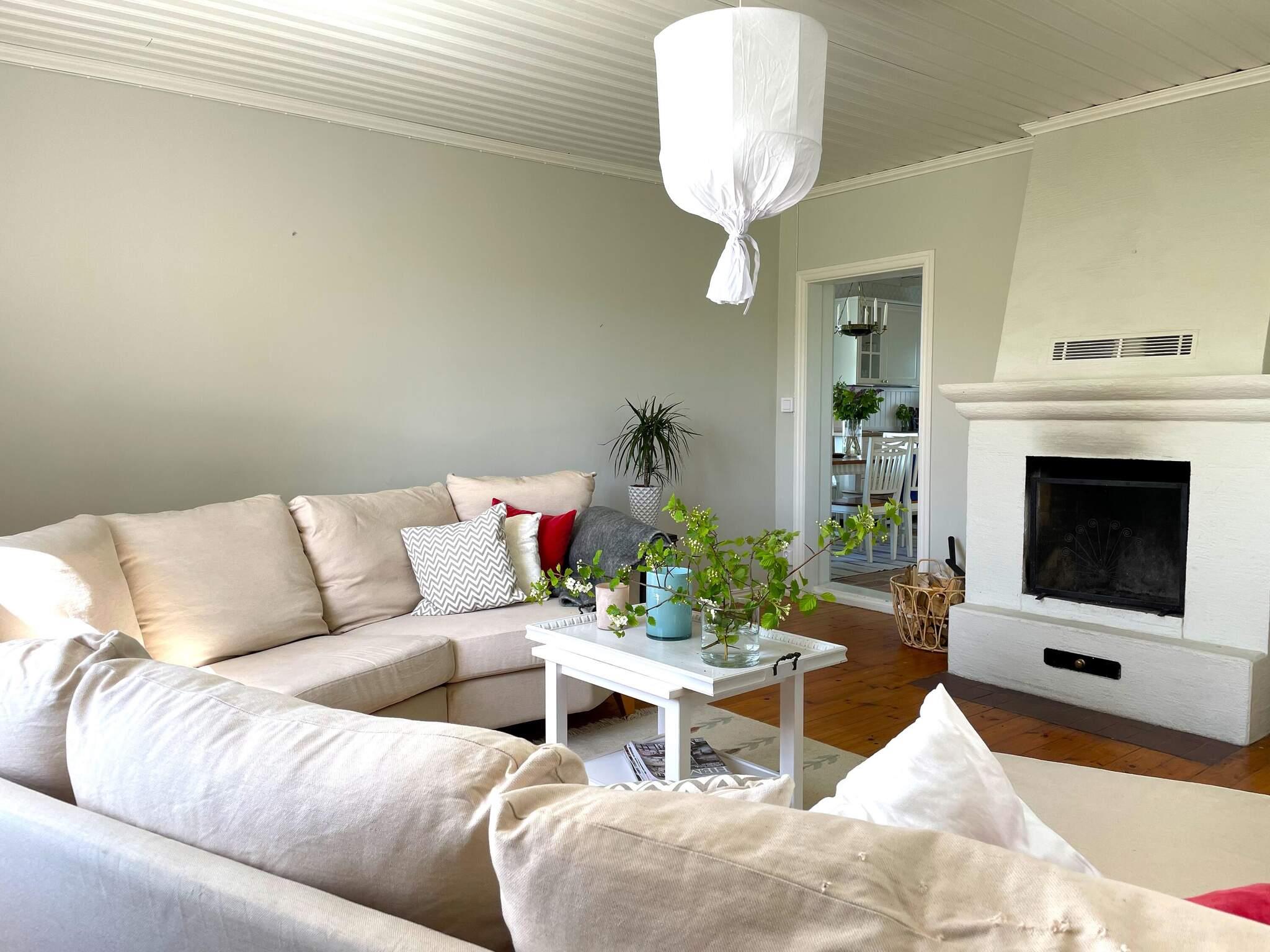 Das Ferienhaus ist hell und wohnlich, in einem einladenden Landhausstil eingerichtet. Heller Eingangsdiele, direkt links befindet sich das geflieste Badezimmer mit Fußbodenheizung, WC und Dusche. Geradeaus öffnet sich die große Küche mit einem Essbereich für 6 Personen. Auf der linken Hand befindet sich das Wohnzimmer mit einem bequemen Sofa und einem Kamin. Vor den Fenstern sieht man in einiger Entfernung den See glitzern. Von der Küche aus gelangt man auf die sonnige Terrasse. Rechts von der Küche befindet sich ein großes Schlafzimmer mit einem Doppelbett mit 180 cm Breite und Seeblick. Eine steile Treppe führt Sie nach oben ins gemütliche Familienzimmer mit 120 cm breitem Schlafsofa. Oben liegen zudem zwei geräumige Schlafzimmer mit jeweils einem 180 cm breiten Doppelbett. Alle Zimmer sind charmant, in einem hellen und gemütlichen Stil eingerichtet.