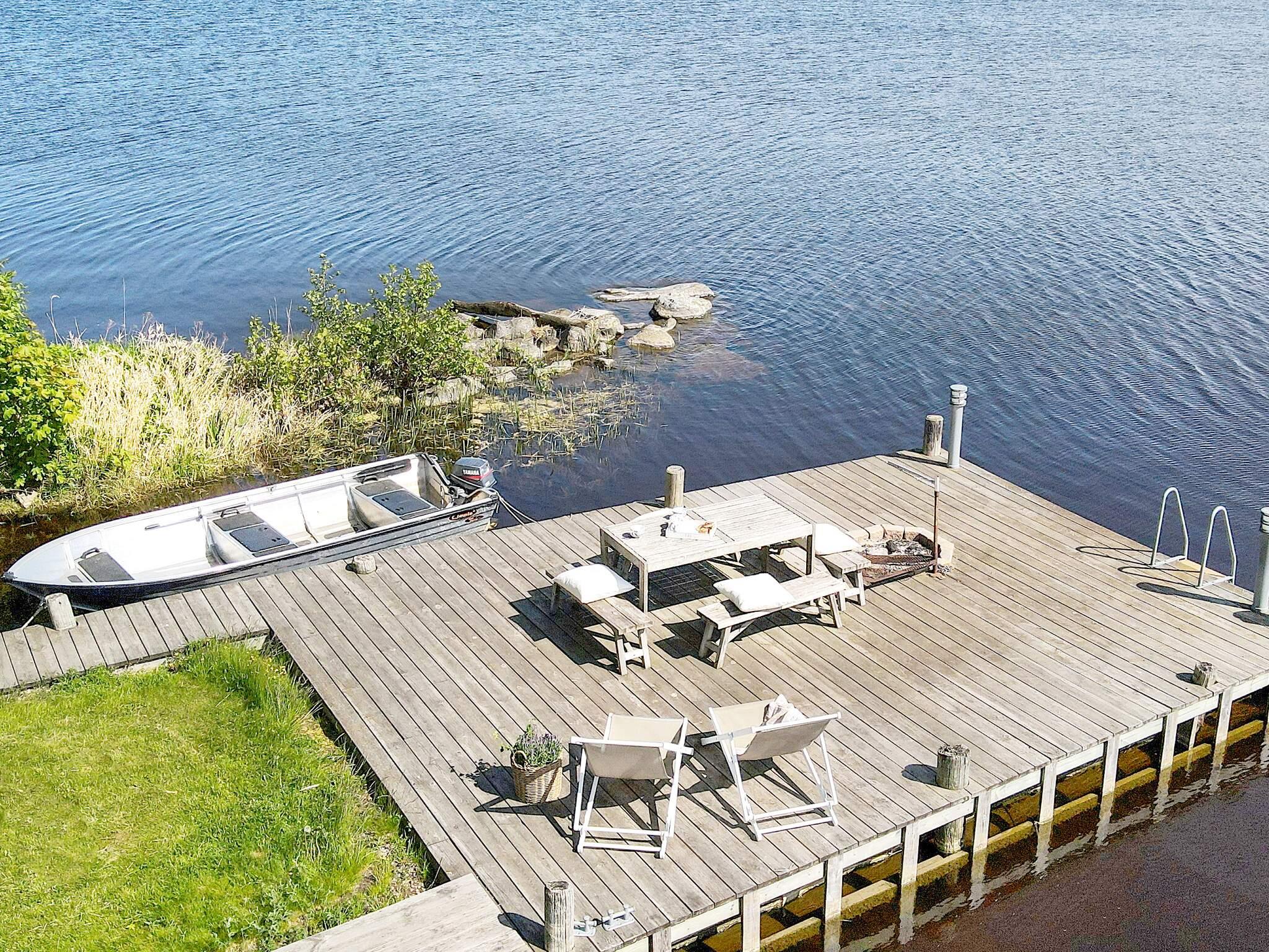Das Haus liegt auf einem parkähnlichen Grundstück, von dem Ihnen ein eigener Teil mit Bäumen und Rasenfläche, die sich bis hinunter ans Seeufer des Skagern erstreckt, zur Verfügung steht. Dort findet man ein kleines Strandufer sowie einen Bootssteg, an dem das mietbare Boot m. Motor vertäut liegt. Das Boot kann für Bade- oder Angelausflüge auf dem See genutzt werden. Freies Angeln nur in dem Teil des Sees, der dem Hauseigentümer gehört. Außerdem steht dort am Seeufer ein gemeinschaftlicher, holzbefeuerter Badezuber unter freiem Himmel bereit, den Sie sich mit weiteren Mieteinheiten vor Ort teilen. Er muss ggf. vor Ort reserviert werden. Die Nutzung kostet SEK 1.500,- pro Bad, inkl. Brennholz. Siehe auch die Objekte 38743, 38744 und 40719. Die Eigentümerfamilie bewohnt den Herrenhof, der ca. 20 m entfernt vom Eingang dieses Hauses steht. Die Veranda liegt jedoch zur abgewandten Seite und somit ohne Einblick. Ein Boot mit Motor kann angemietet werden.
