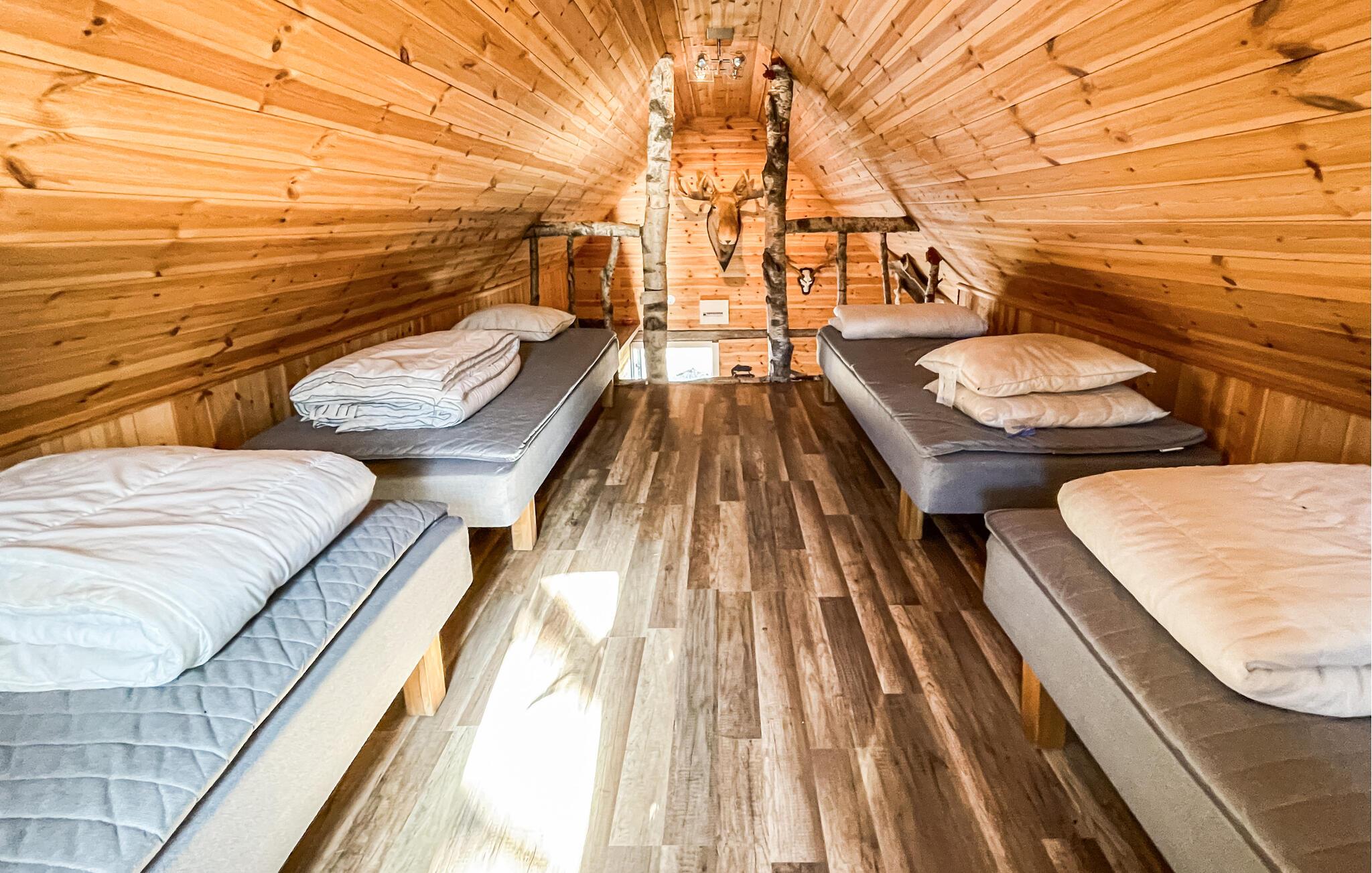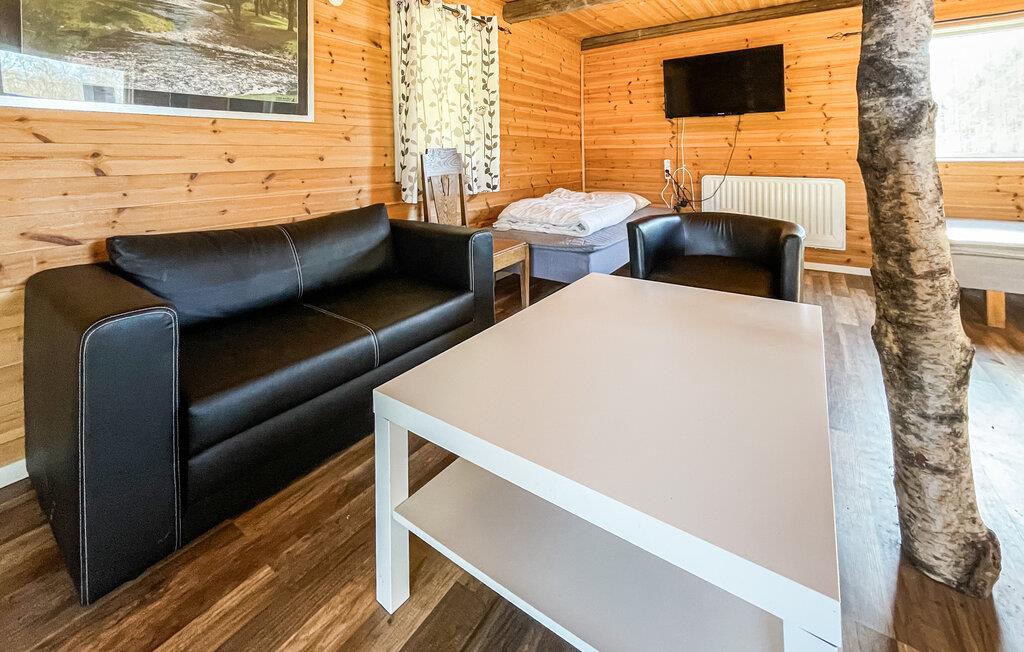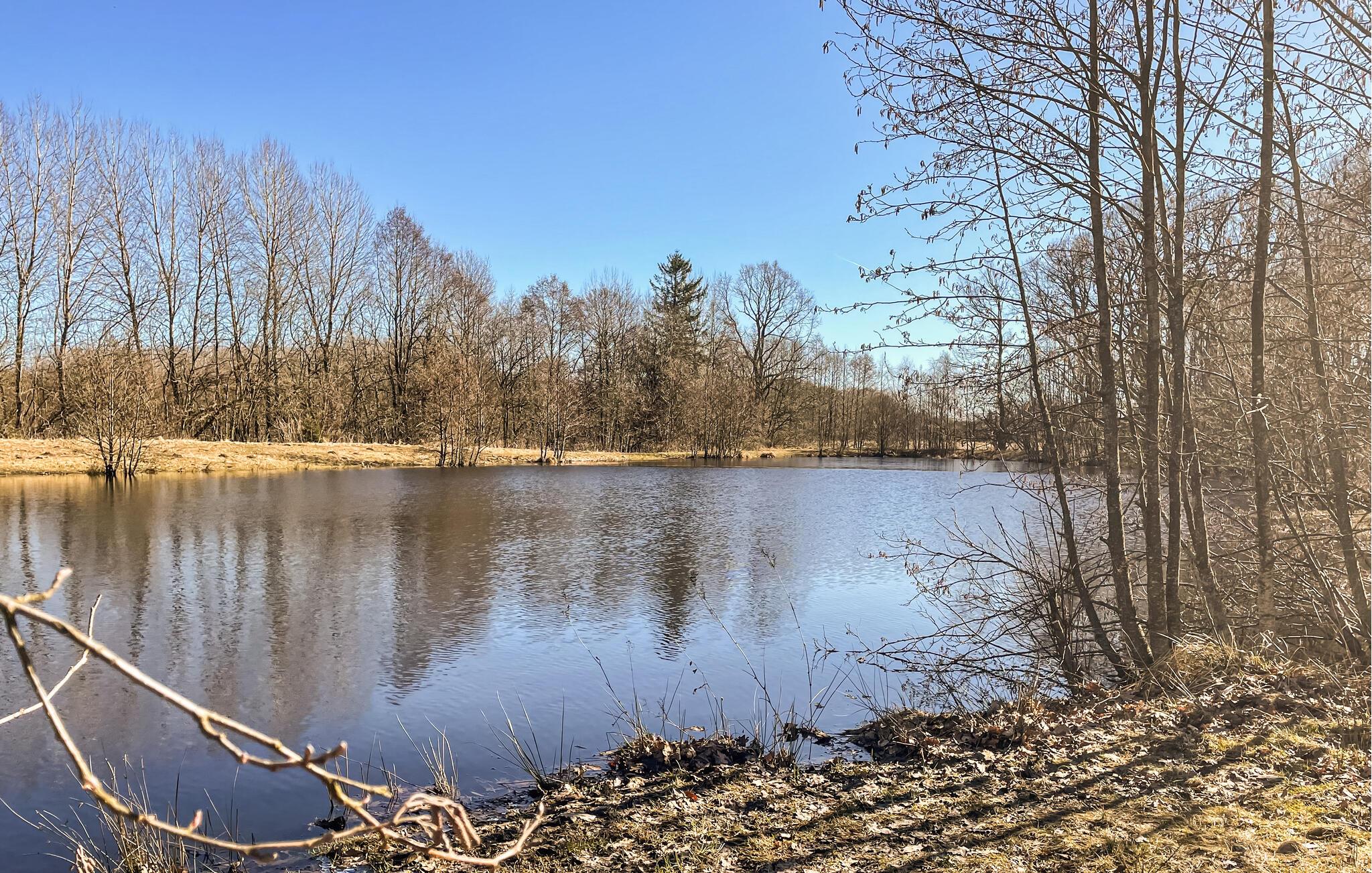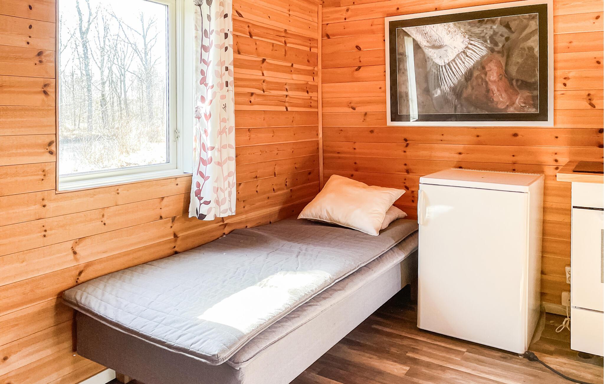 Willkommen zu einem entspannten Aufenthalt in diesem idyllisch gelegenen Holzhaus. Umgeben von Wiesen, alten Bäumen und einem kleinen See erleben Sie hier eine wohltuende Auszeit fernab vom Alltag. Der freundlich eingerichtete Innenraum lädt zum Verweilen ein. Machen Sie es sich auf dem Sofa oder dem Sessel gemütlich, während die Sonne durch die Fenster scheint. In der hellen Küche kochen Sie gemeinsam kleine Mahlzeiten.