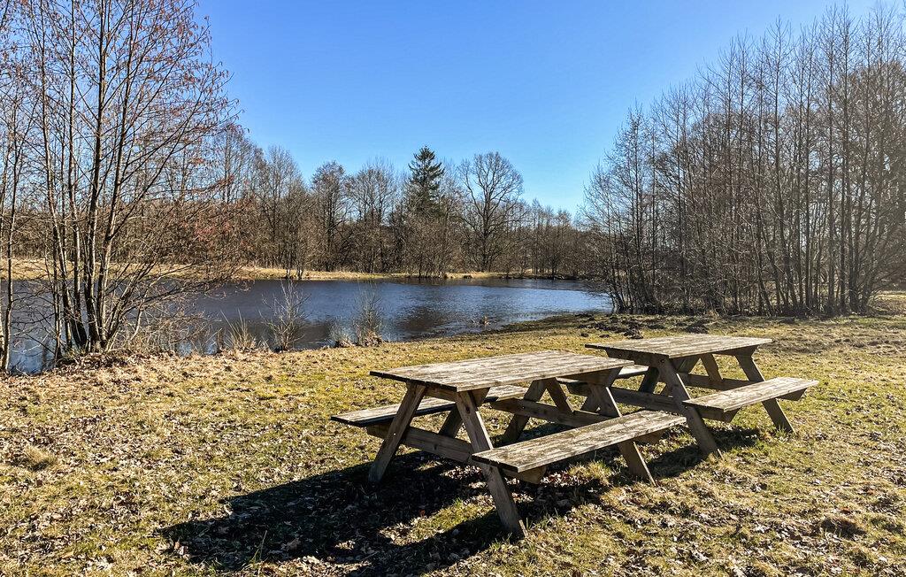 Draußen lädt die überdachte Veranda zum Genießen ein, ob mit einer heißen Tasse Kaffee am Morgen oder beim Grillen in den Abendstunden. Das weitläufige Grundstück und der kleine See bieten viel Raum für Spiel, Ruhe und wundervolle Naturerlebnisse. Setzen Sie sich an die Gartentische im Freien und genießen Sie die Aussicht und die frische Luft.
