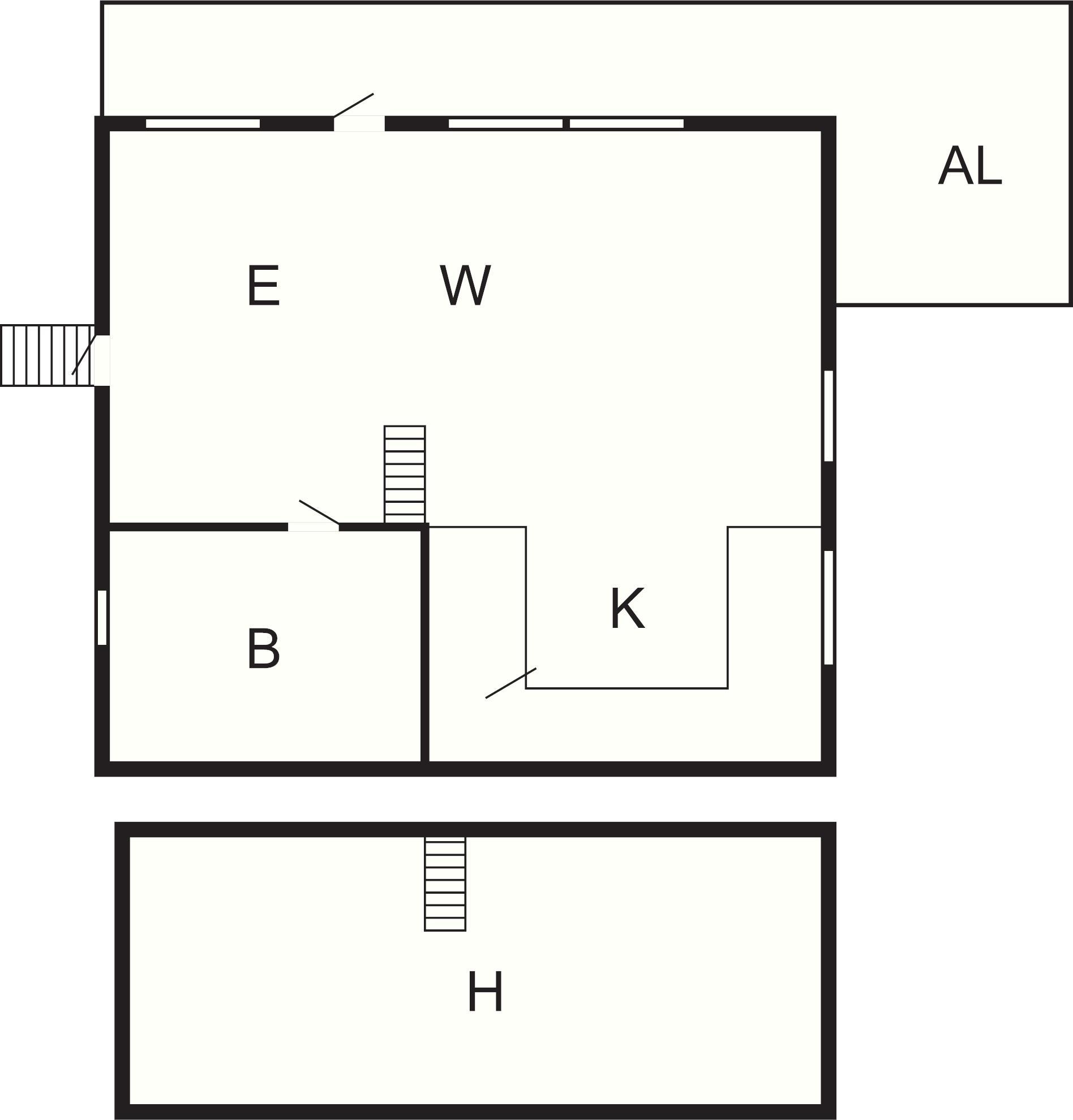 Küche: E-Herd, Kühl-Gefrier-Kombi, Mikrow., Abzugsh., Kaffeem.