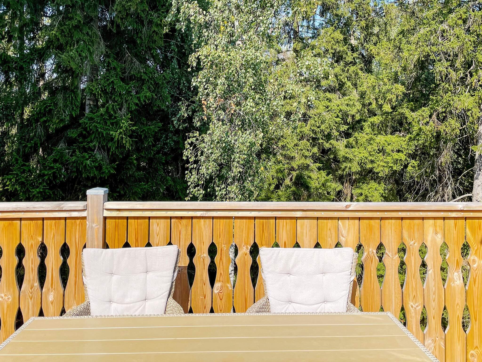Eine große private Terrasse mit Gartenmöbeln und Grill für gemütliche Sommerabende steht im Außenbereich für Sie bereit. Die Rückseite des Häuschens liegt am Privathaus der Eigentümer, Vorderseite und Holzterrasse zeigen zum Wald. Wunderbar erholsame Umgebung!