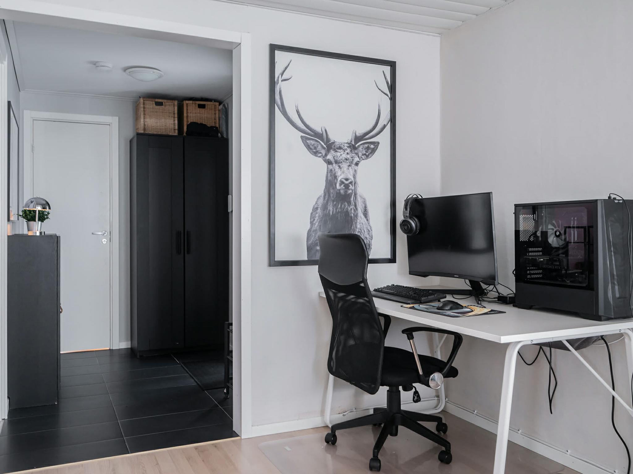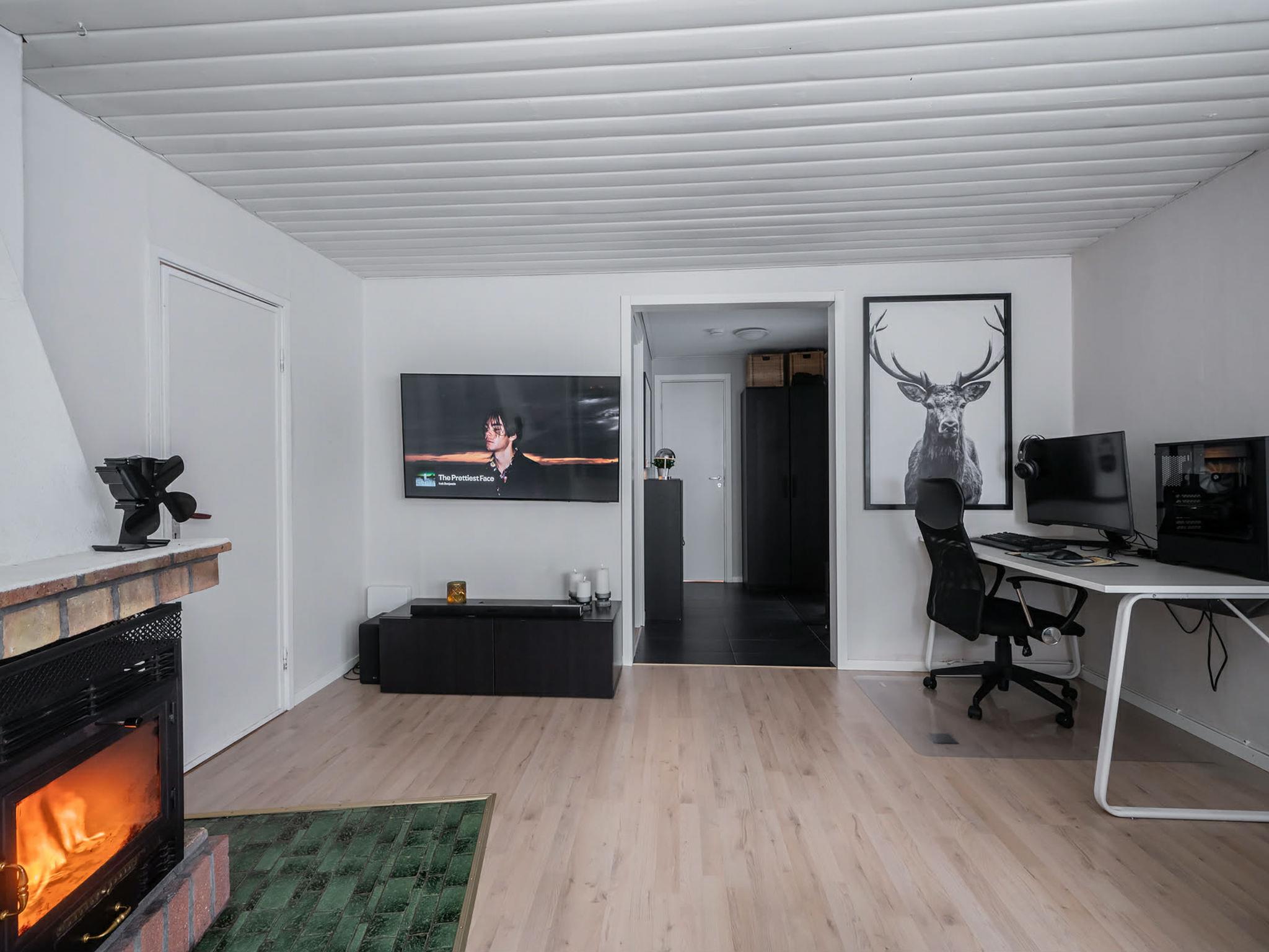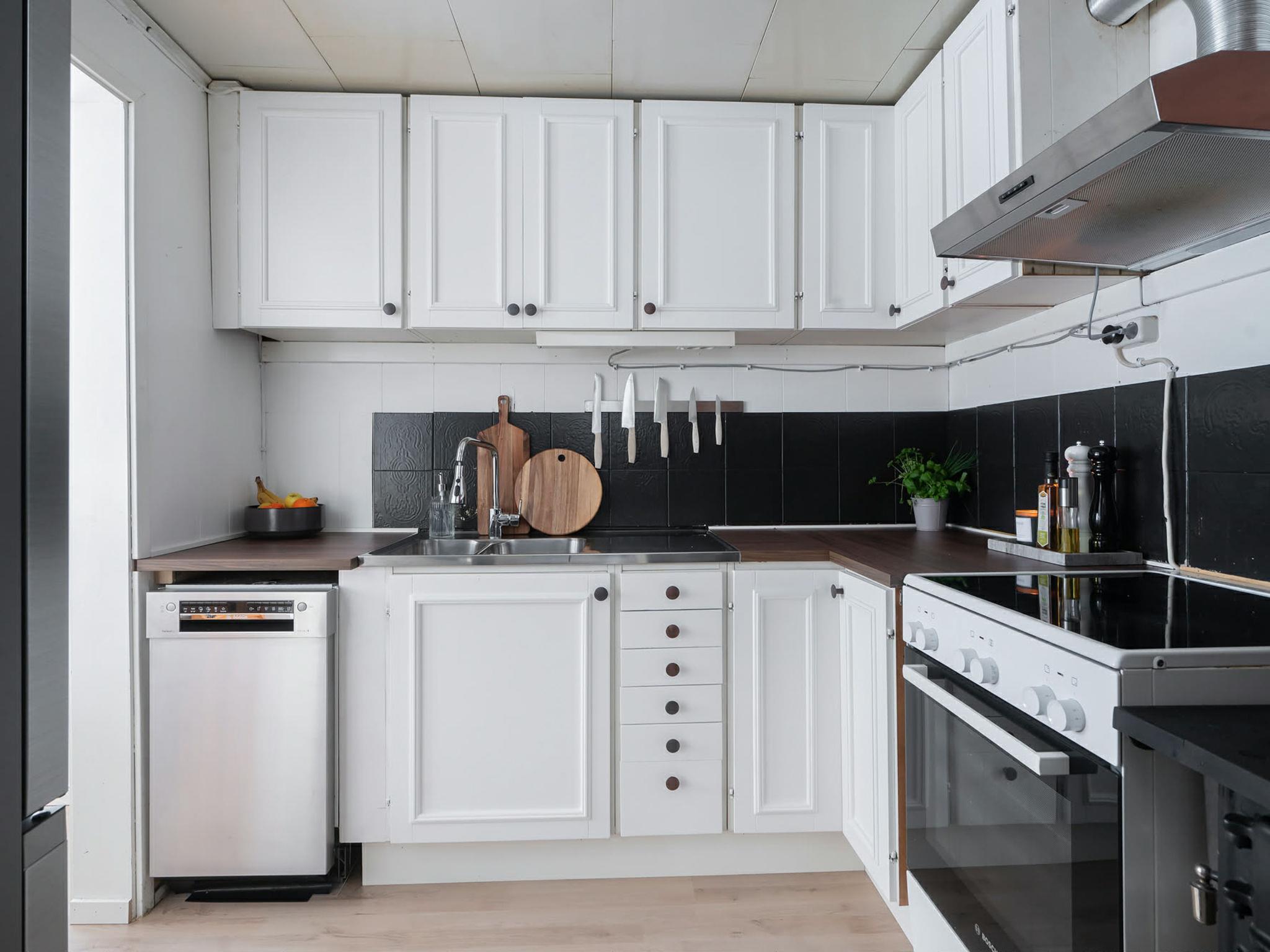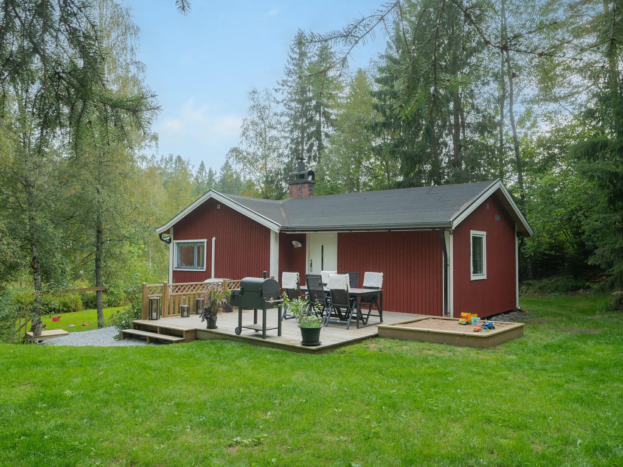 "Paradislyckan", 4-Zimmer-Haus 36 m2. Zweckmässig und modern eingerichtet: offenes Wohnzimmer mit offenem Kamin und TV. Ausgang zur Veranda. 1 Zimmer mit 1 Doppelbett (180 cm, Länge 200 cm). 1 Zimmer mit 2 Betten (90 cm, Länge 200 cm). 1 Zimmer mit 1 Bett (80 cm, Länge 200 cm). Offene Küche (Backofen, Geschirrspüler, 4 Glaskeramikplatten, Toaster, Wasserkocher, Tiefkühler, elektrische Kaffeemaschine) mit Esstisch. Dusche/WC. E-Heizung, Klimaanlage. Parkettboden. Terrasse 18 m2. Gartengrill (mobil), Liegestühle (4). Eingeschränkte Sicht auf den Garten und den Wald. Zur Verfügung: Waschmaschine, Wäschetrockner, Kinderhochstuhl, Babybett, Haartrockner. Internet (WLAN, gratis). Bitte beachten: Nichtraucher-Haus. Rauchmelder, Feuerlöscher.