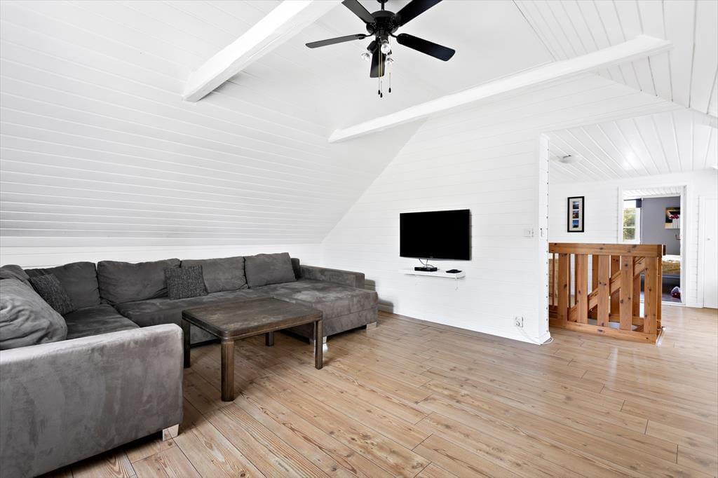 Das moderne und laufend renovierte Ferienhaus bietet mit 110 m² Wohnfläche viel Platz für einen Familienurlaub. Im Erdgeschoss befinden sich ein großes Wohnzimmer, mit Sitzecke und Esstisch, sowie zwei Schlafzimmer, eines davon mit einem 140 cm breiten Doppelbett ausgestattet, das andere mit einem 90 cm breiten Einzelbett mit integriertem Ausziehbett für eine weitere Person. Eine sehr gut ausgestattete Wohnküche mit Elektroherd, separatem Backofen, Kühlschrank mit Gefrierfach, Senseo-Kaffeepadmaschine, Geschirrspüler und Esstisch mit Hockern, sowie ein kleiner Hausarbeitsraum befinden sich ebenfalls im Erdgeschoss. Im Obergeschoss gibt es ein weiteres, zur Treppe hin offenes Wohnzimmer mit gemütlichem Sofa und SAT-TV mit deutschen Programmen sowie ein drittes Schlafzimmer mit Doppelbett und ein freundliches, helles Duschbad mit WC, Handwaschbecken und Waschmaschine. Das Haus hat fließend kaltes und warmes Wasser und kann elektrisch beheizt werden. Den Gästen stehen weiterhin eine überdachte Veranda auf der Gartenseite, Sommermöbel und Grill zur Verfügung.