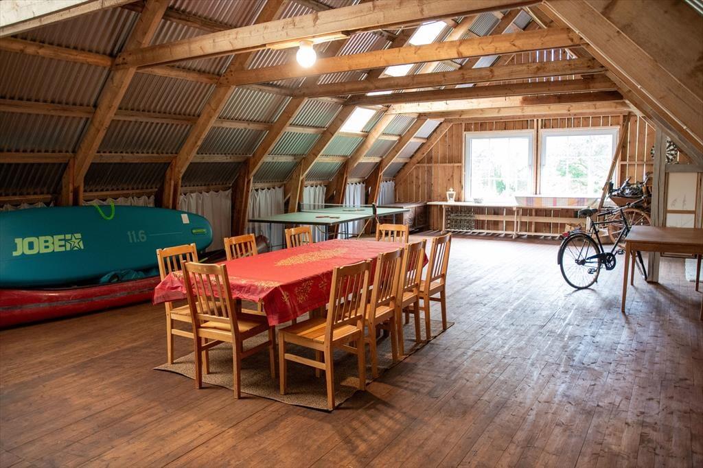 In der großen Scheune kann Tischtennis gespielt, getanzt und gefeiert werden. Kinder können sich bei regnerischem Wetter dort auf 200 m² austoben und es gibt 20 Yogamatten. Am See liegt ein Kahn, der ebenso wie das Stand-Up Paddel und das Kanu (beides in der Scheune) genutzt werden darf.
