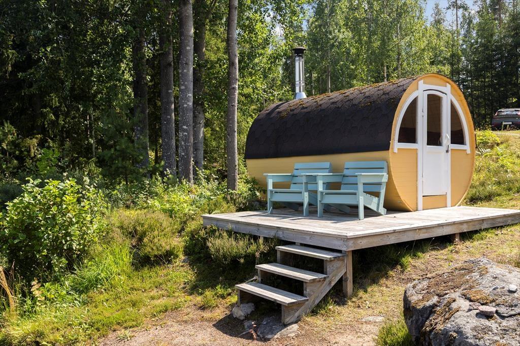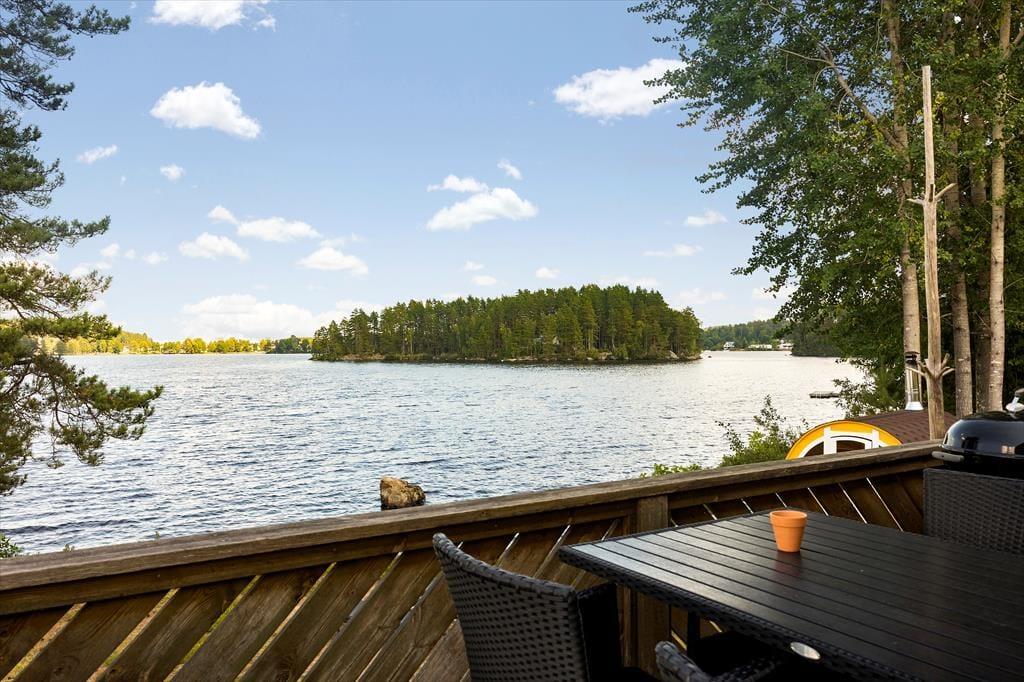 Auf einer Wohnfläche von etwa 60 m² bietet das Haus Platz für bis zu 6 Personen. Es empfängt dich mit einer offen gestalteten, 25 m² großen Wohnküche, ausgestattet mit Elektroherd mit Glaskeramikkochfeld und Backofen sowie Kühl- und Gefrierschrank, Geschirrspüler, Mikrowelle und Kaffeemaschine. Vom Esstisch aus kannst du den Blick über den See schweifen lassen. Der sich anschließende Wohnbereich mit großen Fenstern zum See ist mit einer gemütlichen Sitzgruppe ausgestattet. WLAN mit mindestens 20 Mbit steht dir außerdem zur Verfügung. Von den drei Schlafzimmern ist eines mit einem Doppelbett, die beiden anderen sind mit je einem Etagenbett möbliert. Bei Bedarf kann auch ein Gitterbett gestellt werden. Im Badezimmer findest du WC, Dusche und Handwaschbecken. Die beiden teilüberdachten Veranden sind mit Gartenmöbeln ausgestattet und bieten einen herrlichen Ausblick auf den See. Darüber hinaus stehen dir ein Holzkohlegrill sowie eine mit Holz zu beheizende Sauna direkt am See zur Verfügung. Dein Auto kannst du am Haus parken.