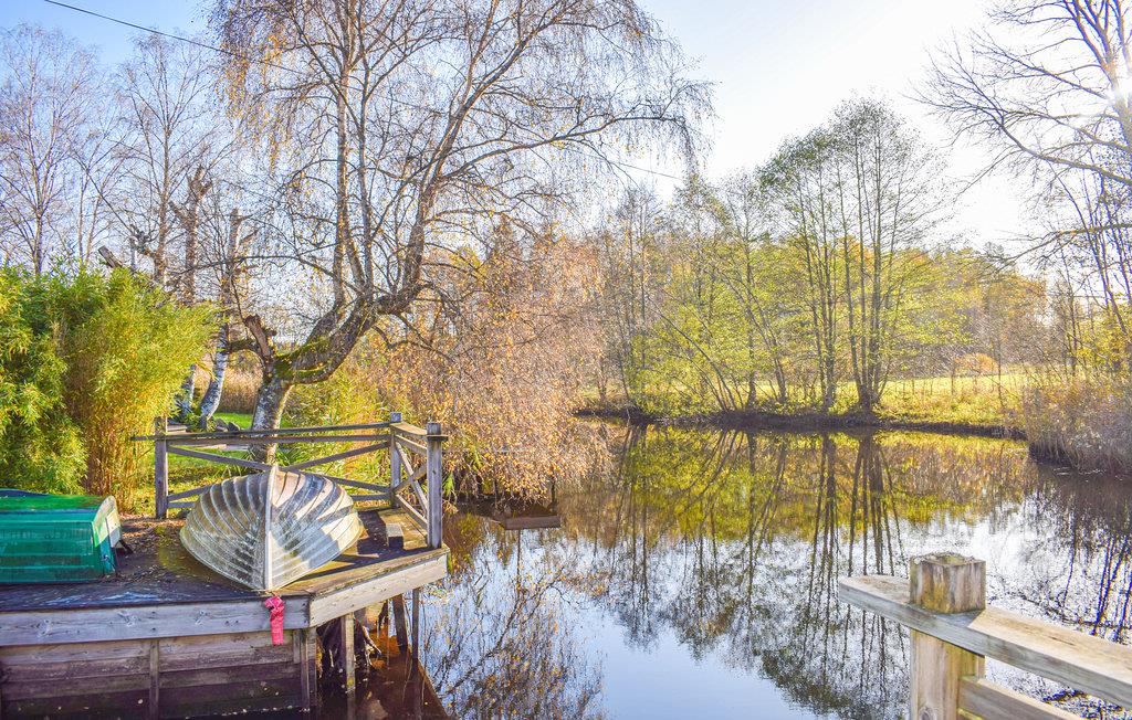 Zum Haus gehört ein großer Garten, der an den Fluss Huskvarnaån grenzt. Mehrere Terrassen am Haus und am Wasser bieten wunderschöne Orte für Ruhe und Erholung. Ein Kajak, ein Kanu und zwei Ruderboote können gegen eine Gebühr gemietet werden.