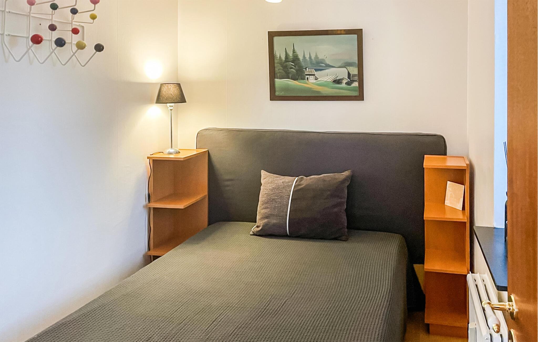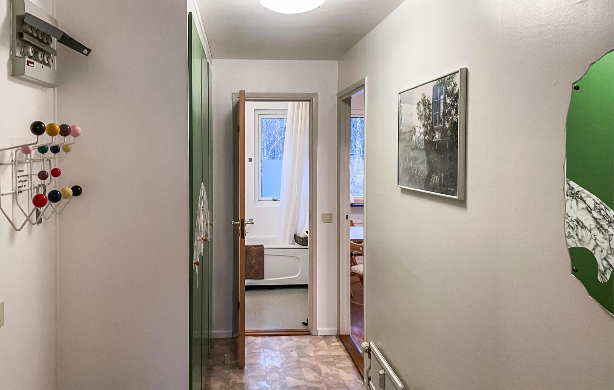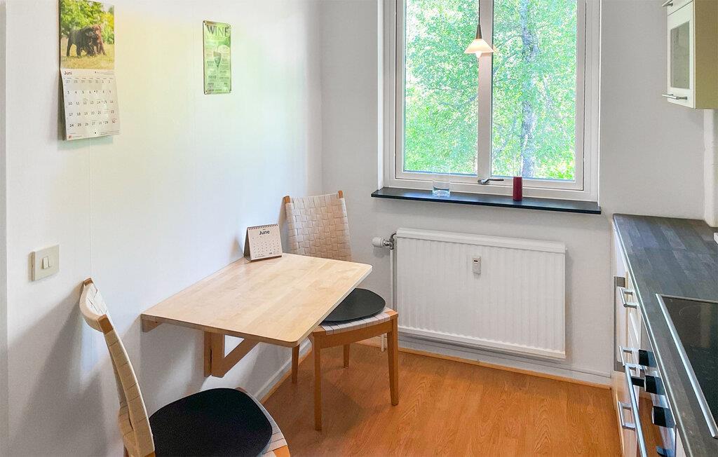 Diese hübsche Ferienwohnung bietet mit ihrem Wohnraum, dem Bad und der Essküche bis zu vier Gästen Platz. Auf dem überdachten Balkon mit einem kleinen Tisch und zwei Stühlen können Sie morgens frühstücken oder den Tag bei einem Glas Wein ausklingen lassen. Auf dem gemeinsamen Grundstück finden Sie Gartenmöbeln und einen Spielplatz. In 100 m Entfernung befindet sich ein größerer Spielplatz. Die Wohnung befindet sich in einem sog. Freizeitzentrum mit Wohnungen für Freizeitzwecke.