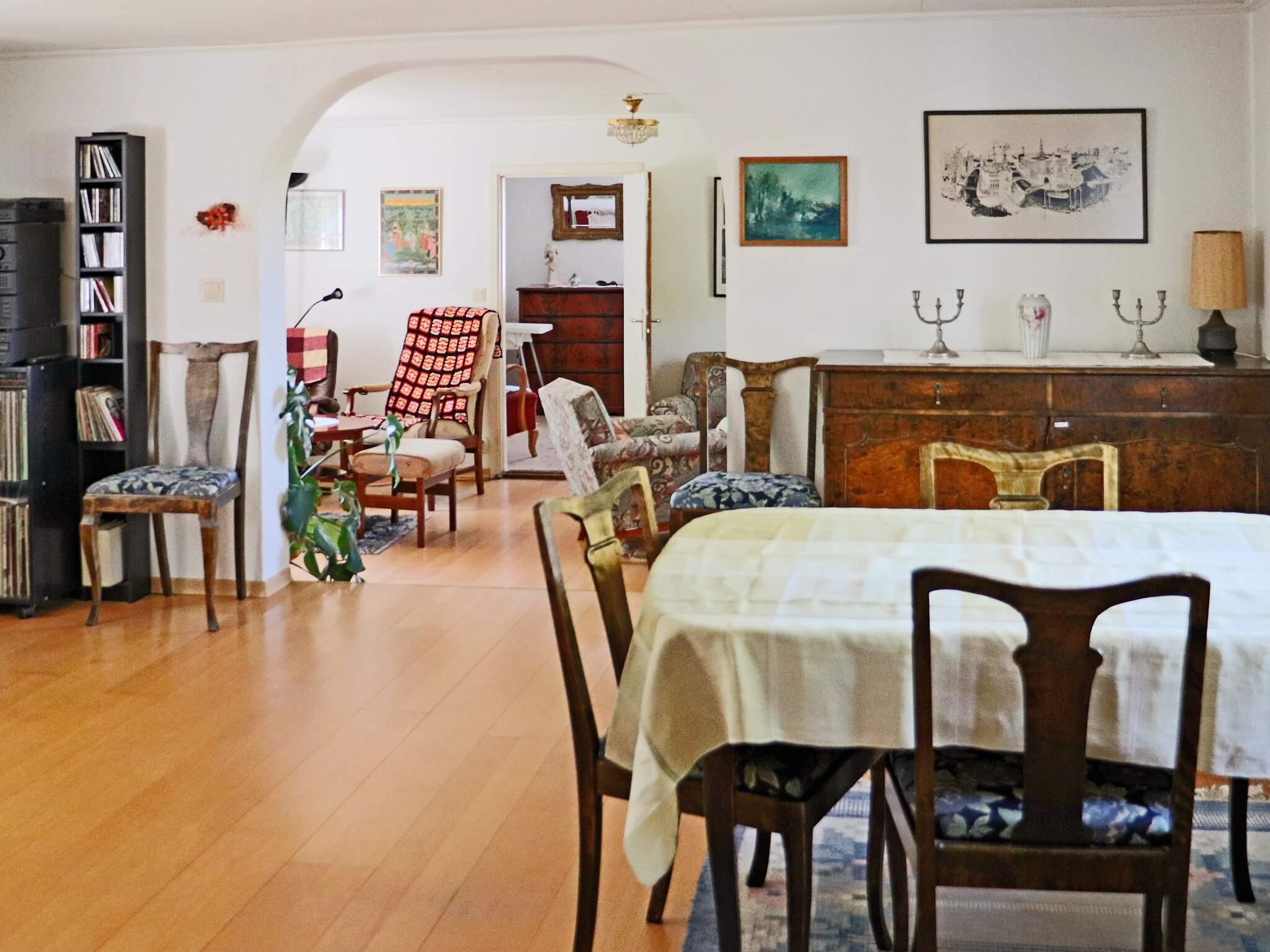 Vom Eingang an der Rückseite des Hauses gelangt man zum Badezimmer mit Dusche und zur praktischen Waschküche. Die Küche verfügt über alle notwendigen Geräte und auch über einen großen Essbereich. Den Mittelpunkt für das Familienleben sind zwei offene Wohnräume, geschmackvoll und komfortabel mit viel Charme eingerichtet. Hier gibt es auch einen modernen Fernseher mit Chromecast. Das Haus verfügt über Glasfaser und kostenloses WLAN.