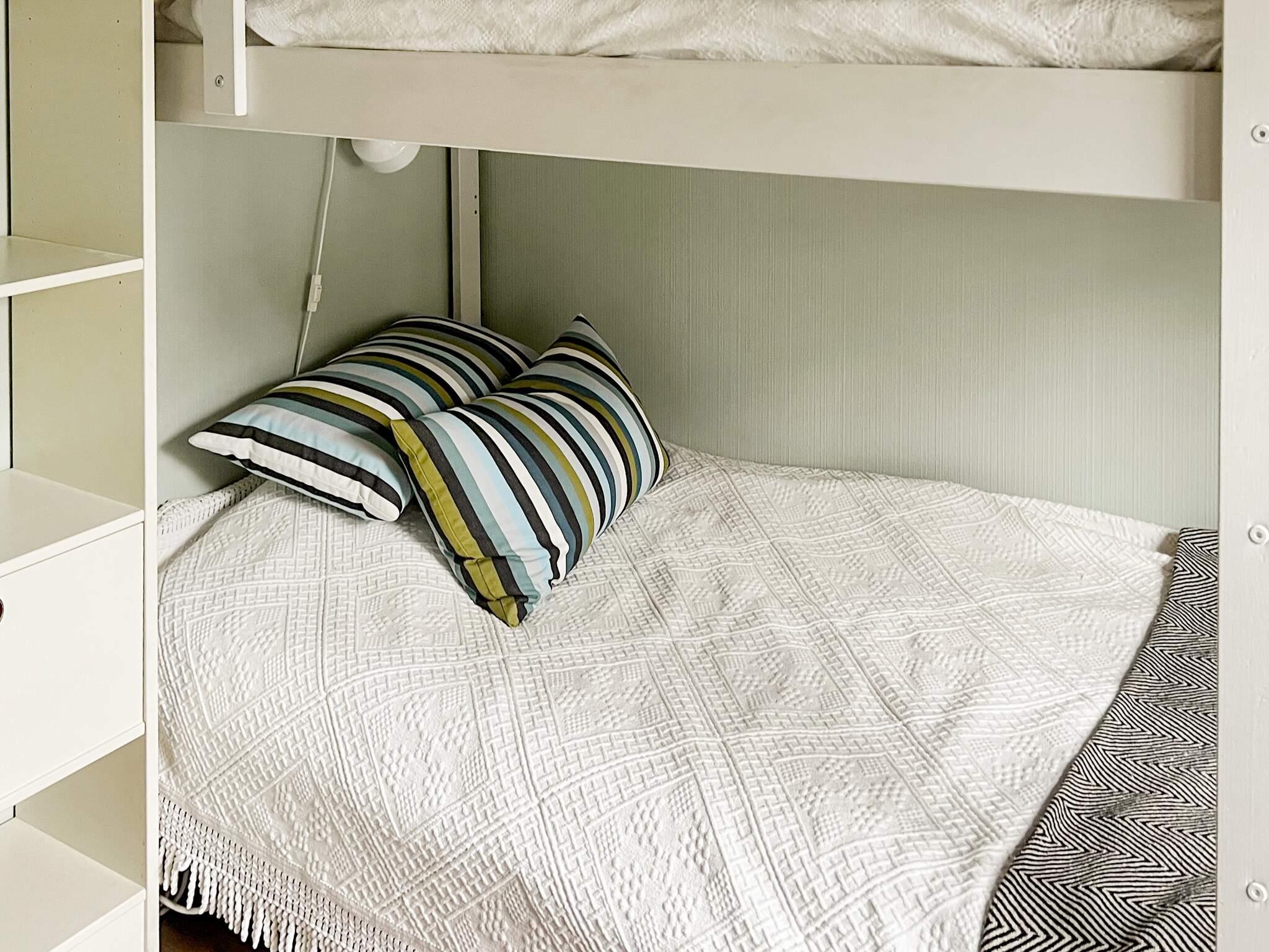 Im geräumigen Ferienhaus stehen Ihnen zwei Badezimmer, eines mit Badewanne, WC und kombiniertem Waschtrockner, das zweite mit WC und Dusche, zur Verfügung. Es gibt auch zwei Doppelzimmer und zwei Zimmer mit je einem Etagenbett mit zwei bzw. drei Schlafplätzen. Im Billardzimmer steht zudem ein Schlafsofa für zwei Personen.