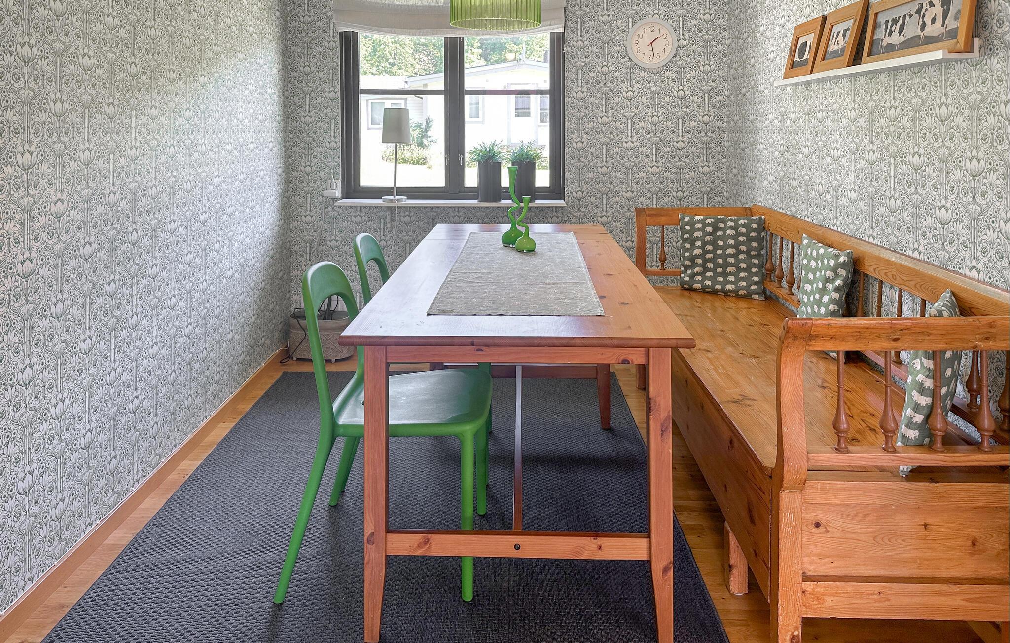 Am Vänern, Schwedens größtem See, begrüßt Sie Ihr Ferienhaus zu einem geruhsamen Urlaub. Freuen Sie sich auf eine praktische Inneneinrichtung und mehrere Terrassenflächen, wo Sie die frische Luft und den Blick auf den See genießen können. Starten Sie ruhig in den Tag und genießen Sie die erste Tasse Kaffee an der Küchentheke. Nach einem leckeren Frühstück wartet die schwedische Natur darauf, entdeckt zu werden.