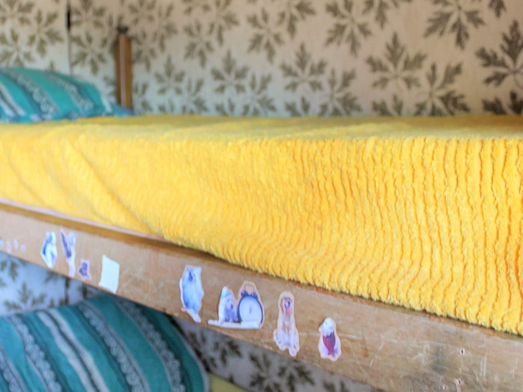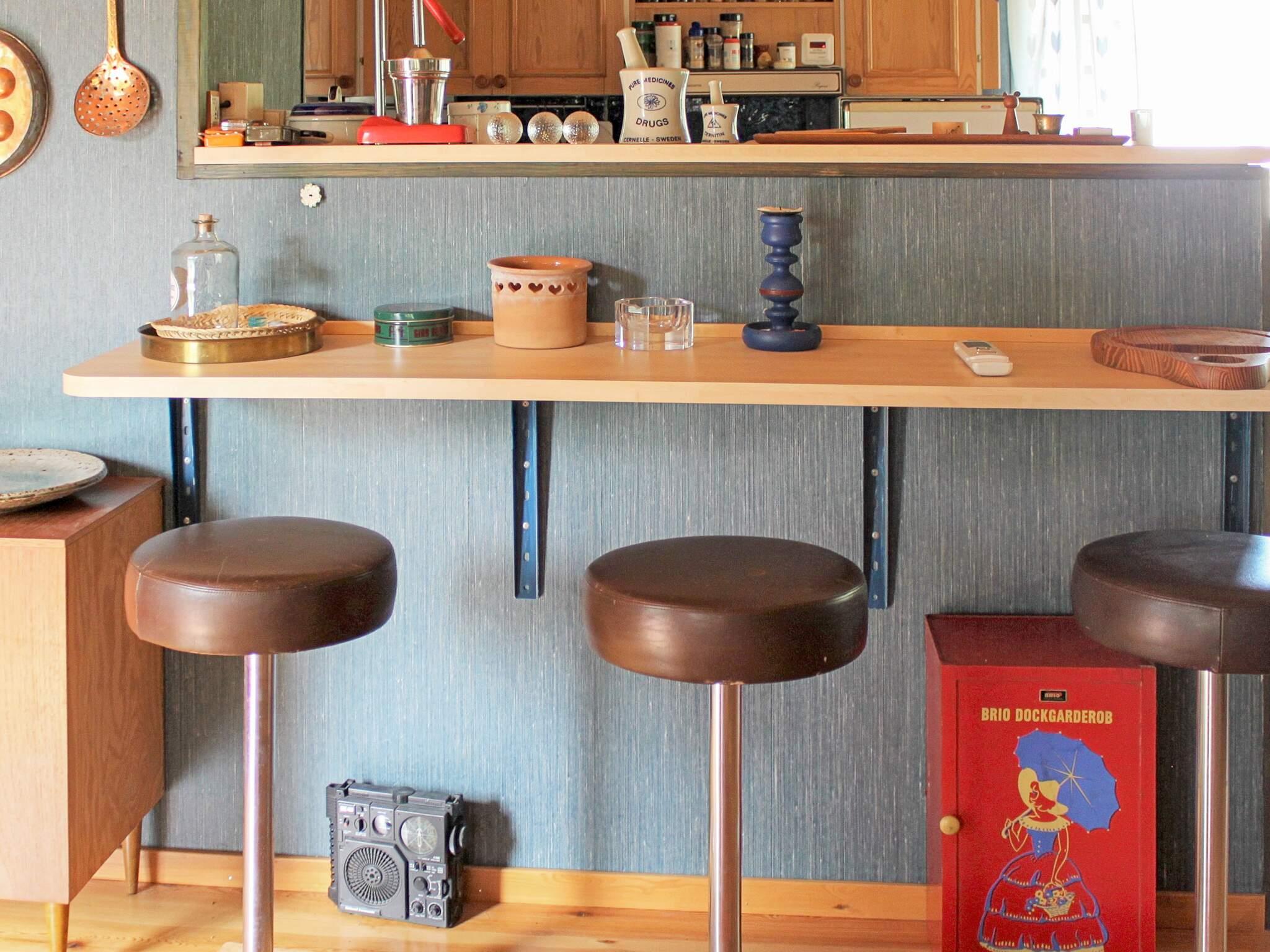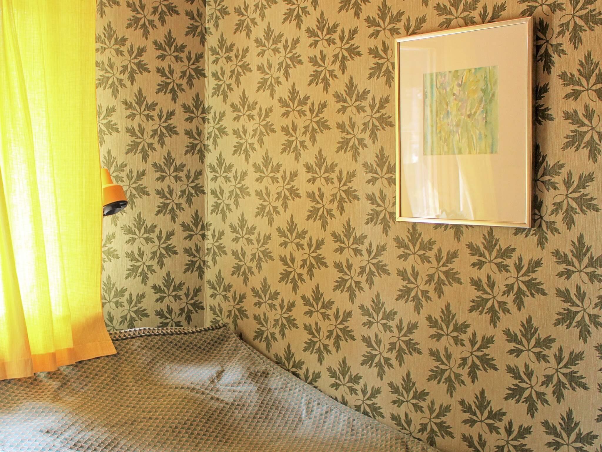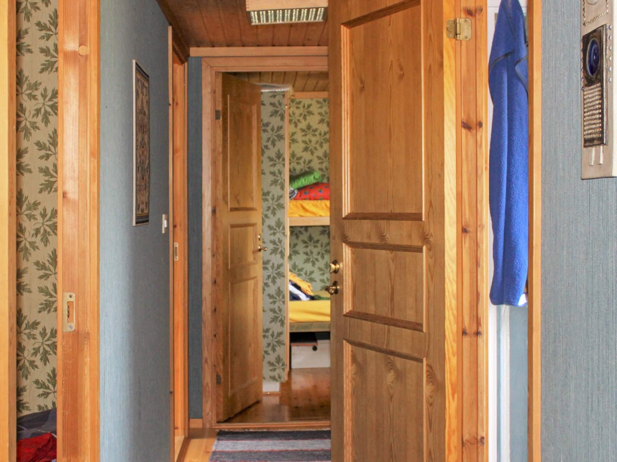 Offener Küchenbereich mit Essecke für 6 Personen und einem Holzofen nebenan. Das Wohnzimmer hat viele Sitzgelegenheiten und ein großes Fenster mit schönem Lichteinfall von der Terrasse. Rechts vom Eingang befindet sich ein kleiner Korridor. Das erste Zimmer rechts ist das Badezimmer mit Dusche/WC. Das gegenüberliegende Zimmer ist ein kleineres Schlafzimmer mit einem 120 cm breiten Einzelbett. Angrenzend befindet sich das Hauptschlafzimmer mit einem 160 cm breiten Doppelbett und ganz hinten noch ein Schlafzimmer mit einem 80 cm breiten Etagenbett.