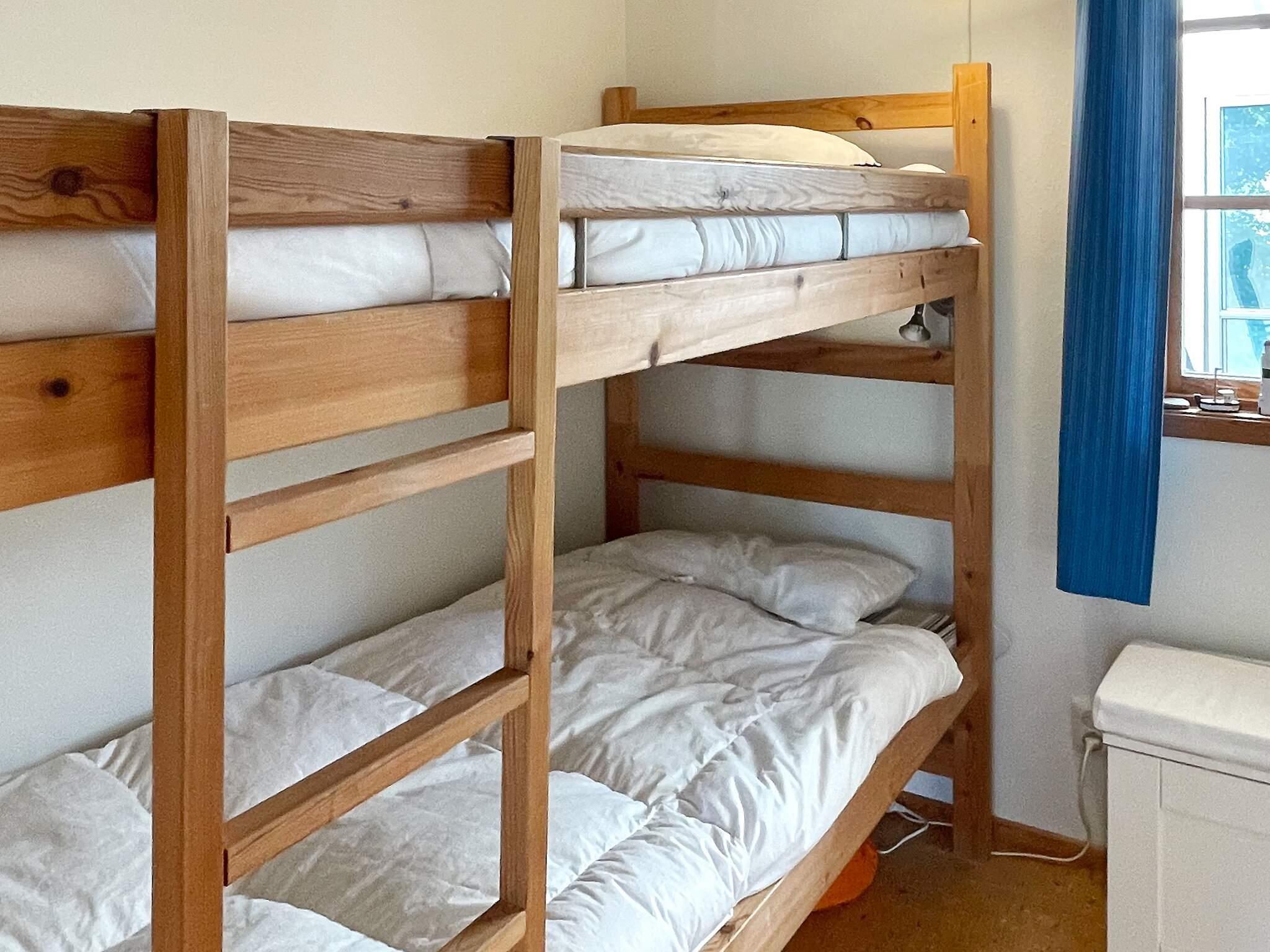 Das Ferienhaus hat ein großes Wohnzimmer mit integriertem Küchen- und Essbereich. Das Haupthaus bietet zudem drei Schlafzimmer; eines mit zwei Betten, die zu einem Doppelbett zusammengestellt werden können, das zweite mit einem Einzelbett, das dritte mit einem Etagenbett mit zwei Kojen. Sie haben auch den Annex nebenan mit einem weiteren Etagenbett zur Verfügung, mit Doppelkoje unten und Einzelkoje darüber.