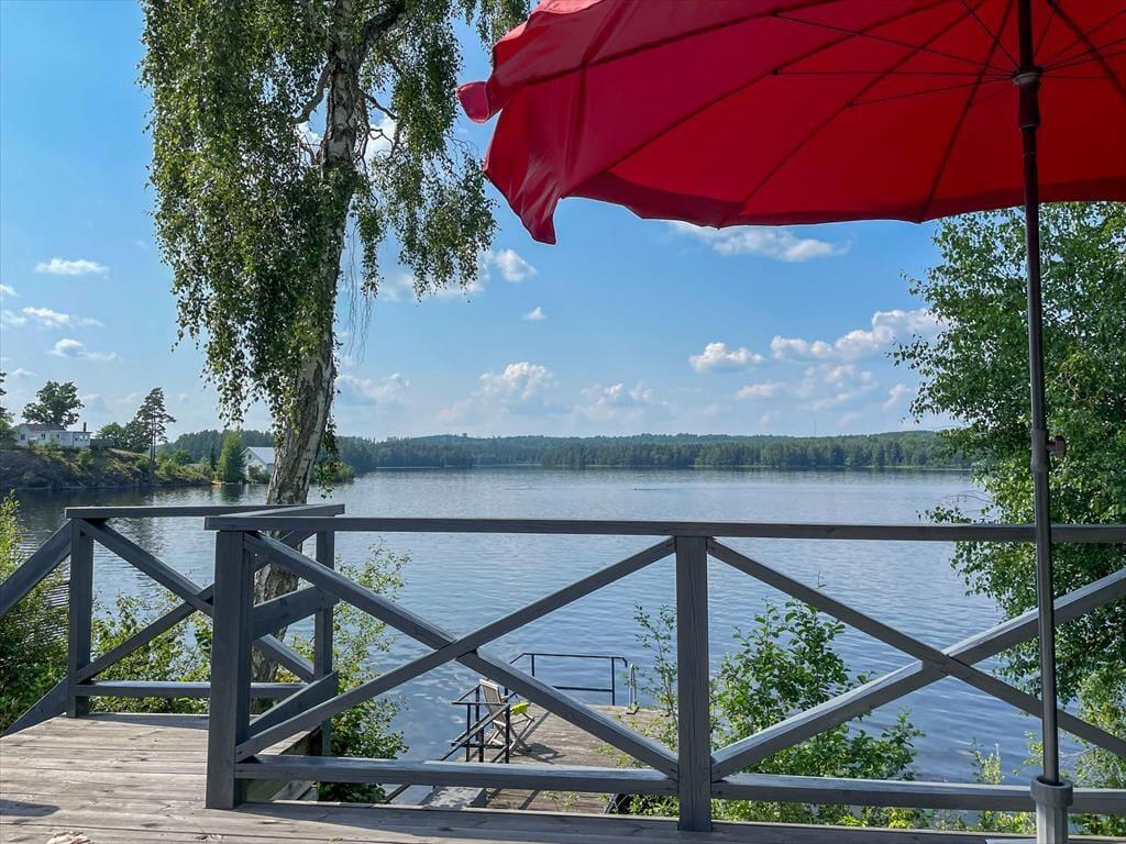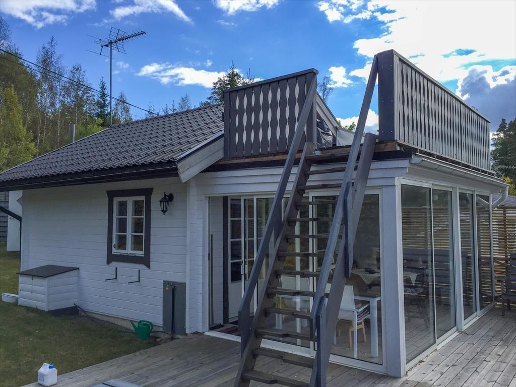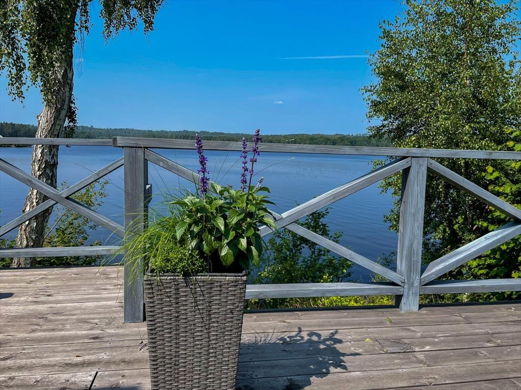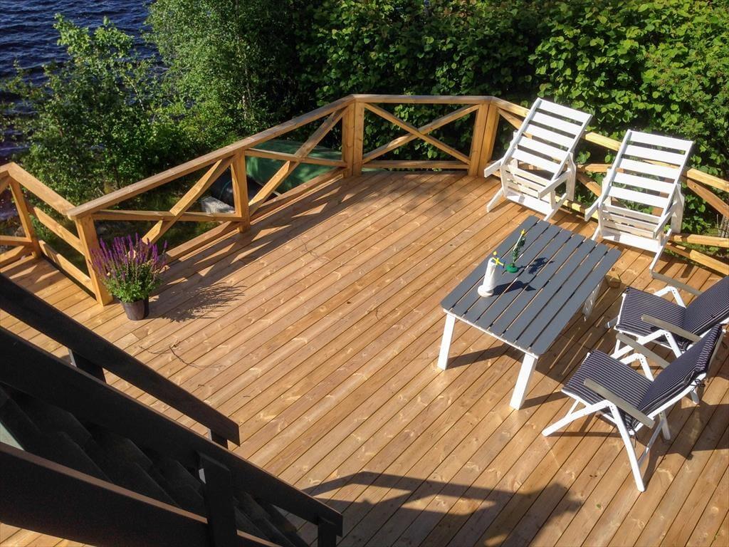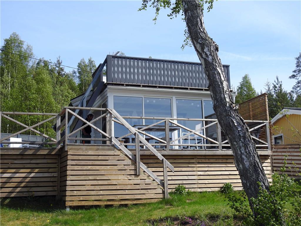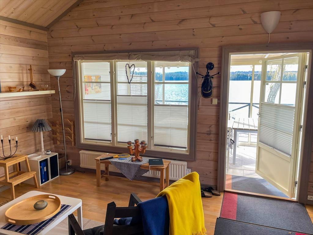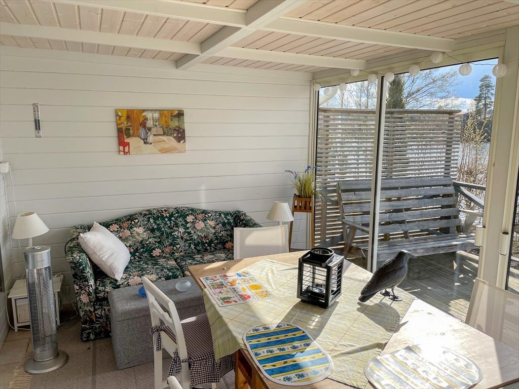 Ein kleines, sehr gemütliches Ferienhaus mit traumhaften Terrassen auf einem Seegrundstück. Das Ferienhaus direkt am Virserumsee eignet sich hervorragend für den Urlaub zu zweit oder für eine kleine Familie. Es liegt nur wenige Meter vom Wasser entfernt und seine Besonderheit sind die beiden Terrassen am Haus. Direkt vor dem Haus liegt die Hauptterrasse mit 180 Grad-Ausblick über den See. Über dem wohnlichen Wintergarten mit bodentiefen, großen Schiebetüren, in dem sich auch der Esstisch befindet, liegt eine Dachterrasse mit Rundum-Ausblick. Die Dachterrasse ist über eine Außentreppe erreichbar. Im Haus selbst befindet sich ein gemütlich eingerichteter Wohn-Schlafraum mit einer neu installierten, modernen Einbauküche mit Markengeräten. Der Herd verfügt über einen separaten Backofen und ein Cerankochfeld. Des Weiteren gibt es eine Dunstabzugshaube, eine Kaffeemaschine und einen Wasserkocher. Außerdem befindet sich in diesem Raum ein Hightech-Schlafsofa, dass mit zwei Handgriffen ausgeklappt wird und auf dem zwei Personen auf einer sehr guten Matratze Platz haben. Wenn man morgens aufwacht, blickt man direkt auf den See!