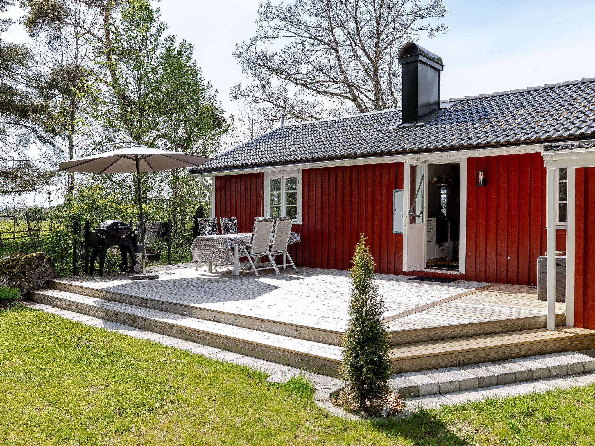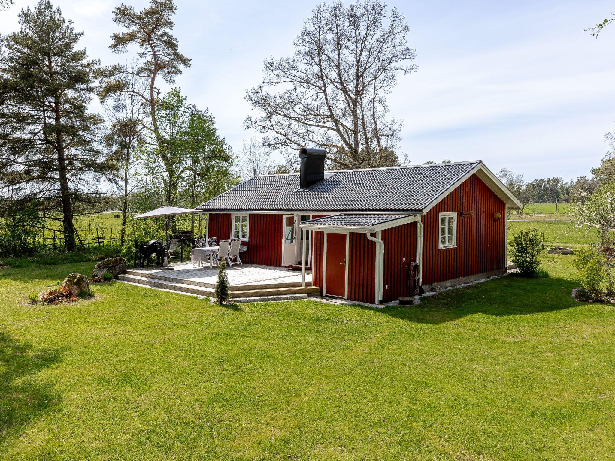 "Klägghult", 4-Zimmer-Haus 66 m2. 1 Zimmer mit 1 Doppelbett. 1 Zimmer mit 1 Bett. 1 Zimmer mit 1 Bett. Wohnzimmer mit TV. Offene Küche (4 Kochplatten, Toaster, Wasserkocher, Mikrowelle, Tiefkühler, elektrische Kaffeemaschine). Ausgang zum Garten. Dusche/WC. Heizung. Holzdielenboden. Terrassenmöbel, Gartengrill (mobil). Zur Verfügung: Internet (WLAN). Bitte beachten: Nichtraucher-Haus.