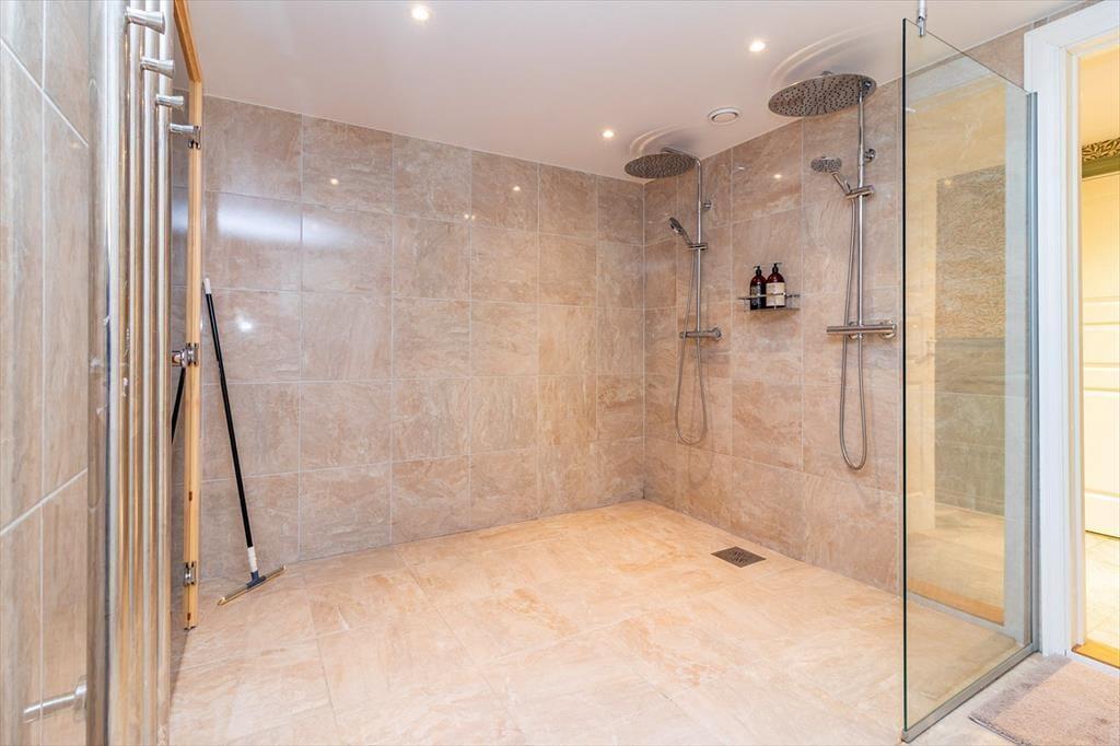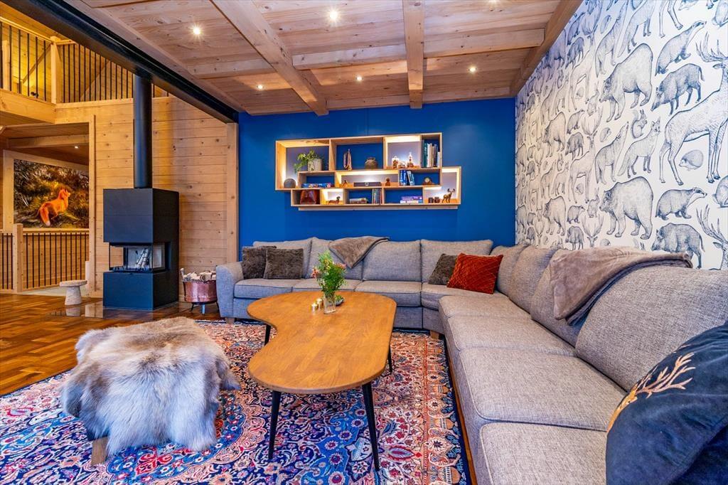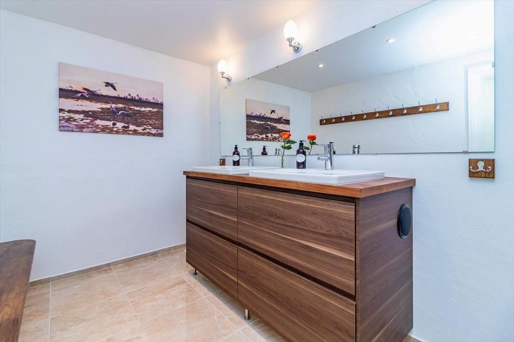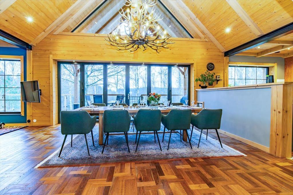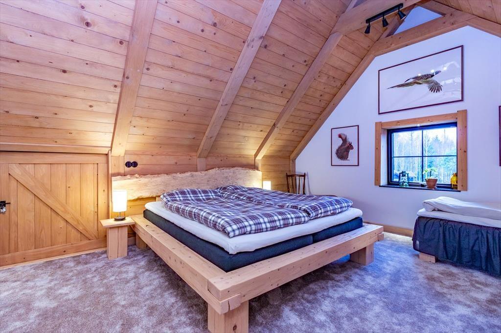 Das Ferienhaus hat eine Wohnfläche von ca. 320 m2 und lässt keine Wünsche offen. Direkt nach dem Betreten des Hauses befindet man sich in einem großen und offenen Flur. Zur linken Seite liegt der Hobby- und Arbeitsraum, zur rechten Seite liegt das erste Badezimmer mit Dusche und WC. Nach vorne aus dem Flur heraus geht es in den großen und hellen Wohn-, Ess- und Küchenbereich. Die große Küche mit Insel ist hervorragend ausgestattet. Der große Esstisch im Essbereich bietet Platz für bis zu 10 Personen. Im Wohnbereich steht ein großes Ecksofa. Dazu gibt es einen TV und einem Kamin. Die große Glasfront mit Schiebetüren führt auf die Terrasse. Seitlich den Essbereiches führt eine Treppe in das Schlafloft mit einem Doppelbett und zwei Einzelbetten. Über den Flur geht es in die untere Etage. Dort befinden sich drei weitere Schlafzimmer mit Doppelbetten, ein Ankleidezimmer und einen Hauswirtschaftsraum mit Waschmaschine und Wäschetrockner. Jedes Schlafzimmer hat ein eigenes Badezimmer mit Dusche und WC. Das Hauptschlafzimmer verfügt zudem über eine Sauna und eine große Doppeldusche.