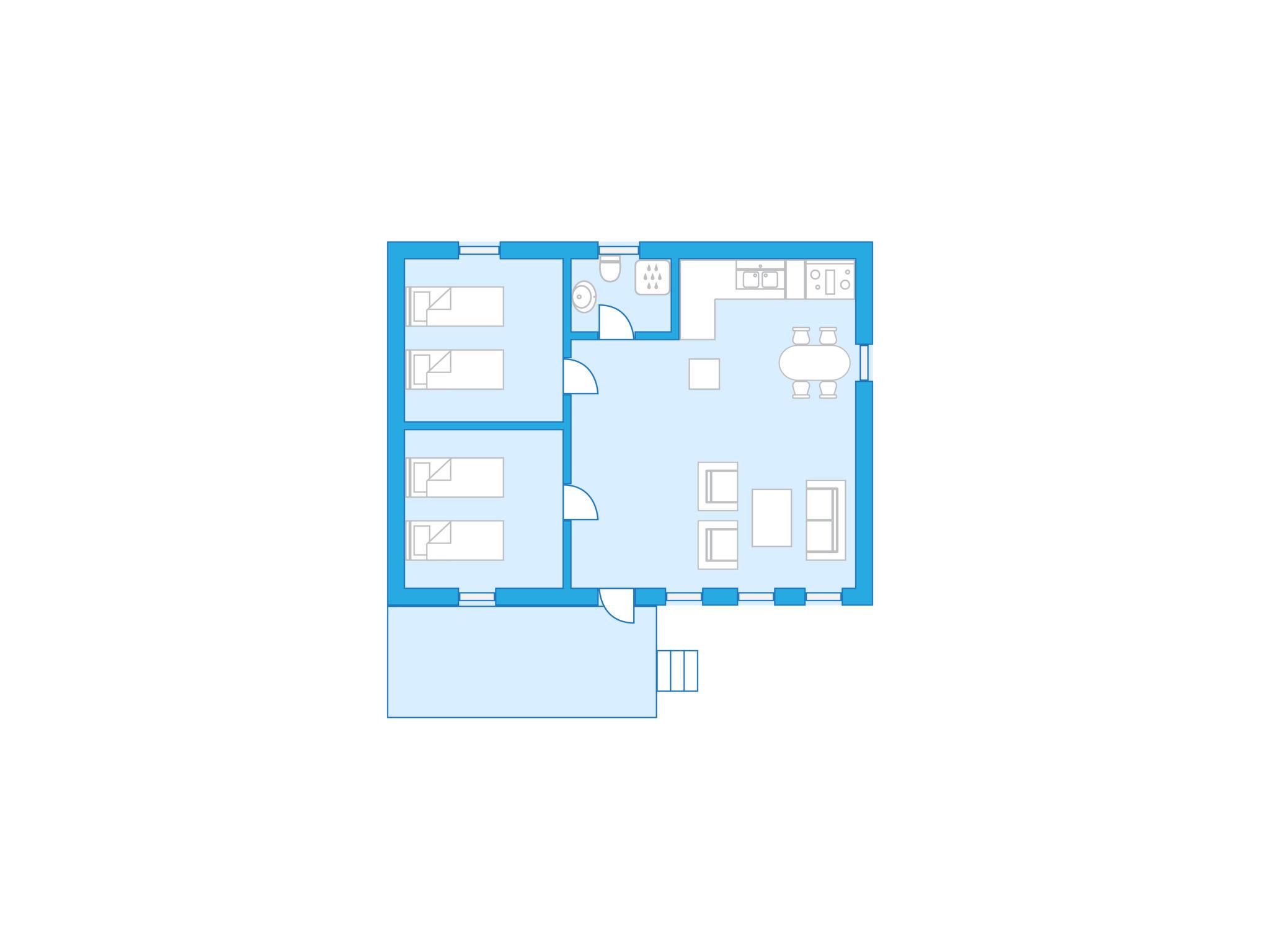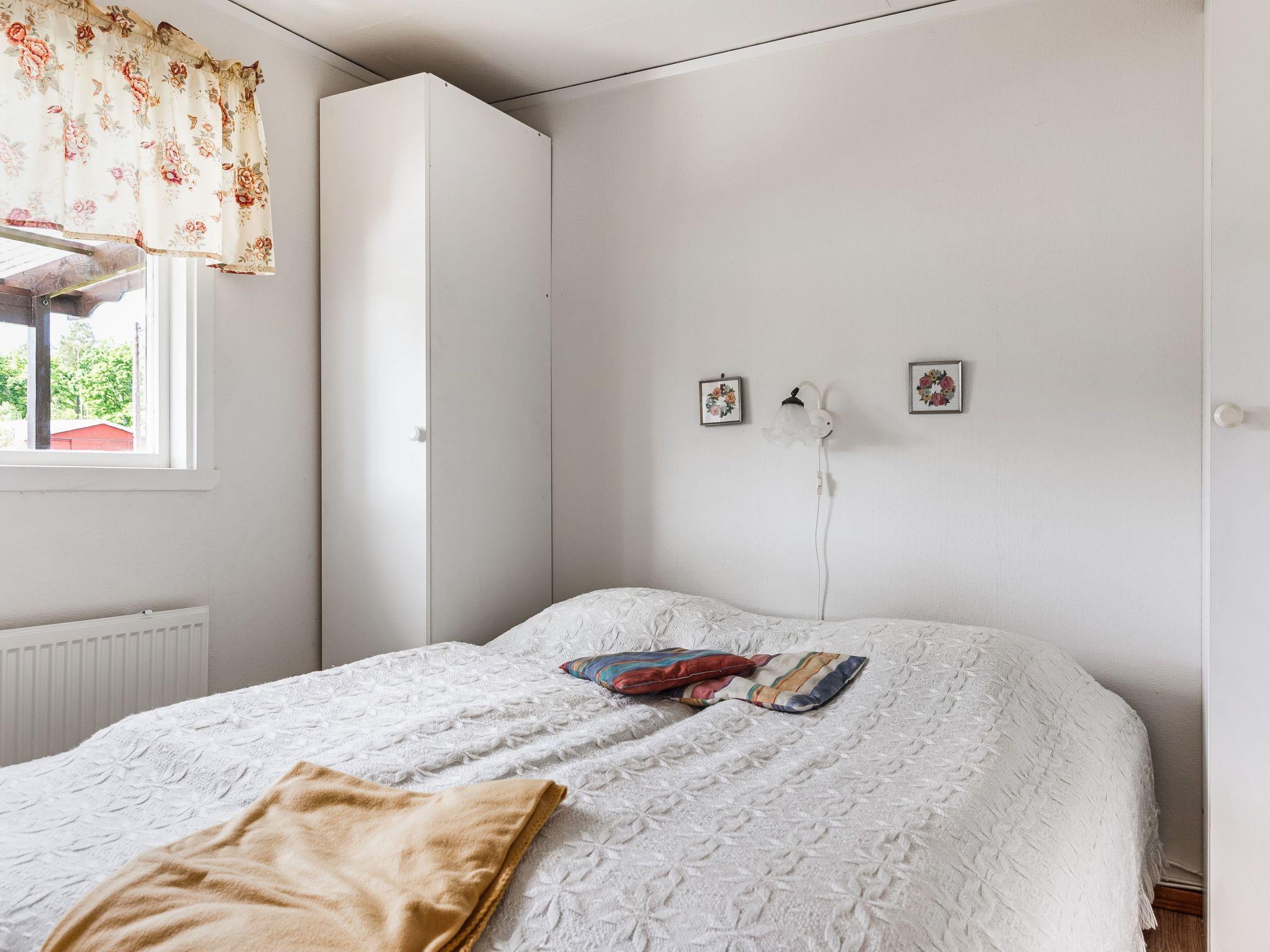 "Matvikshamn", 3-Zimmer-Haus 48 m2. Schön und gemütlich eingerichtet: Wohn-/Esszimmer mit offenem Kamin, Esstisch, Sat-TV und CD. Ausgang zur Veranda. 2 Zimmer, jedes Zimmer mit 2 Betten (80 cm, Länge 200 cm). Offene Küche (4 Kochplatten, Backofen, Toaster, Wasserkocher, Mikrowelle, Tiefkühler, elektrische Kaffeemaschine). Dusche/WC. E-Heizung. Holzdielenboden. Terrasse überdacht. Terrassenmöbel, Gartengrill (mobil), Sitzplatz. Bitte beachten: Nichtraucher-Unterkunft. Rauchmelder, Feuerlöscher. Gefrierschrank ca. 120 l. SE04861