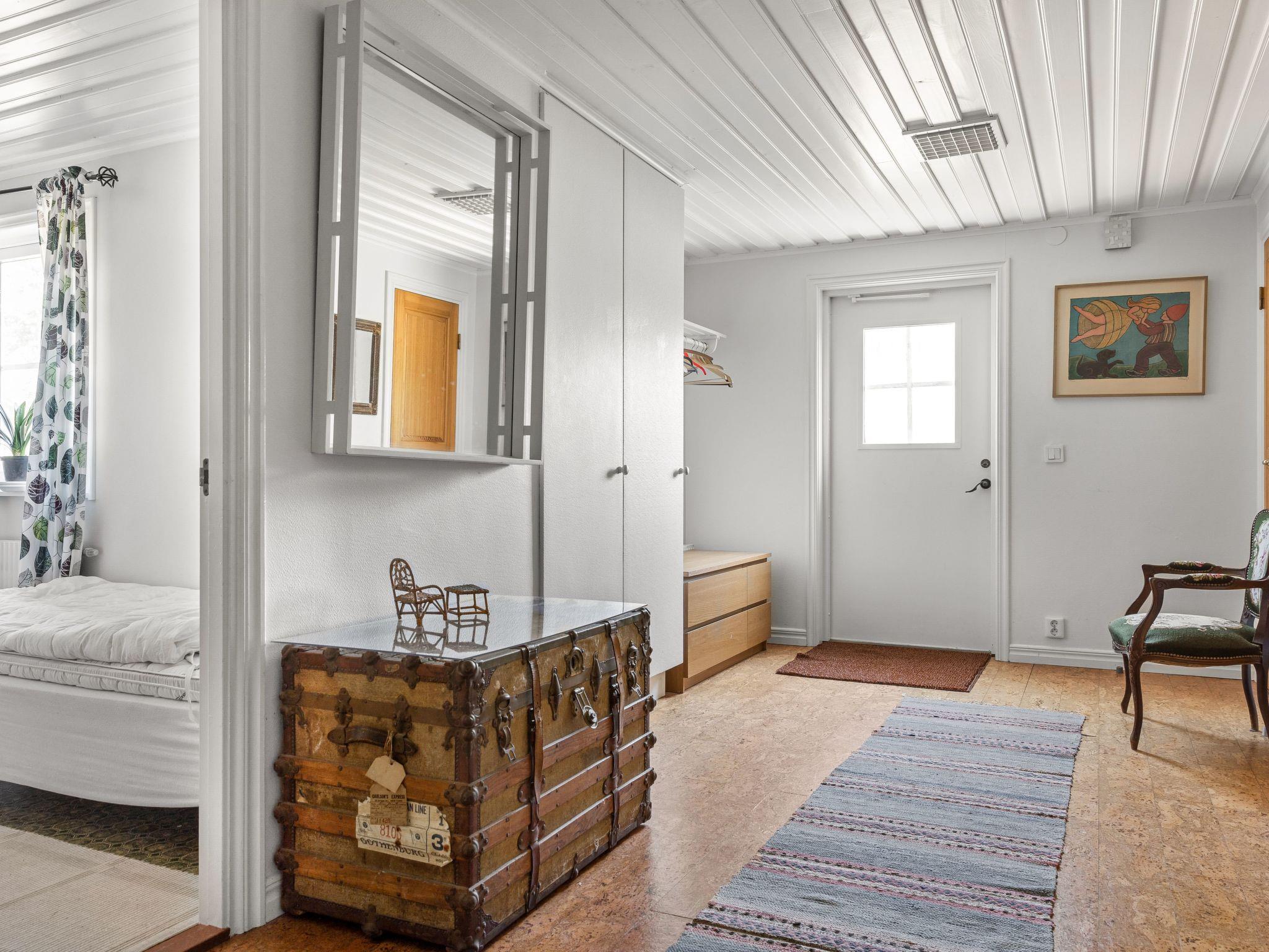 Trensum 4 km von Hällaryd: Schönes Einfamilienhaus "Matvik". 4 km vom Zentrum von Hällaryd, 10 km vom Zentrum von Karlshamn, am Hang, 600 m vom Meer, in einer Sackgasse, im Grünen. Zur Mitbenutzung: naturbelassenes Grundstück 2'000 m2, Garten (nicht eingezäunt). Badesteg. Zur Alleinbenutzung: Grundstück 1'000 m2 mit Bäumen, Wiese. Zur Verfügung: Kanu (extra). Ruderboot mit Motor (auf Bestellung), Parkplatz (für 2 Autos) auf dem Grundstück. E-Ladestation. Einkaufsgeschäft 4 km, Supermarkt 10 km, Bushaltestelle 3 km, Bahnstation "Karlshamn" 10 km, Fähre "Helsingborg" 185 km, Sandstrand 1.2 km, Hallenbad 10 km. Jacht-Hafen 600 m, Golfplatz (27 Loch) 18 km, Angelmöglichkeit 600 m.