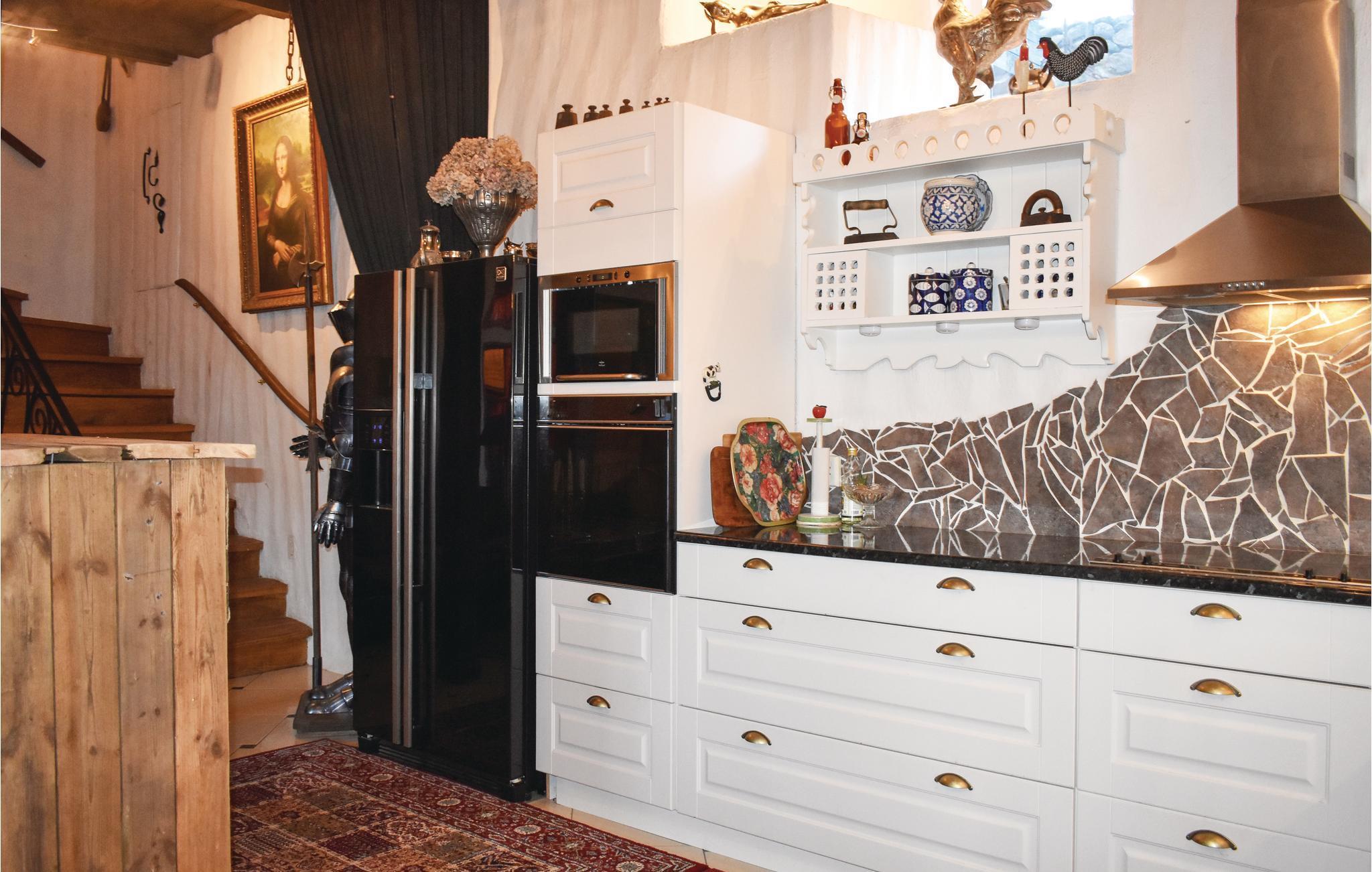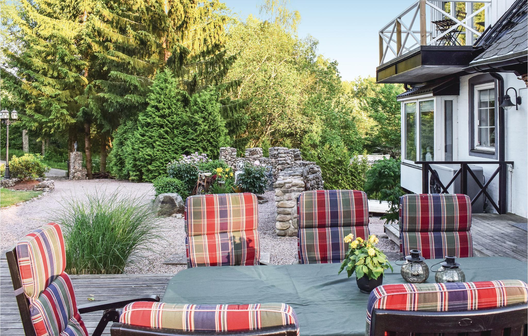 Auf der Terrasse können Sie grillen und sich sonnen. Das Haus verfügt über zwei voll ausgestattete Küchen, eine Sauna und ein geräumiges Wohnzimmer.