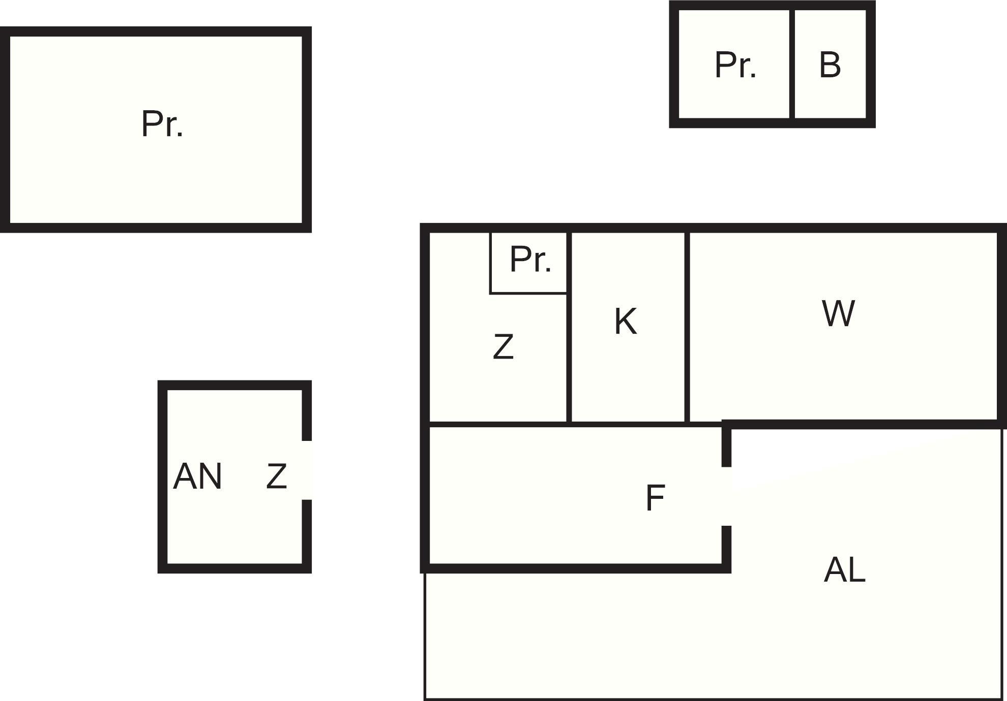 Das Ferienhäuschen liegt in einem Ferienhausgebiet mit Sommer- und Ganzjahreshäusern. Üppiger Garten mit vier Gebäuden. Das Haupthaus ist ca. 45 m2 groß und verfügt über einen Eingang kombiniert mit einem Essbereich, dazu ein Familienzimmer mit zwei Betten, kleinem Tisch und Spieltisch für Kinder. Es gibt auch eine 50er-Jahre-Küche mit Herd (zwei Herdplatten), kleinem Backofen und Kühlschrank mit Gefrierfach. Schlafzimmer mit einem Bett (120 cm breit) und einem Kleiderschrank, der jedoch privat vom Eigentümer genutzt wird. BITTE BEACHTEN: Nur Kaltwasser im Häuschen!