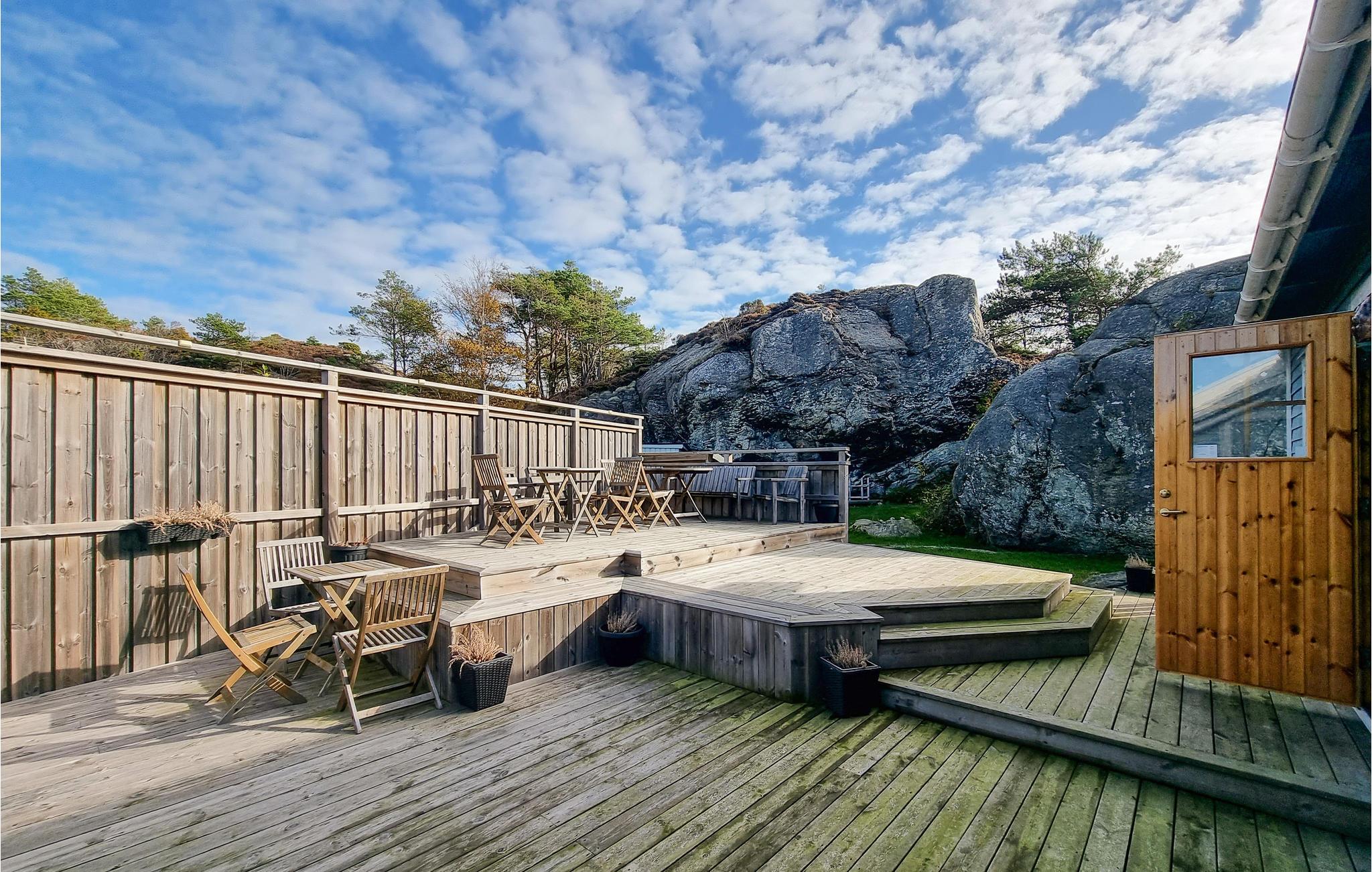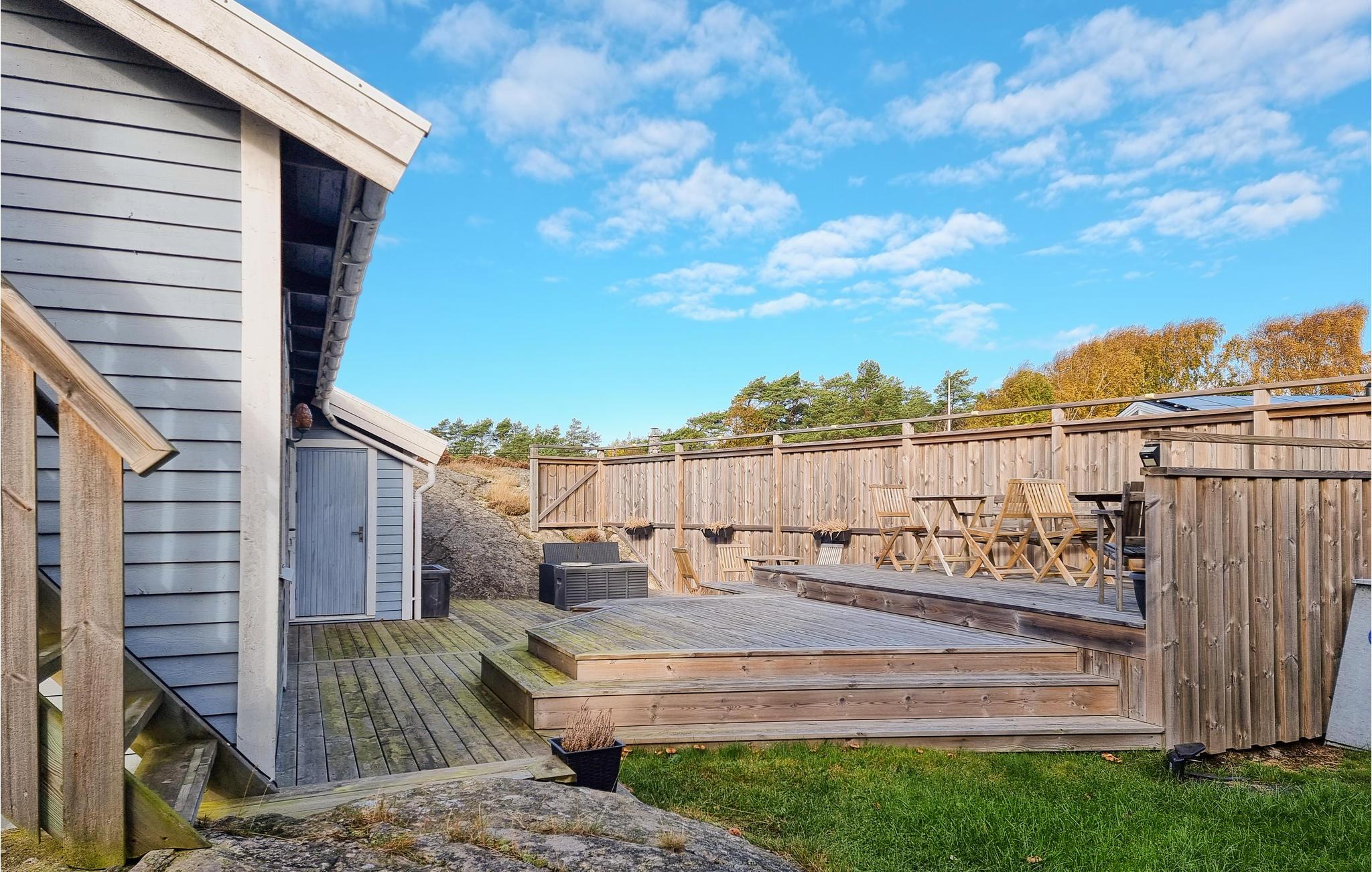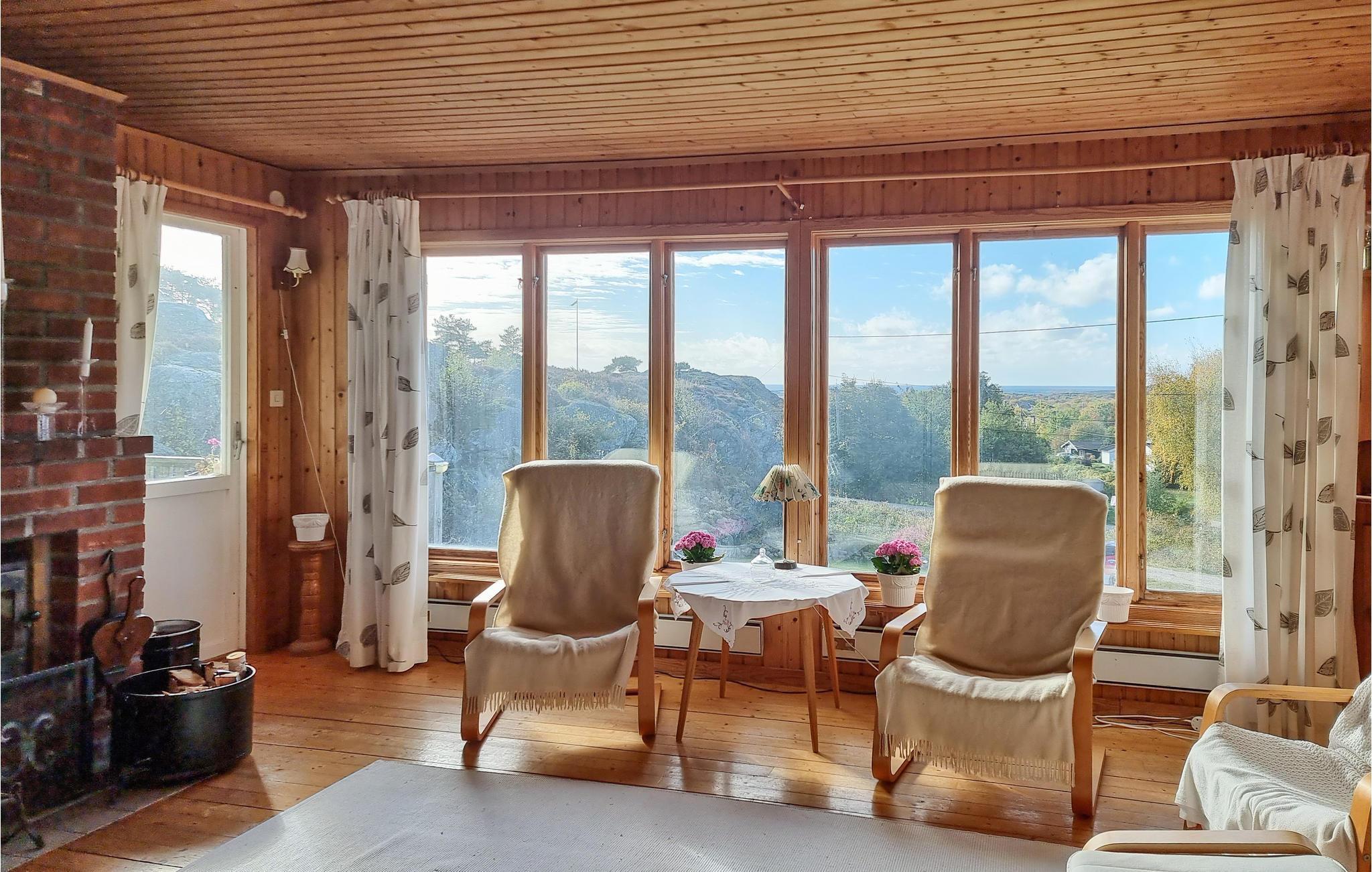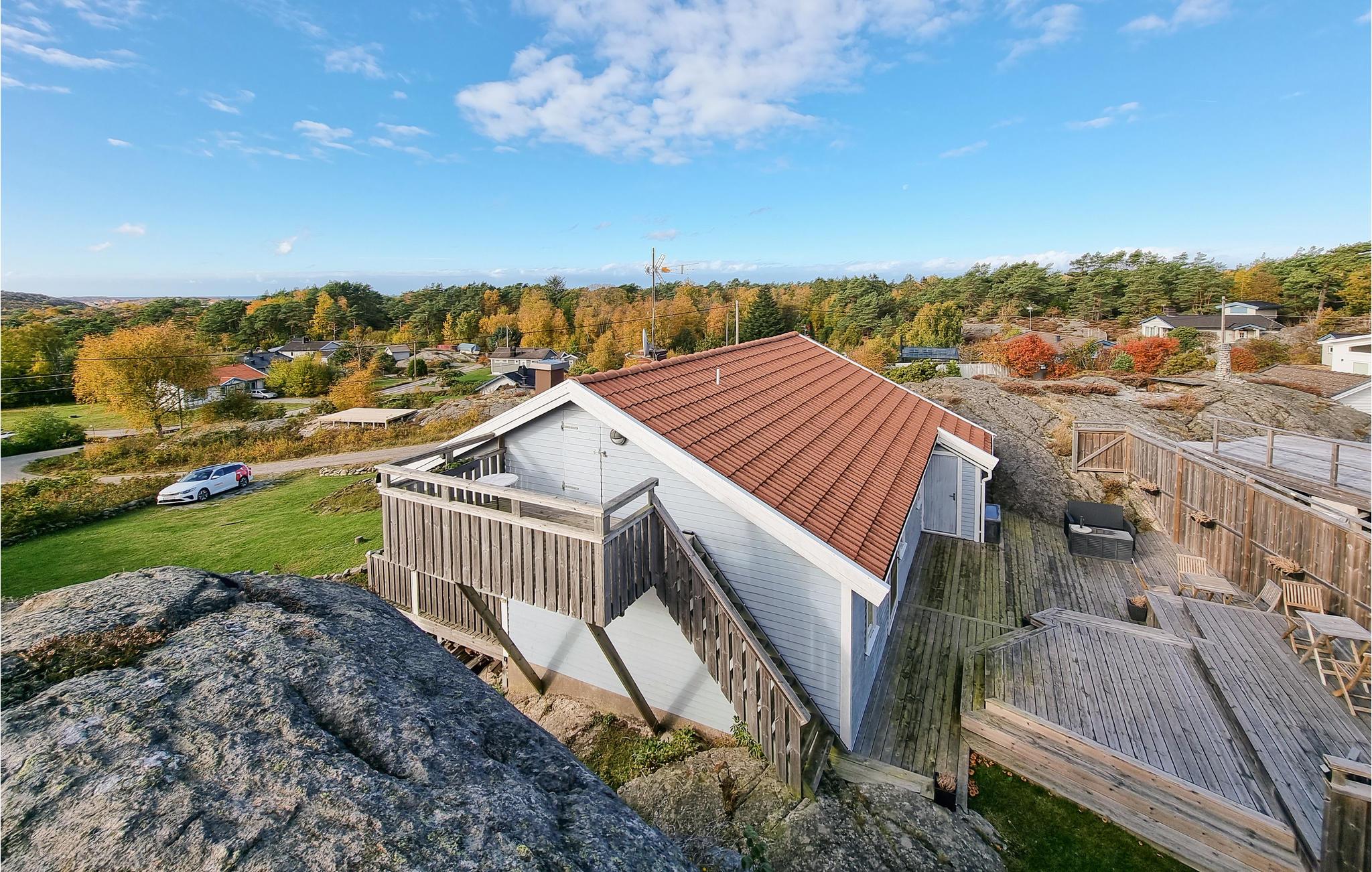 Auf der Insel Tjörn begrüßt Sie in fantastischer Lage auf einem großen, felsigen Naturgrundstück dieses gemütliche Ferienhaus. Profitieren Sie vom hellen Wohnzimmer mit seinen großen Fenstern und dem Heizofen für kühle Abende. Genießen Sie nach einem erlebnisreichen Tag den stimmungsvollen Blick auf die Landschaft von der Terrasse oder vom Wohnzimmer aus.