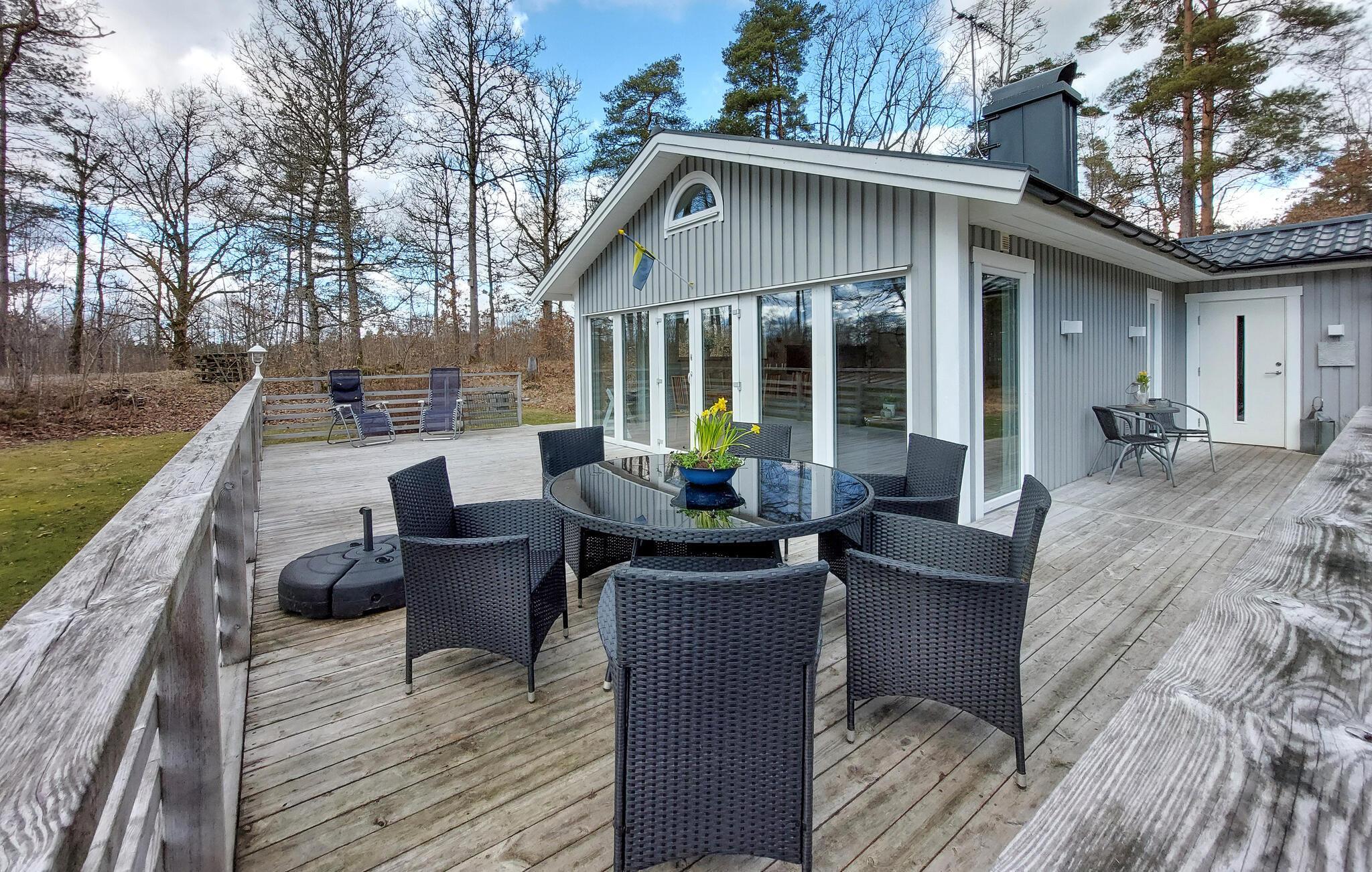 Zwischen den beiden malerischen Seen Yttern und Holmsjön lädt Sie dieses komfortable Feriendomizil in seine hellen und geschmackvoll eingerichteten Räumlichkeiten ein. Bereiten Sie in der modernen Küche angelfrischen Fisch zu und nehmen Sie im behaglichen Wohnbereich mit Blick ins Grüne Platz. Freuen Sie sich auf gemütliche Filmabende oder entspannte Lesestunden, während der Kaminofen für eine heimelige Atmosphäre sorgt.
