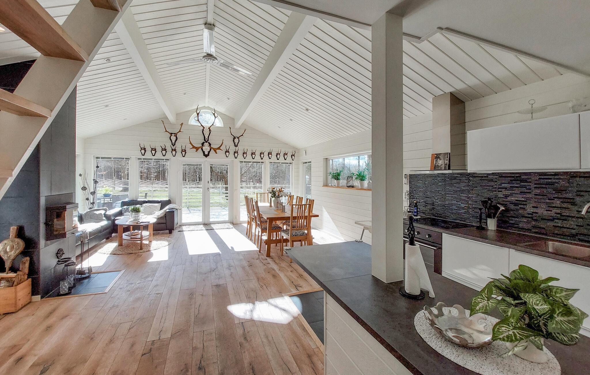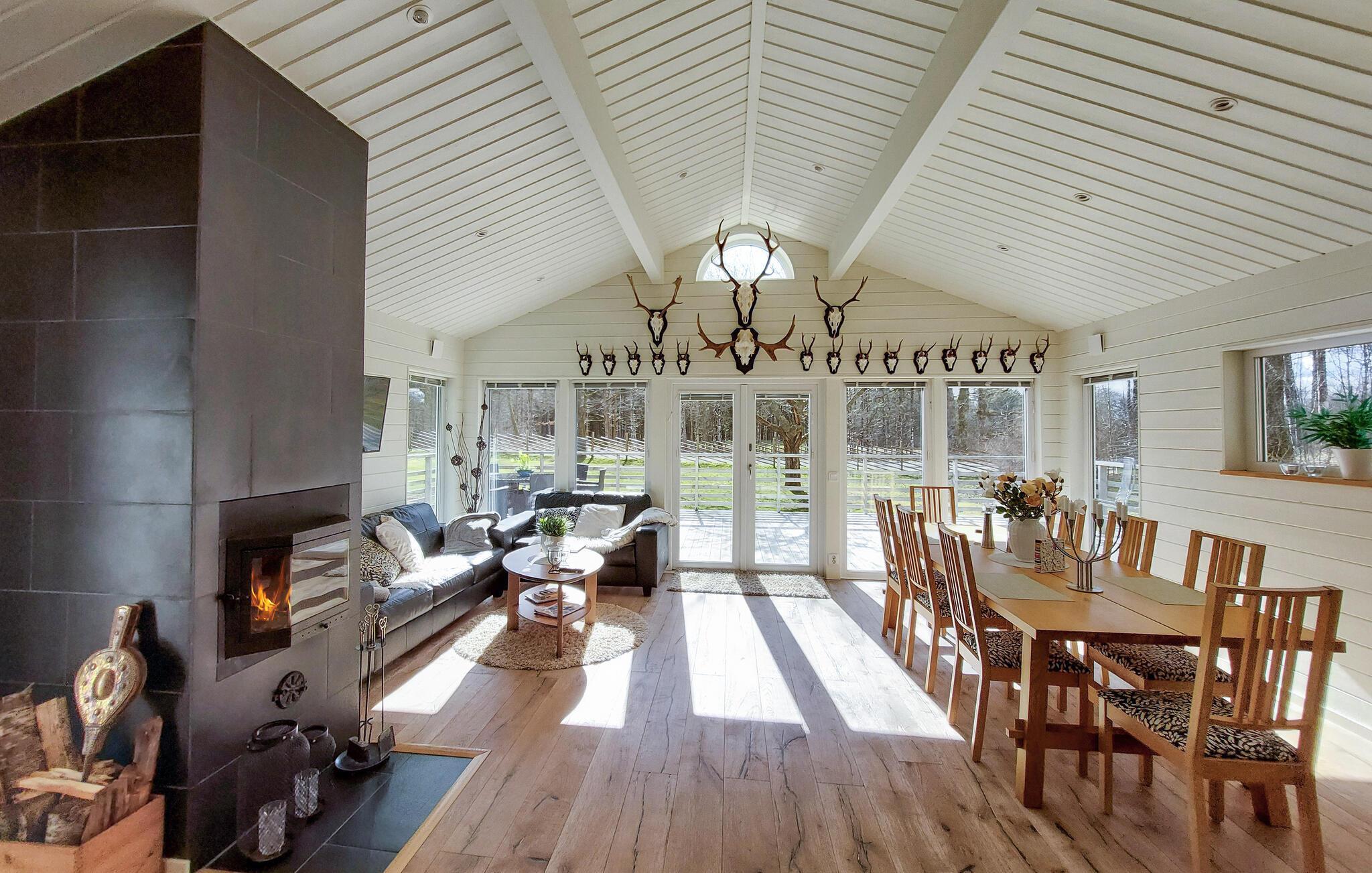 Servieren Sie sich an sonnigen Tagen Ihr Frühstück auf der Terrasse und beobachten Sie, wie Ihre Kinder mit dem Familienhund über das große Naturgrundstück toben. Gönnen Sie sich wohlige Momente im Whirlpool, nutzen Sie das hauseigene Boot für Angelausflüge und entfachen Sie abends den Grill.