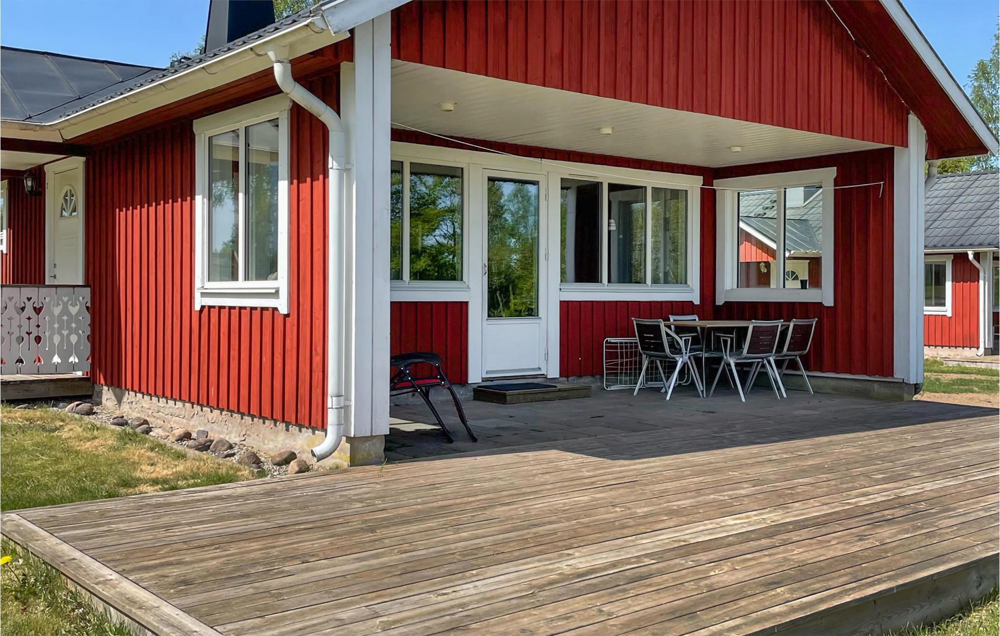 Ferienhaus mit Aussicht auf den See Flåren, gelegen zwischen Ljungbz und Värnamo. Große. Offene Wohnküche mit Kaminofen. 2 Schlafzimmer mit guten Betten. Überdachte Terrasse mit Aussicht auf den See. Im See können Sie u. a. auf Barsch und Hecht angeln. Die Badegelgenheit mit Schauklen und Rutsche und einfachen Sitzgelegenheiten am See. Eigener Schuppen am See. Kanu und Extraboote mit Motor sind zu mieten. Auf dem Grundstück sind Schukeln, Sandkaste und Rutsche vorhanden. Die Seen Flåren und Vidöstern benötigen einen Anglerlizenz. Zum Fluss Lagaån sind es ca. 3 km, in gleicher Entfernung liegt auch ein Put & Take-See. Der Laganland Elchpark liegt 8 km entfernt. In der Nähe gibt es einen 27-Loch Golfplatz und Fußballgolf.
