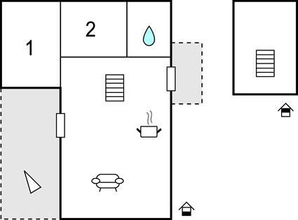 Badezimmer (nr. 1) - WC. Warmes und kaltes Wasser. Dusche