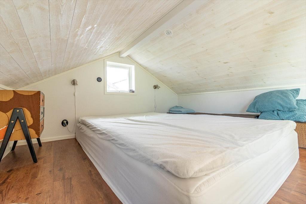 Das Haus bietet dir etwa 28 m² Wohnfläche plus einen 9 m² großen Schlafboden. Bis zu 4 Personen finden hier Platz. Im offenen Wohn- und Schlafbereich erwartet dich ein 32-Zoll-Smart-TV sowie ein Schlafsofa. Auf dem Schlafboden steht ein Doppelbett mit großer Matratze bereit. Die offene Küche ist mit allem ausgestattet, was du für die Selbstversorgung brauchst: Herd mit 2 Induktionsplatten, Kühl-/Gefrierkombination, Mikrowelle, Kaffeemaschine und alle notwendigen Küchenutensilien. Das Badezimmer verfügt über WC und Dusche. Eine Wärmepumpe sowie Elektroheizkörper sorgen für Wärme an kühleren Tagen.