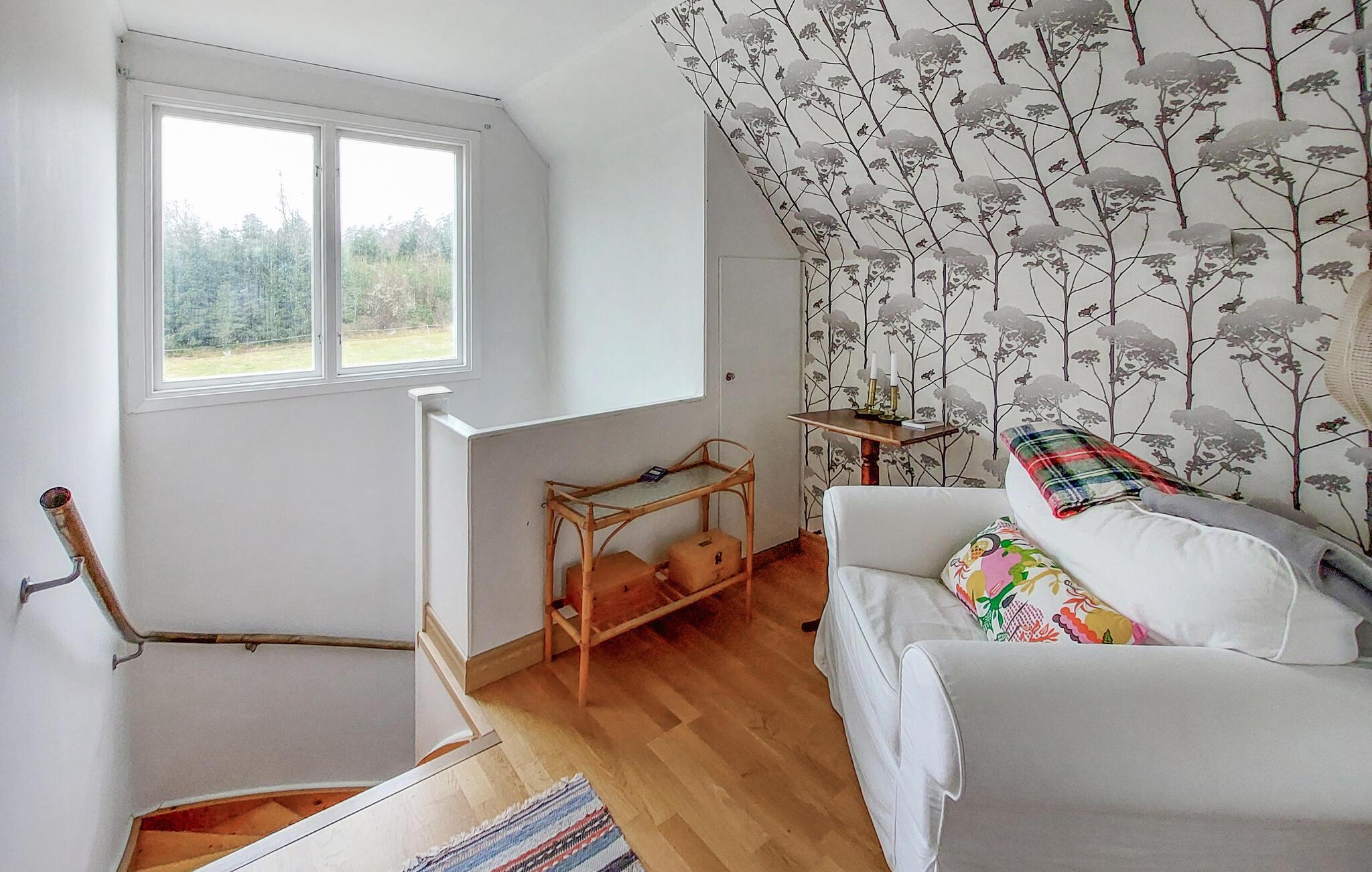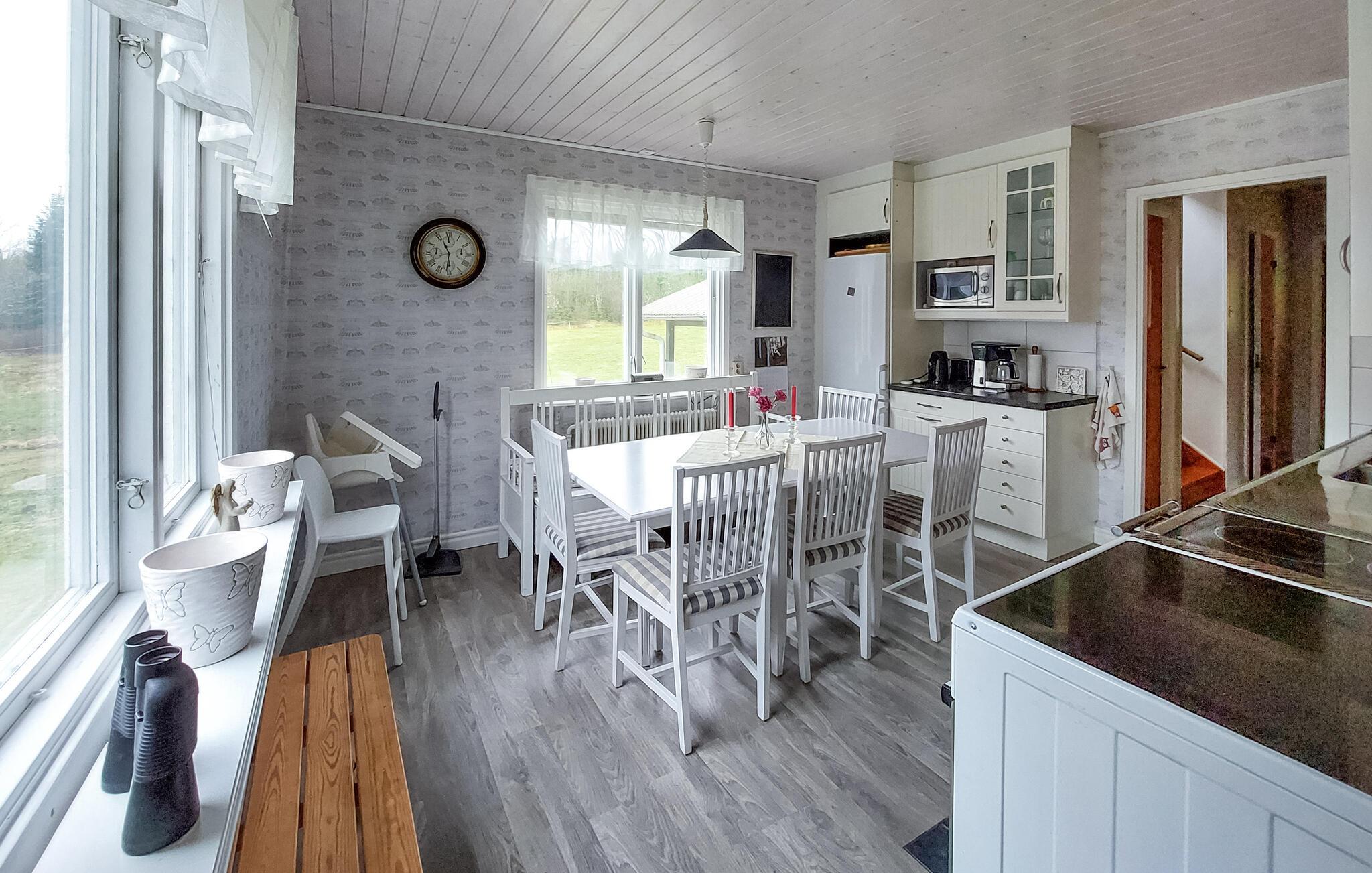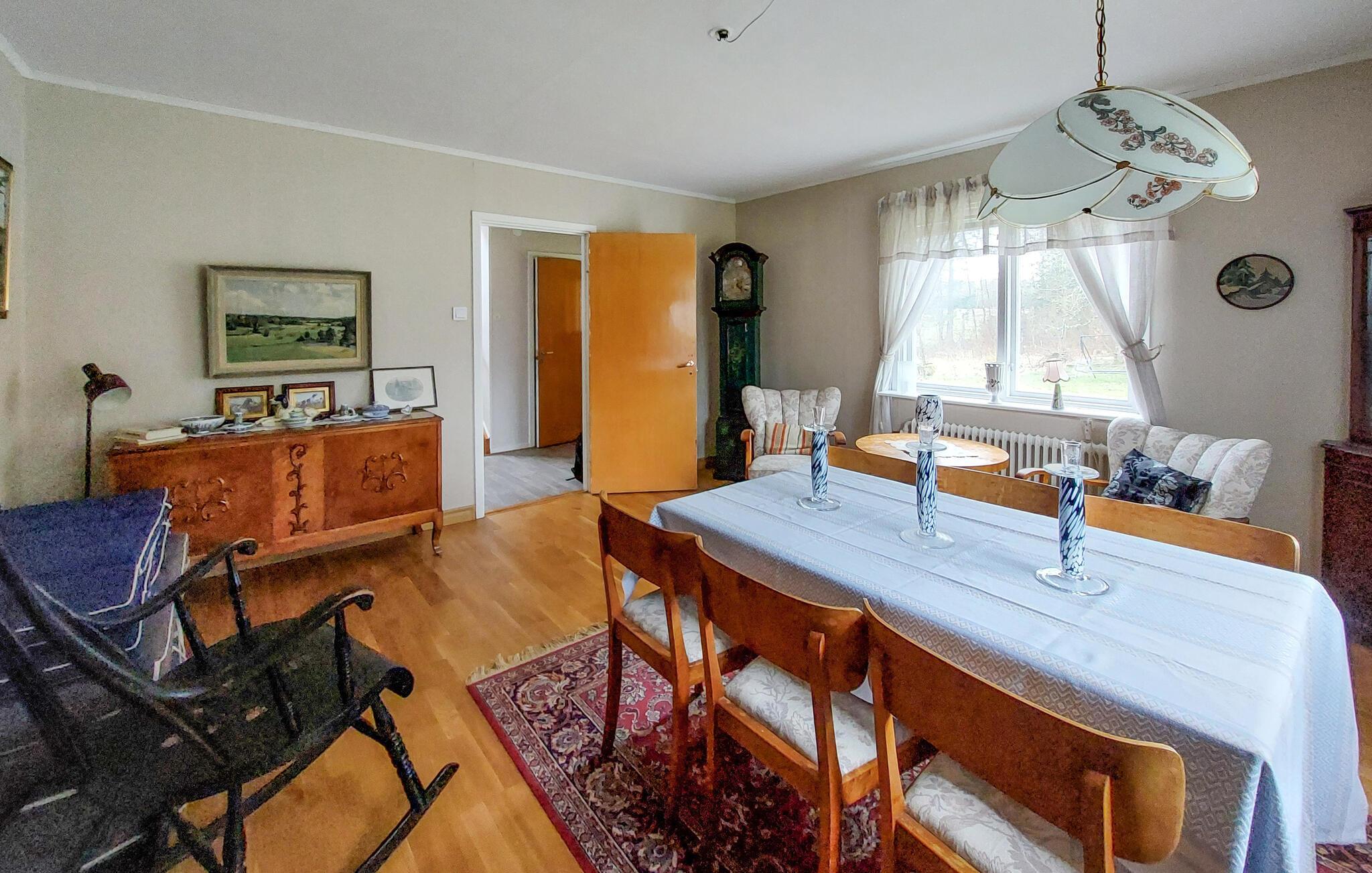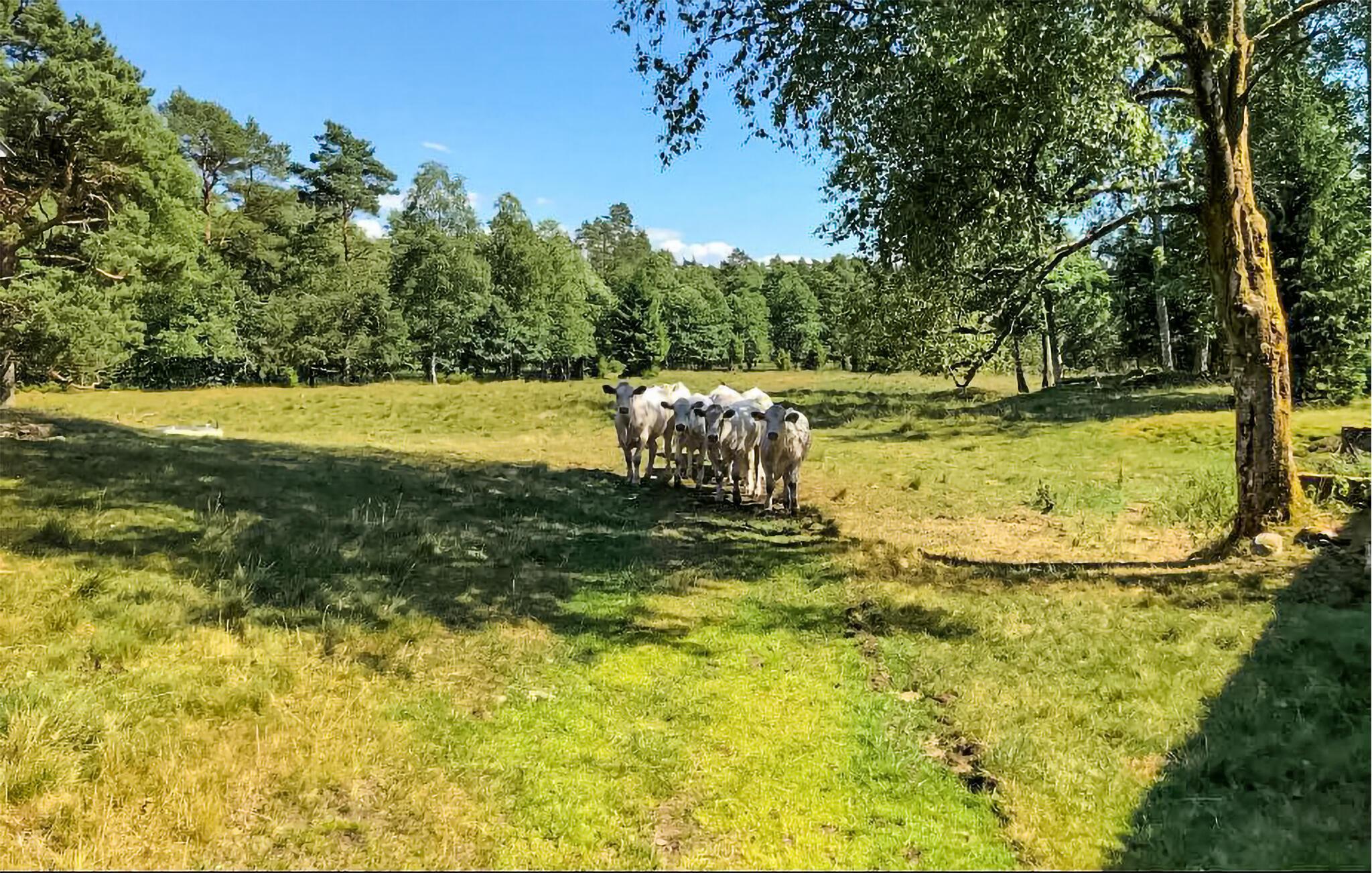 Willkommen in dieser malerischen Kulisse und in diesem Haus dicht am Wald. Hier haben Sie alle Voraussetzungen für einen Urlaub, in dem Sie sich entspannen und erholen können. Das zweistöckige Haus bietet zwar nicht alle modernen Annehmlichkeiten, dafür aber eine ausgezeichnete Lage. Brühen Sie abends Ihren abendlichen Kaffee und machen Sie es sich beim Kuchenschmausen und Kartenspielen im lauschigen, altmodischen Esszimmer mit Blick ins Grün gemütlich. Die lauen Abende können Sie auf der überdachten Terrasse mit Grill verbringen, von wo aus Sie im Sommer die friedlich grasenden Kühen auf der Weide betrachten können. Der Fluss Blankan fließt neben dem Grundstück und durch eine denkmalgeschützte Mühle aus dem 18. Jahrhundert. Eine wenig befahrene Landstraße macht es einfach, dorthin zu gelangen.
